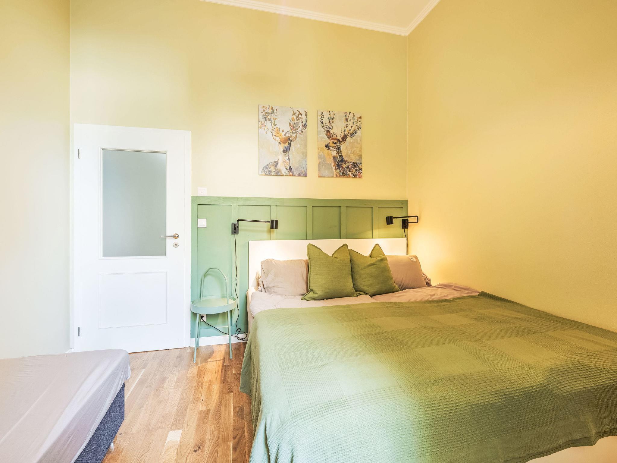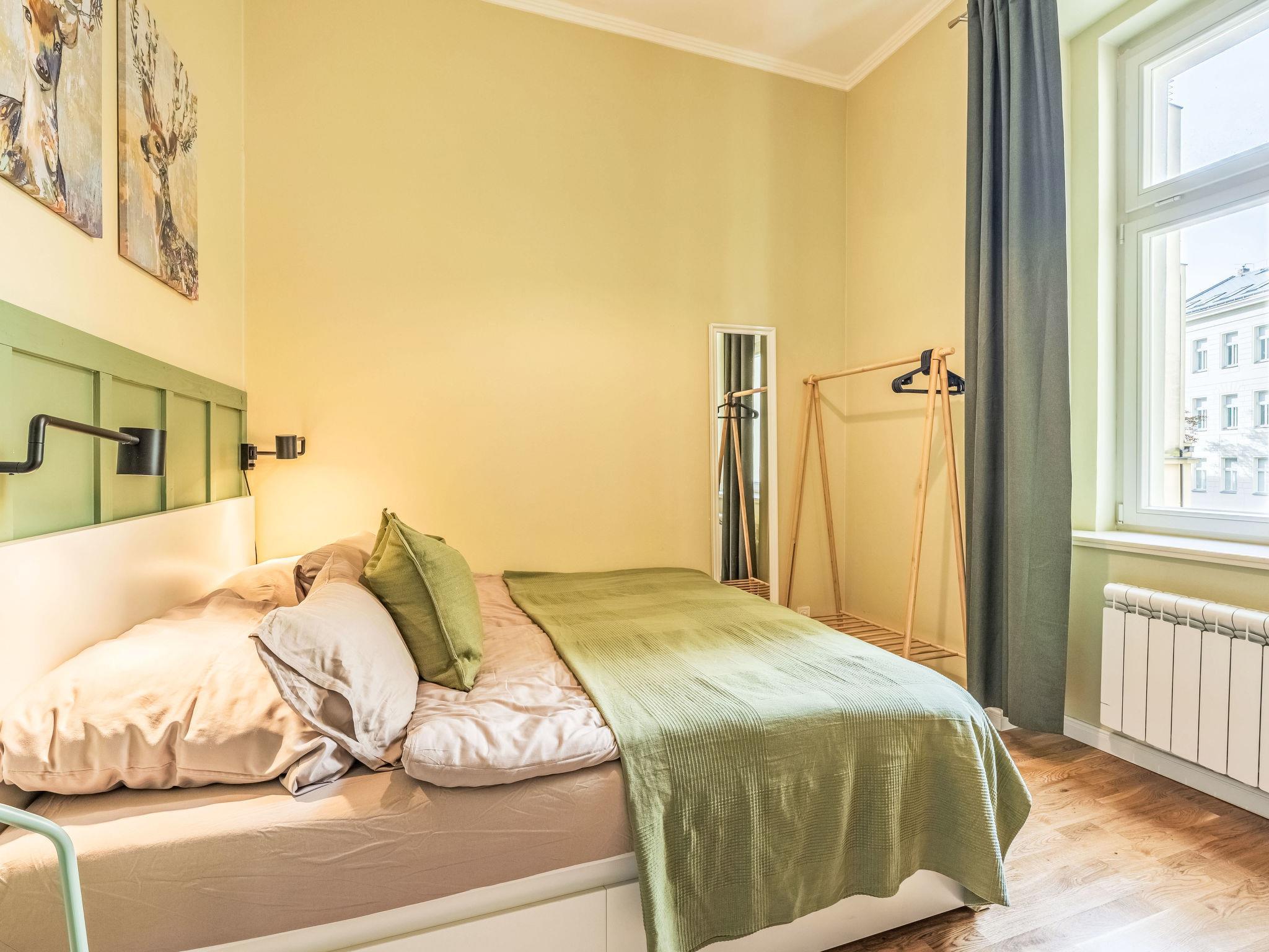 Very beautiful, historical residence "Washington", 6 storeys. In the centre of Praha, in a central, busy position, 1.8 km from the river. In the house: lift, central heating system. Linen change (suppl. charge extra). Towel change (suppl. charge extra). Room cleaning on request (extra). Public parking extra. Shop, grocery, supermarket, shopping centre, restaurant, bar, café 200 m, pedestrian zone 150 m, tram "Muzeum" 300 m, bus stop "Praha, ÚAN Florenc" 1.7 km, railway station "Praha, hlavní nádraží" 350 m, underground station "Muzeum" 150 m, park "Riegerovy sady" 700 m, indoor swimming pool 1 km. Tennis 2.4 km, indoor tennis centre 2.4 km, minigolf 1 km, sports centre 1.5 km, children's playground 600 m. Nearby attractions: Václavské námestí 120 m, Karluv most 2 km, Staromestské námestí, Orloj 1500 km, Pražský hrad, Petrínská rozhledna 3 km, Zoo 7 km, Vyšehrad 3 m, Karlštejn 30 km, Krivoklát 50 km. Well-known lakes can easily be reached: vodní nádrž Džbán 10 km, Hostivarská prehrada 13 km, Velká Amerika 33 km. Hiking paths: Stromovka 4 km, Prokopské údolí 9 km, Divoká Šárka 11 km.