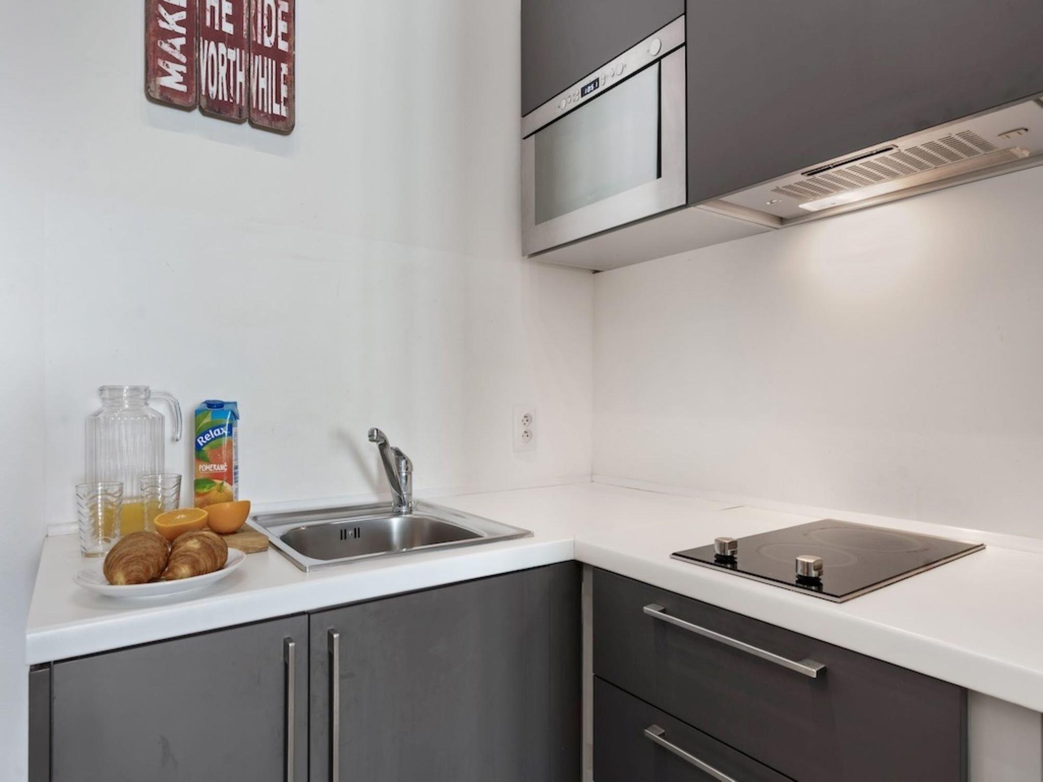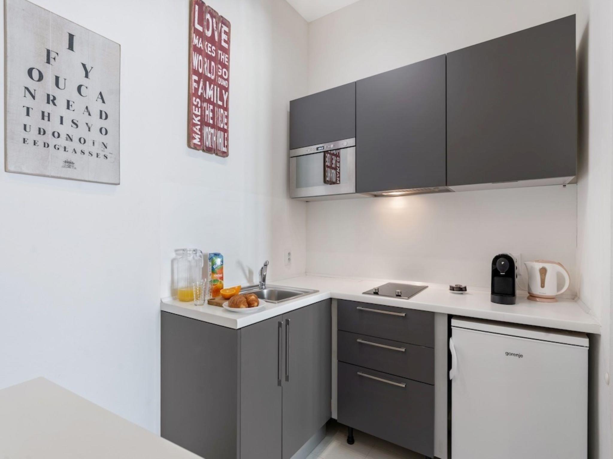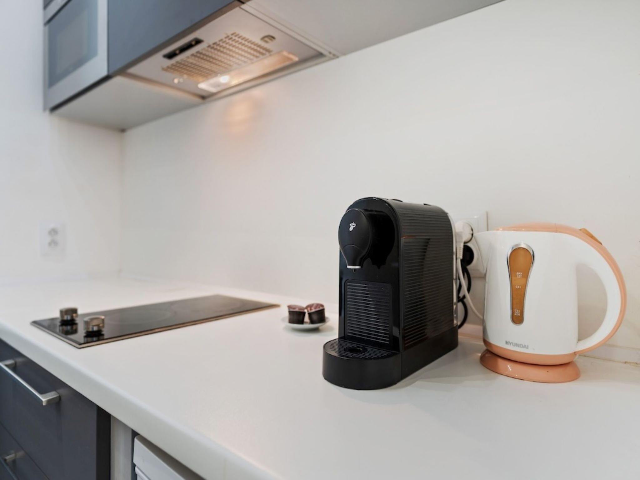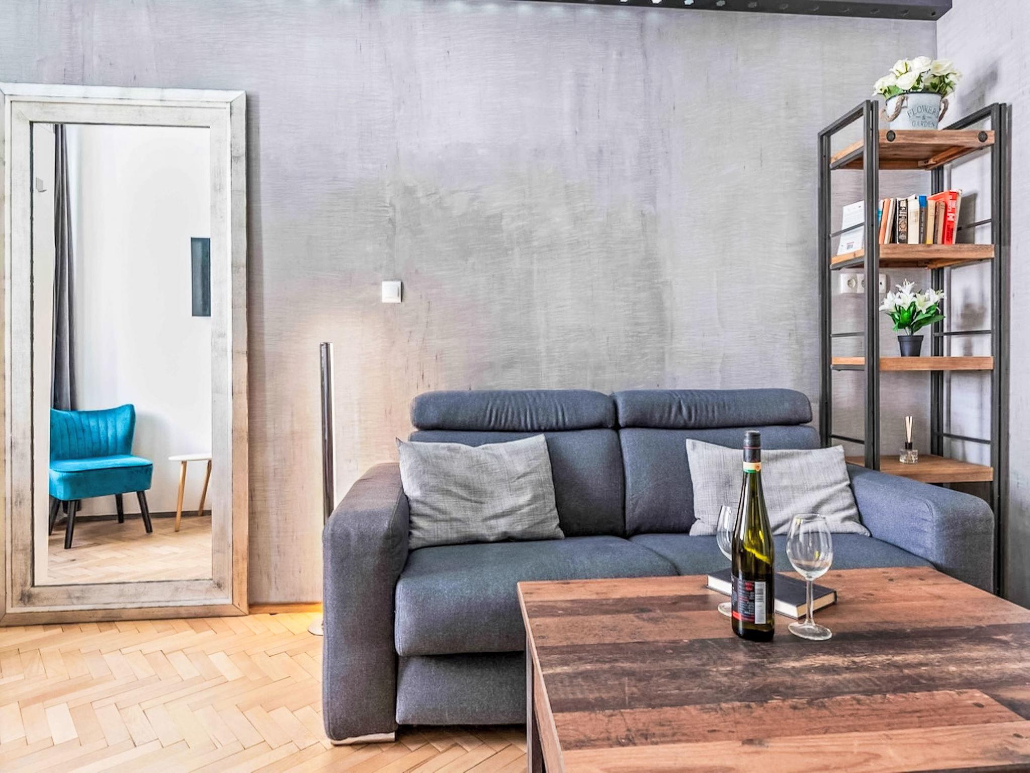 "Golden Stage Nook", 2-room apartment 35 m2 on 2nd floor. Very comfortable and beautiful furnishings: living room with TV. 1 open room with 1 double bed and TV. Kitchenette (2 ceramic glass hob hotplates, microwave, electric coffee machine) with dining table. Shower/WC. Heating, air-conditioning. Parquet floors. Facilities: Internet (WiFi, free). Please note: 1 small pet/ dog allowed. No lift.