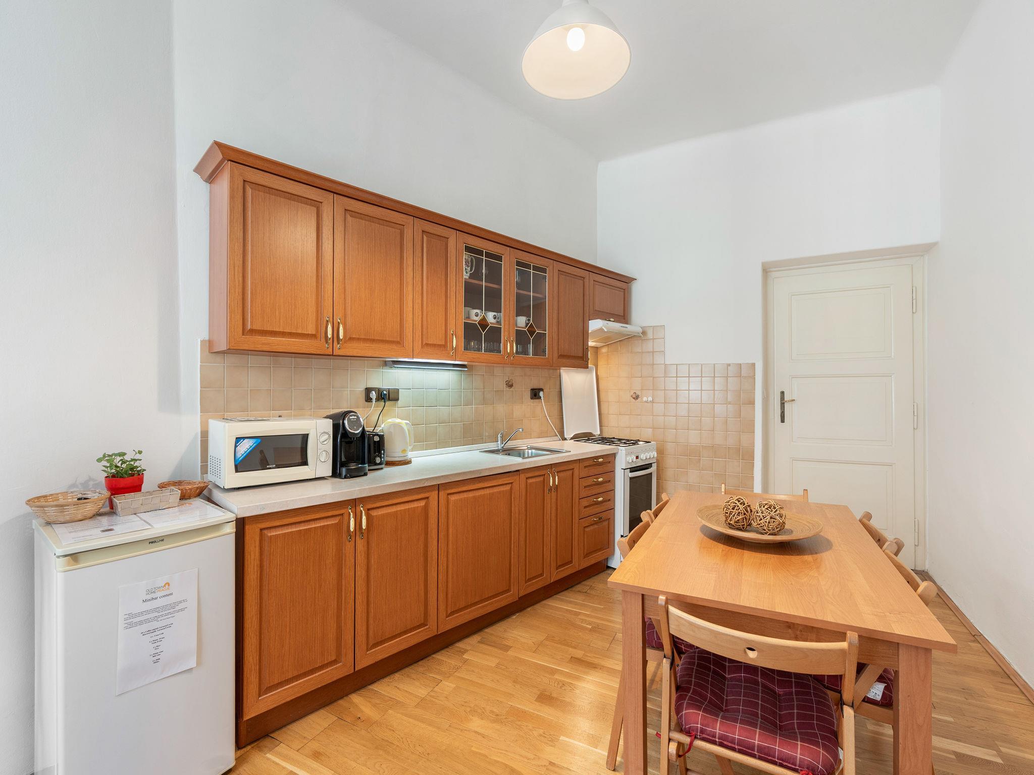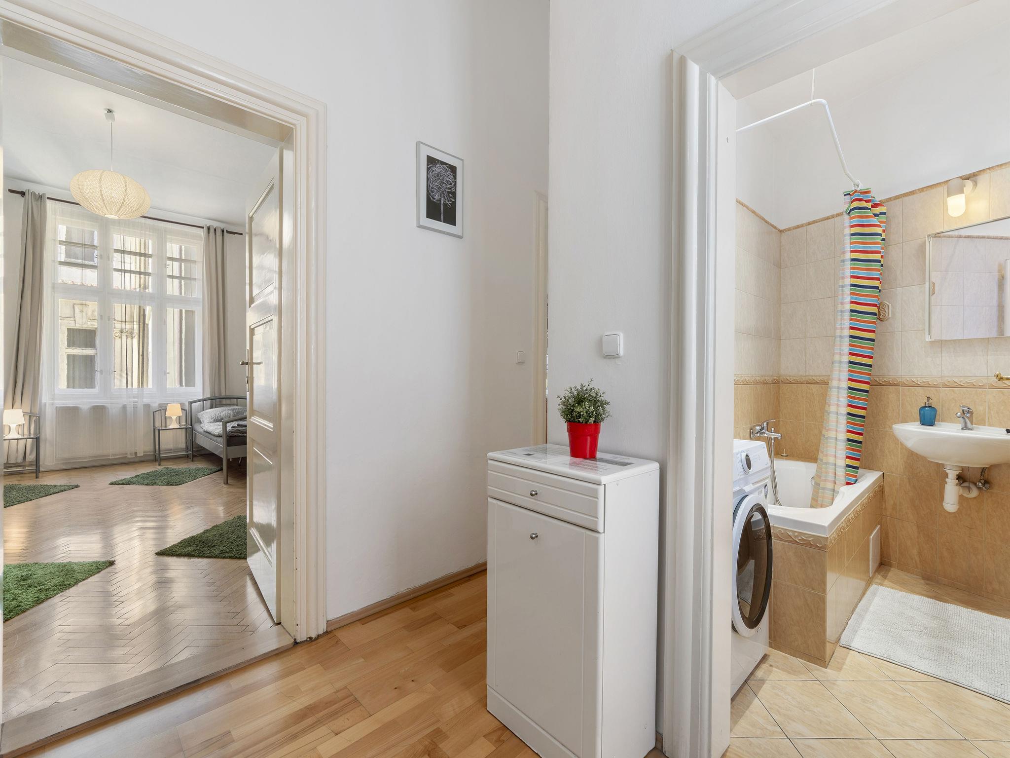Historical apartment block "Old Town home". In the centre of Praha, in a central position, in the heart of the city, 700 m from the river. In the house: reception, laundry. Airport transfer (extra). Public parking on the road extra. Shop 100 m, grocery 200 m, supermarket 400 m, shopping centre, restaurant 50 m, bar, bakery 150 m, café, pedestrian zone 10 m, pub garden 50 m, tram "Námestí Republiky" 500 m, bus stop "Praha, ÚAN Florenc" 1.5 km, railway station "Praha hlavní nádraží" 1.4 km, underground station "Námestí Republiky, Staromestská" 500 m. Nearby attractions: Staré Mesto/Old Town, Orloj/Astro. Clock 100 m, Karluv most/Charles Bridge 700 m, Pražský hrad/Prague Castle 1.5 km, Josefov/Jewish Town 500 m, Narodní divadlo/National Theatre 1.2 km, Václavské námestí/Wenceslas Square 600 m. Please note: no lift. Reception open 14:00-21:00 hrs. On request: airport transfer to the holiday accommodation. Please note: Loading and unloading of baggage is possible at the holiday house.
