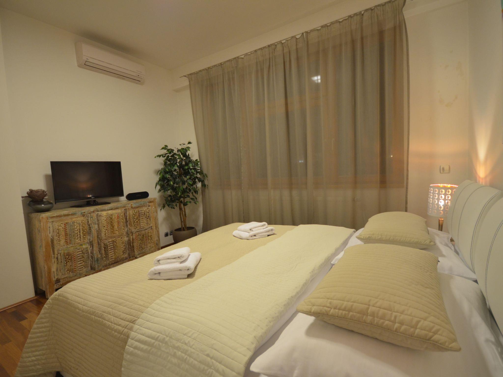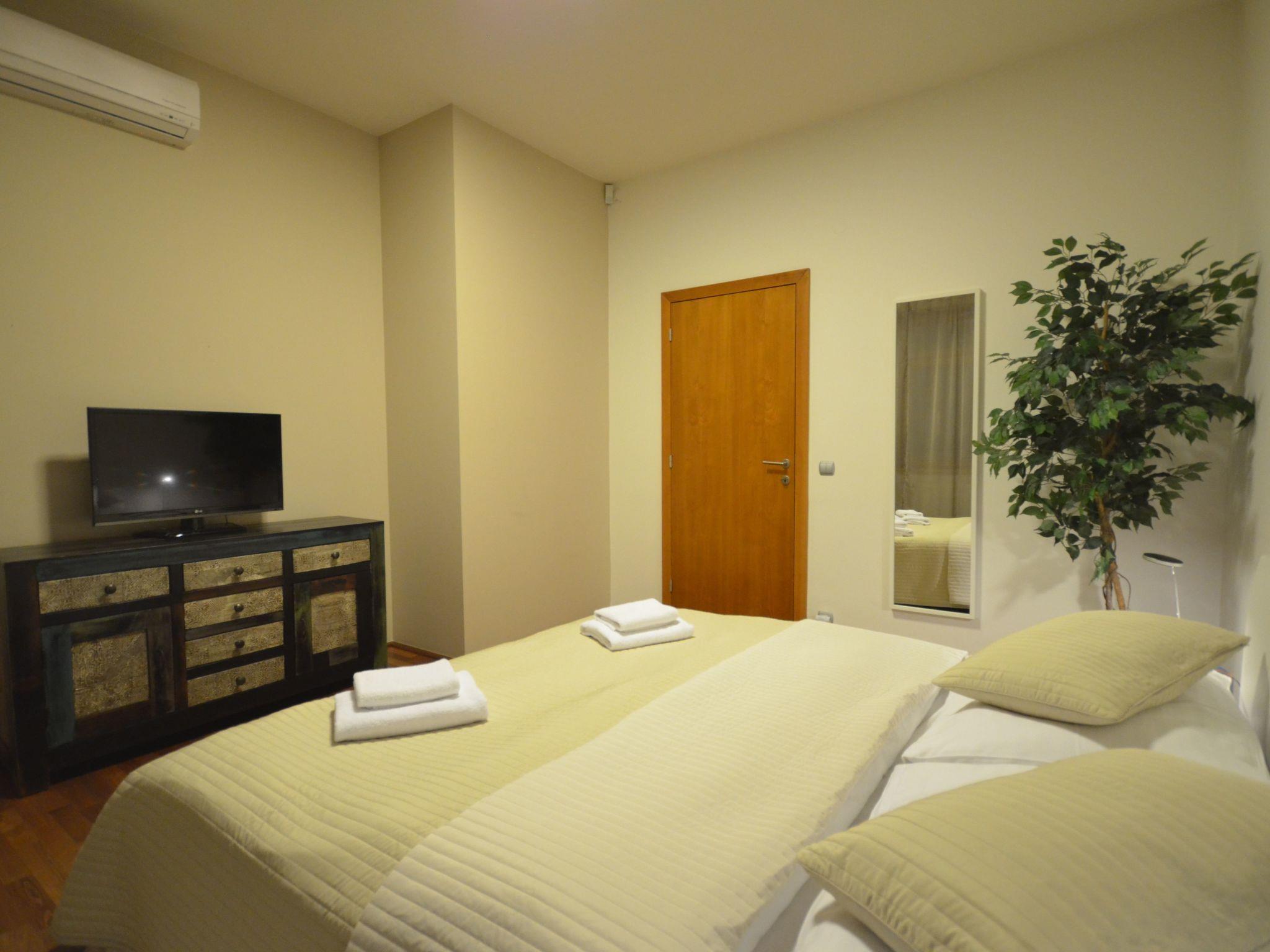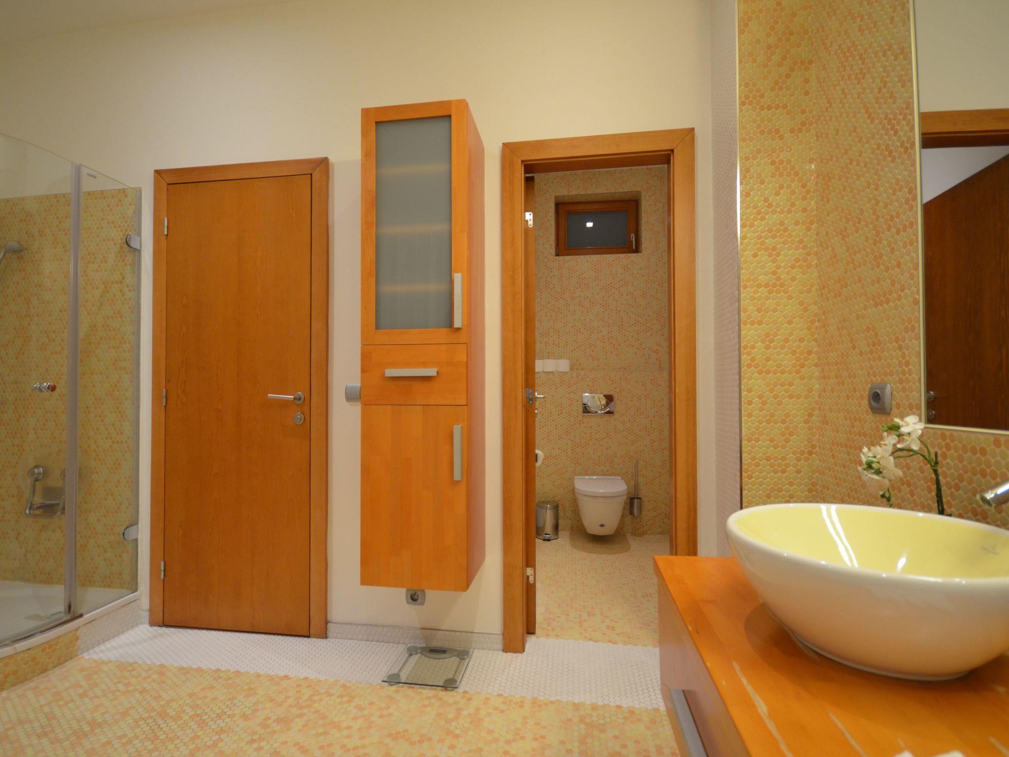 General amenities: fully air-conditioned, Wi-Fi, flat-screen TVs in every room, Bose sound bars, Blu-ray library, security door, Italian espresso machine, starter kit (including coffee, tea, sugar, salt, pepper, spices, olive oil, balsamic vinegar, dishwasher and washing tablets, shower gel + shampoo, cotton buds and cosmetic cotton pads), hairdryer, washing machine, tumble dryer, iron, ironing board. Description of the property: four bedrooms, large living room, dining area, study area, kitchen, two bathrooms, two guest toilets, two dressing rooms and laundry room. First bedroom with terrace: king-size bed (medical and hypoallergenic mattress), bedside tables, reading lamps, chest of drawers, flat-screen TV (LED - new-generation Smart TV), Bluetooth speaker to connect iPod, MP3 players, computers or other devices. Second bedroom with terrace: king-size bed (medical and anti-allergy mattress), bedside tables, reading lamps, chest of drawers, flat-screen TV (LED - new-generation Smart TV), Bluetooth speaker to connect iPods, MP3 players, computers or other devices. Third bedroom with terrace: king-size bed (medical and anti-allergy mattress), bedside tables, reading lamps, chest of drawers, flat-screen TV (LED - new-generation Smart TV), Bluetooth speaker to connect iPods, MP3 players, computers or other devices. Fourth bedroom: king-size bed (medical and anti-allergy mattress), bedside tables, reading lamps, chest of drawers, flat-screen TV (LED - new-generation Smart TV), Bluetooth speaker to connect iPods, MP3 players, computers or other devices. Living room (first part - TV area) with terrace: leather sofa, coffee table, home cinema, large flat-screen 3D TV (LED - new-generation Smart TV), DVD/Blue Ray. Living room (second part - lounge) with terrace: leather sofa, coffee table and wine bucket. Office area: desk, lamp and chair Dining area: dining table and chairs. Coffee Corner: automatic espresso machine, now you can satisfy your cravings for espresso, cappuccino, latte or macchiato at any time. Kitchen: fully equipped kitchen, fridge/freezer, cooker, oven, microwave, kettle, coffee maker, toaster, sandwich and waffle maker, dishwasher, cooking utensils, cutlery and crockery. First bathroom: bath, walk-in shower, washbasin, WC and digital bathroom scale. Second bathroom: bath, washbasin and digital scale. First guest WC: WC and washbasin. Second: Guest toilet: WC and washbasin. Laundry room: washing machine and tumble dryer, iron, ironing board.