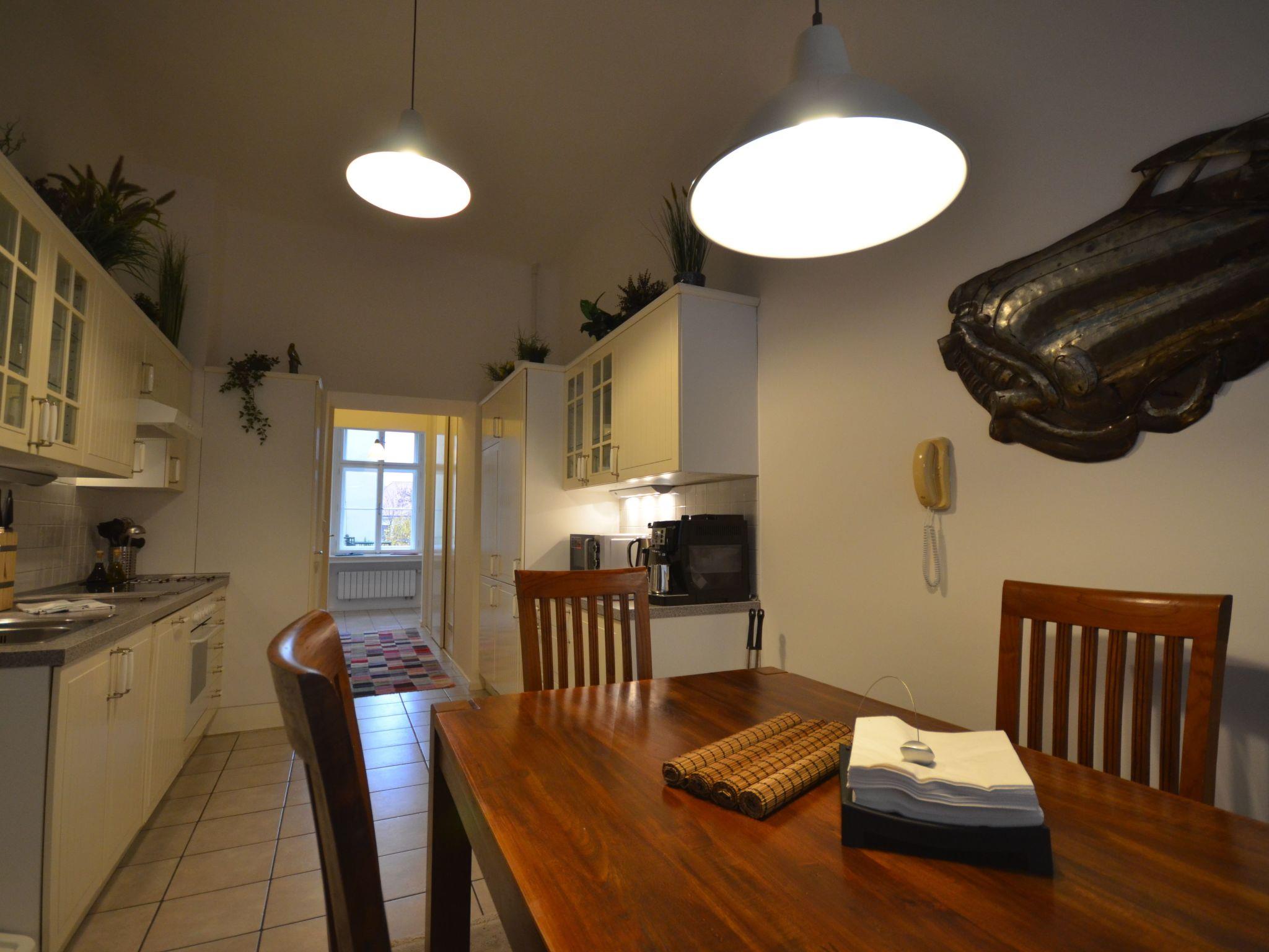 This spacious flat combines contemporary chic at its best with top-of-the-range furnishings. It features elegant decor, warm furnishings and all the modern amenities you need for a comfortable and welcoming stay in the heart of Prague. You can also enjoy breakfast at the charming bakery nearby. The city centre is within easy walking distance, but thanks to its central location, the area is very well served by public transport, allowing you to reach all parts of Prague quickly and easily. Apartment Collection Hastalska is located on the first floor of a building with lift. Flat description: one bedroom, living room, dining area, kitchen, bathroom with walk-in shower, toilet and washbasin. Sleeping accommodation: a king-size bed and a sofa bed (180 cm x 200 cm) in the living room. Highlights: portable air conditioning, free Wi-Fi, large Smart TV, Blu-ray library, Bluetooth speaker for iPod and MP3 players, Italian espresso machine, hairdryer, washing machine, tumble dryer and ironing facilities. Medical and hypoallergenic mattresses, double-sided oval make-up mirrors and in-room TV. Available: coffee beans and toppings, Pickwick teas (black, green and a wide selection of flavoured teas), sugar, salt, pepper, chilli, a selection of premium spices, olive oil, balsamic vinegar, shower gel, soap, washing machine and dishwasher capsules.