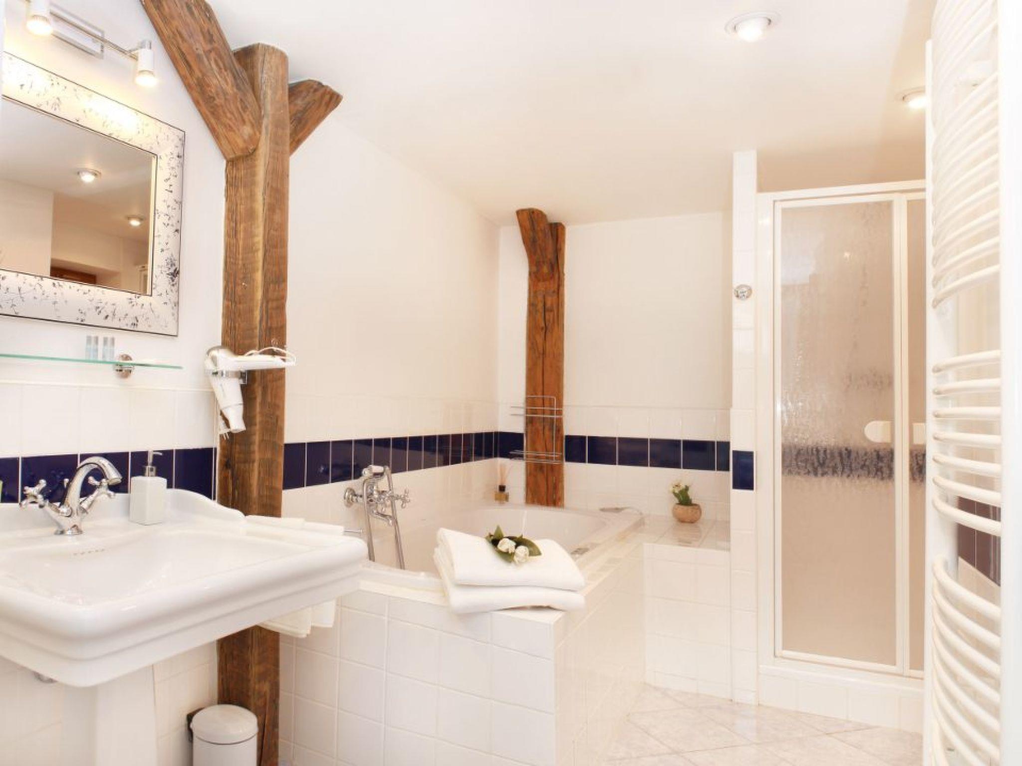 Private bathroom: with whirlpool bath, walk-in shower, washbasin, bidet, WC and digital bathroom scale.