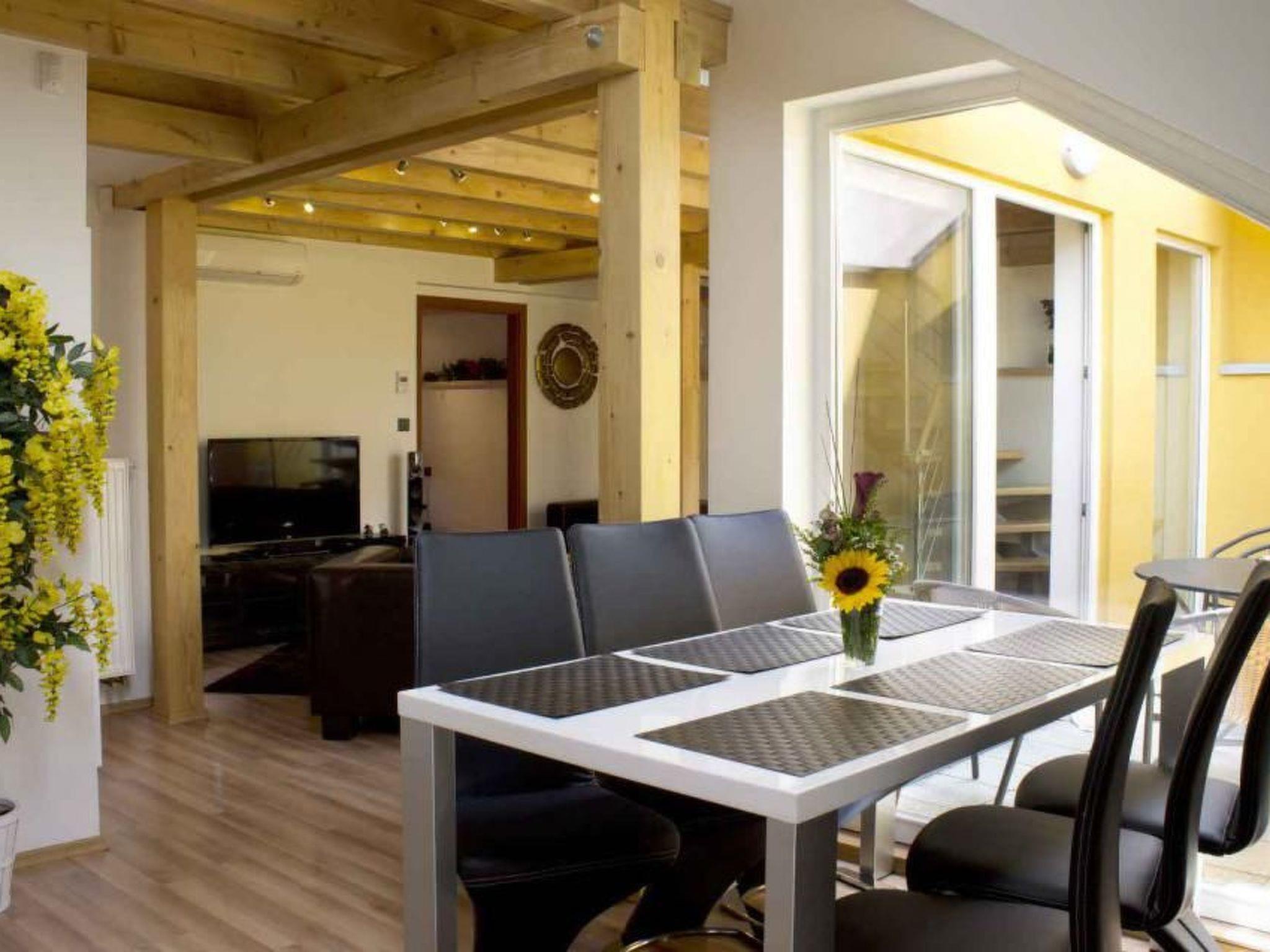 Layout: The ground floor comprises a living room with a fully equipped open-plan kitchen, dining area, terrace, two bedrooms and bathroom with WC. The first floor is accessed via a designer steel and wood staircase. Here you'll find the third and fourth bedrooms, the second bathroom and a storage room. The flat features high-quality materials.