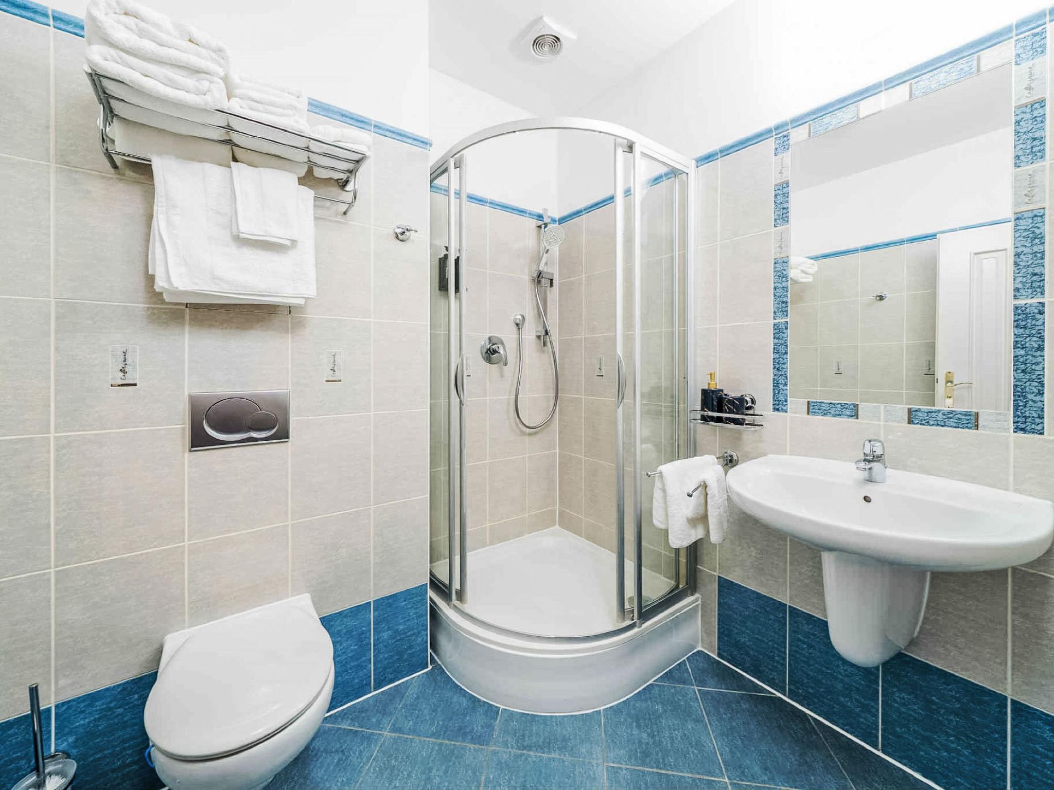 Very beautiful, historical residence "Balbin", 6 storeys. In the centre of Praha, in a central, busy position, 1.8 km from the river. In the house: lift, central heating system. Linen change (suppl. charge extra). Towel change (suppl. charge extra). Room cleaning on request (extra). Public parking extra. Grocery, supermarket, restaurant 50 m, bar 100 m, café 50 m, tram "Muzeum" 230 m, bus stop "Praha, ÚAN Florenc" 2 km, railway station "Praha, hlavní nádraží" 950 m, underground station "Muzeum, Námestí Míru" 400 m, park "Riegerovy sady" 400 m, indoor swimming pool 800 m. Minigolf 1.5 km, children's playground 900 m. Nearby attractions: Václavské námestí 500 m, Karluv most 2 km, Staromestské námestí, Orloj 1700 km, Pražský hrad, Petrínská rozhledna 3.5 km, Zoo 6 km, Vyšehrad 2.5 km, Karlštejn 30 km, Krivoklát 50 km. Well-known lakes can easily be reached: vodní nádrž Džbán 10 km, Hostivarská prehrada 13 km, Velká Amerika 33 km. Hiking paths: Stromovka 4 km, Prokopské údolí 9 km, Divoká Šárka 11 km.