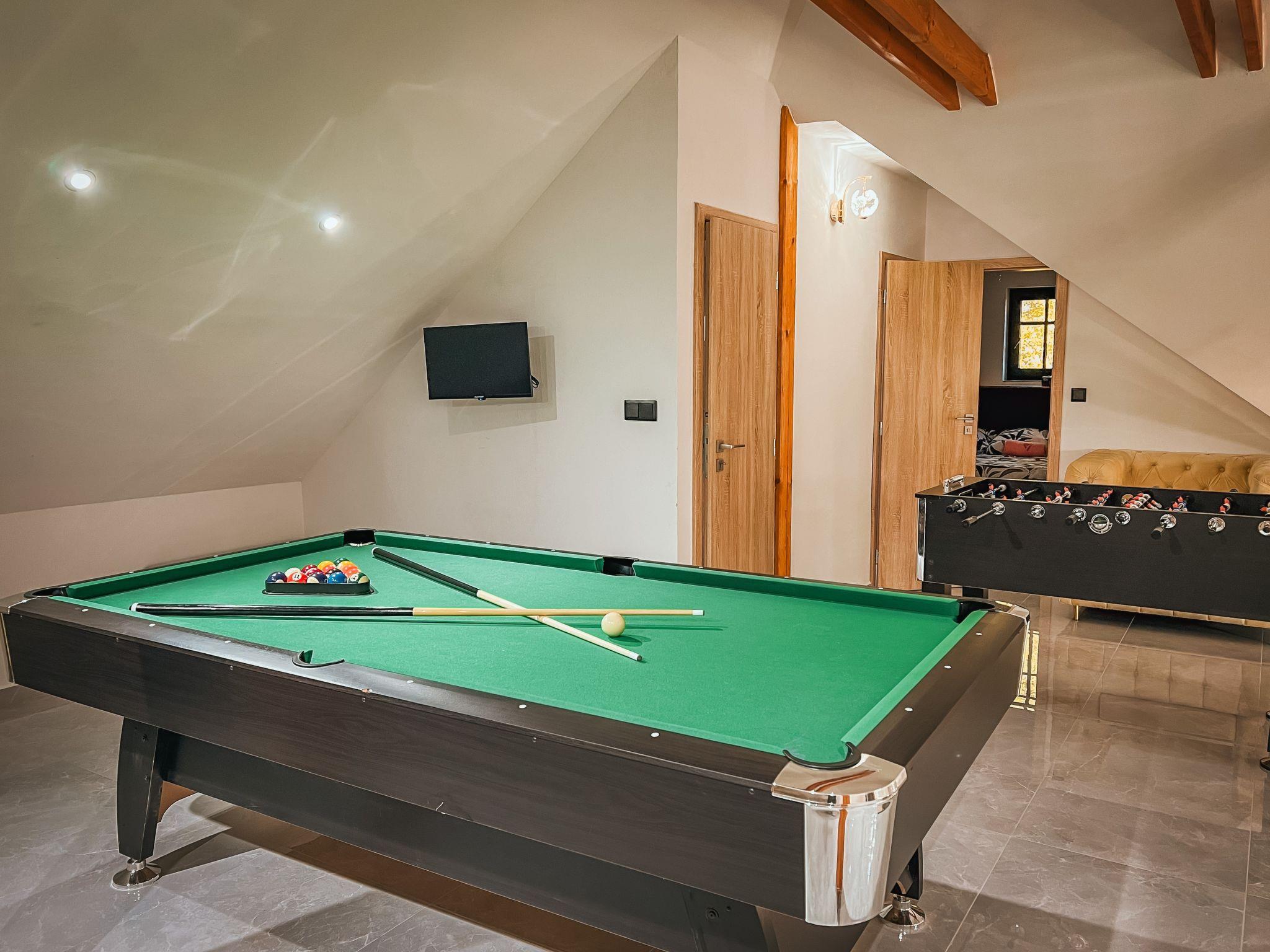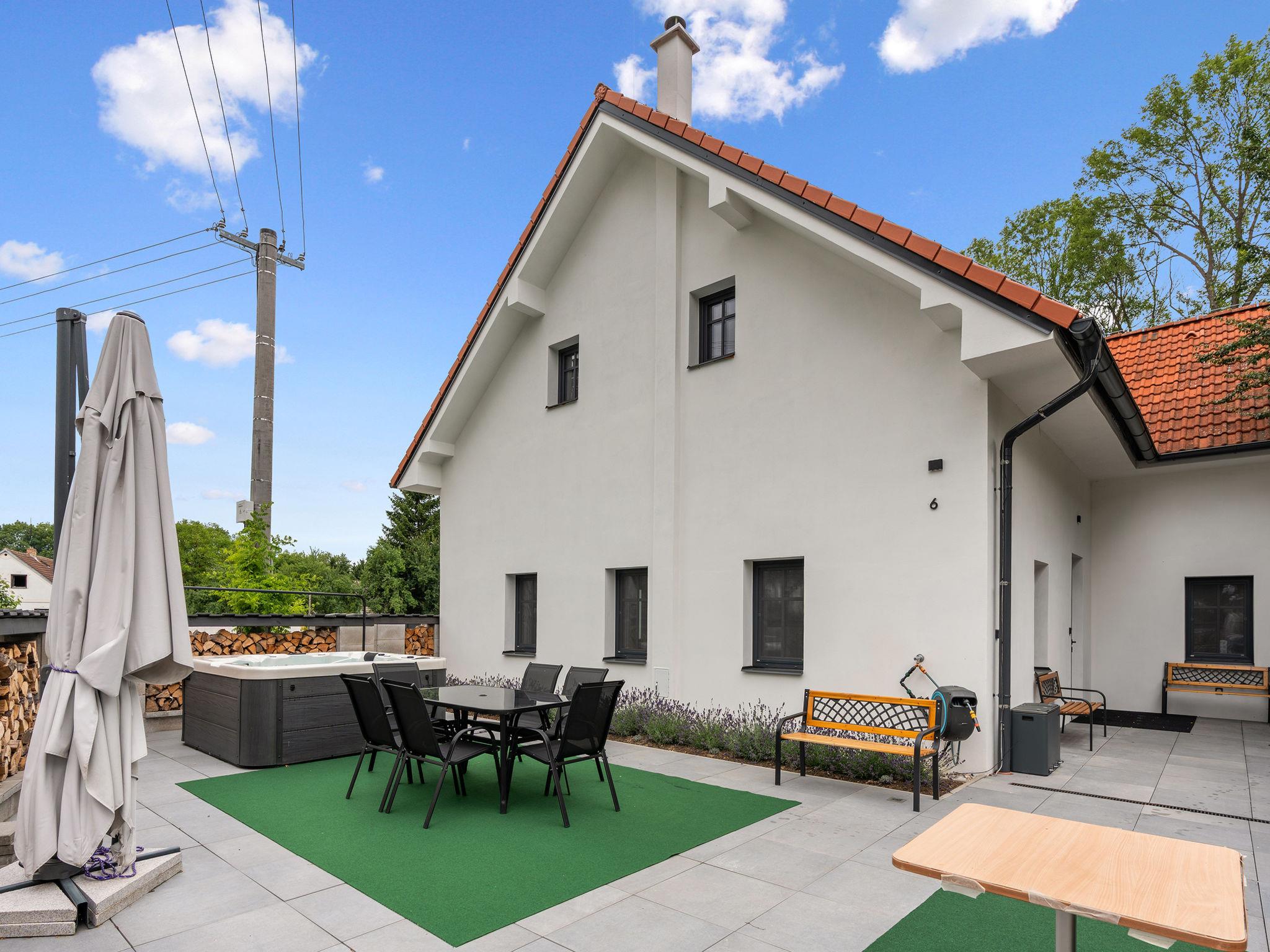 Modern, luxurious holiday development. 3 houses in the resort. In a quiet, sunny position. Private: terrace, garden furniture, barbecue. In the complex: massage (extra). Hot tub, relaxation room, billiard table, table football, central heating system. House maid on request (included). Parking (for 4 cars) on the premises. Shop 5 km, supermarket 5 km, restaurant 5 km, bus stop "Pocátky, Prostý" 100 m. Golf course (18 hole) 21 km. Nearby attractions: Lázne Svatá Katerina, Zámek Žirovnice 9 km, Zámek Žirovnice, Popelín, Studená 9 km, Ceská Olešná 10 km, Telc (UNESCO) 20 km, Zámek Jindrichuv Hradec 25 km, Zámek Cervená Lhota 35 km, Golf Telc(18 jamek)21km, Mnich(36 jamek) 27 km. Hiking paths: Jihlava 38 km, Trebon 50 km. The owner can arrange Ayurvedic massages, quad bikes, animation programs, horse riding. Ideal for spending free time. Suitable for groups, celebrations, bachelorette parties, friends, fun,..