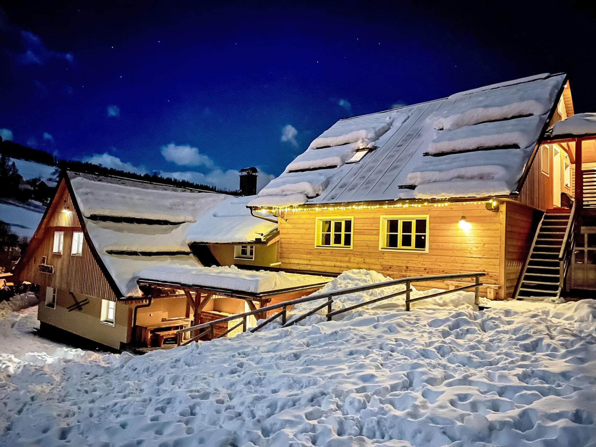 Very beautiful country house "Chalupa U Bobra", 2 storeys, detached. 2 apartments in the property. In a quiet, sunny position, 500 m from the edge of the forest, 1.3 km from the skiing area, 1.7 km from the river, 10 m from the stream. For shared use: property. Patio, barbecue, fireplace, children's playground (slide, swing). In the house: WiFi, sauna (extra). Playroom, table football, storage room for bicycles, storage room for skis, central heating system. Parking at the house. Grocery 500 m, supermarket 1 km, restaurant 800 m, bus stop "Rokytnice nad Jizerou, nám." 1 km, outdoor swimming pool 4 km, indoor swimming pool 20 km. Golf course (9 hole) 15 km, tennis 2 km, minigolf 8 km, walking paths from the house 10 m, cycle lane 300 m, ski lift 1.3 km, chair lift 1.3 km, slopes 1.3 km, ski rental 1.3 km, ski school 1.3 km, cross country ski track 1.3 km, children's playground 1 km. Nearby attractions: Hutský vodopád 5 km, Harrachov - sklárna, minipivovar, Mumlavský vodopád, bobová dráha 14 km, Príchovice, Korenov, Jizerka 15 km, Jilemnice, Szklarska Poreba 20 km, Zoo, Aquapark Babylon Liberec 40 km. Well-known ski regions can easily be reached: Rokytnice nad Jizerou 3 km, Paseky na Jizerou 7 km, Harrachov, Vítkovice 13 km. Well-known lakes can easily be reached: Vodní nádrž Souš 20 km. Hiking paths: Okolo Rokytnice 500 m, Pašerácká stezka 2 km, Krakonošova cesta 5 km. Please note: suitable for families, suitable for seniors baby equipment on request (included). The sauna is accessible from the outside, it is for 8 guests. Sauna is available in the period 1.11.-30.4. (for free), in the period 1.5.-31.10. is on request (and for an extra charge).