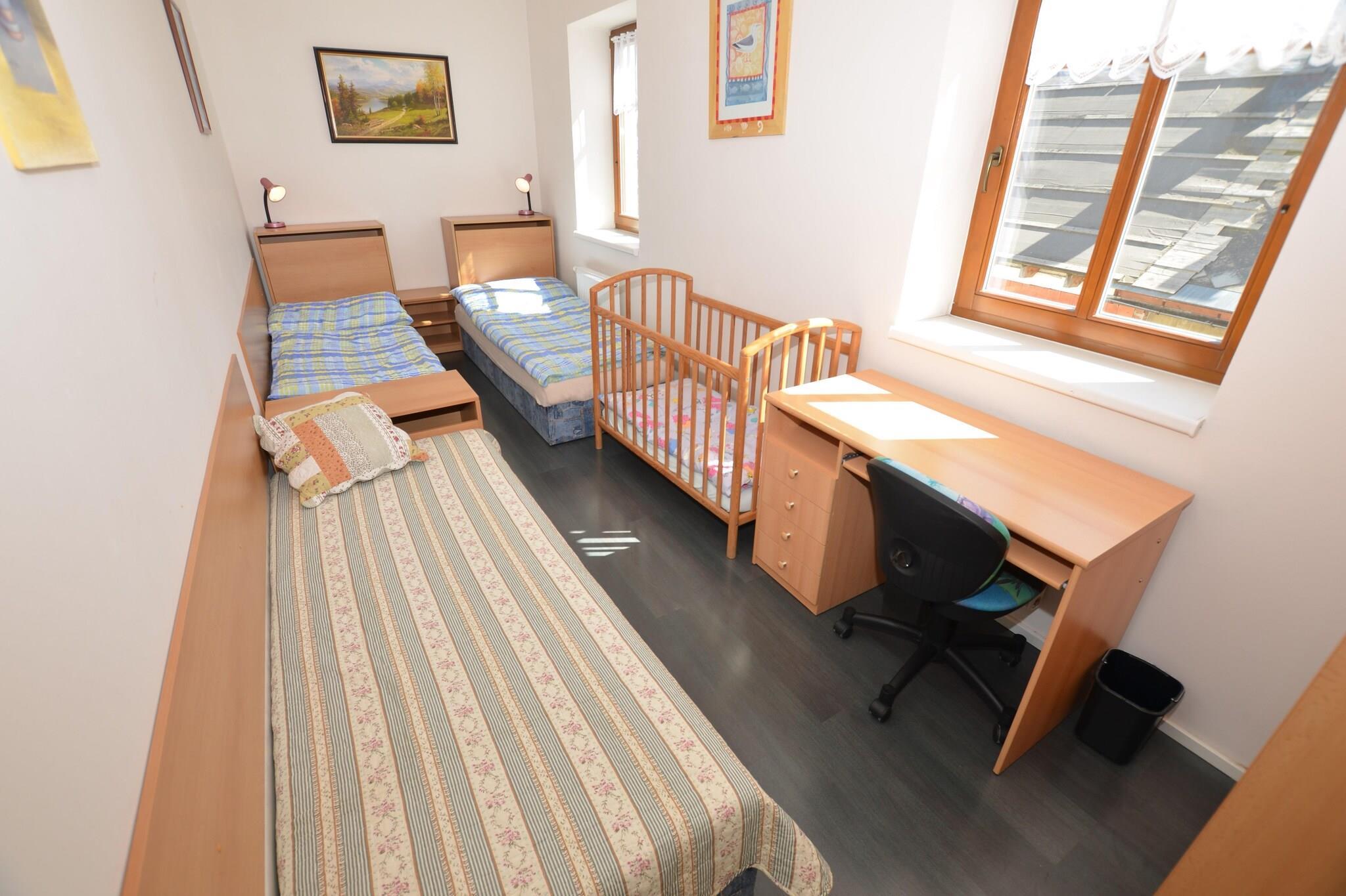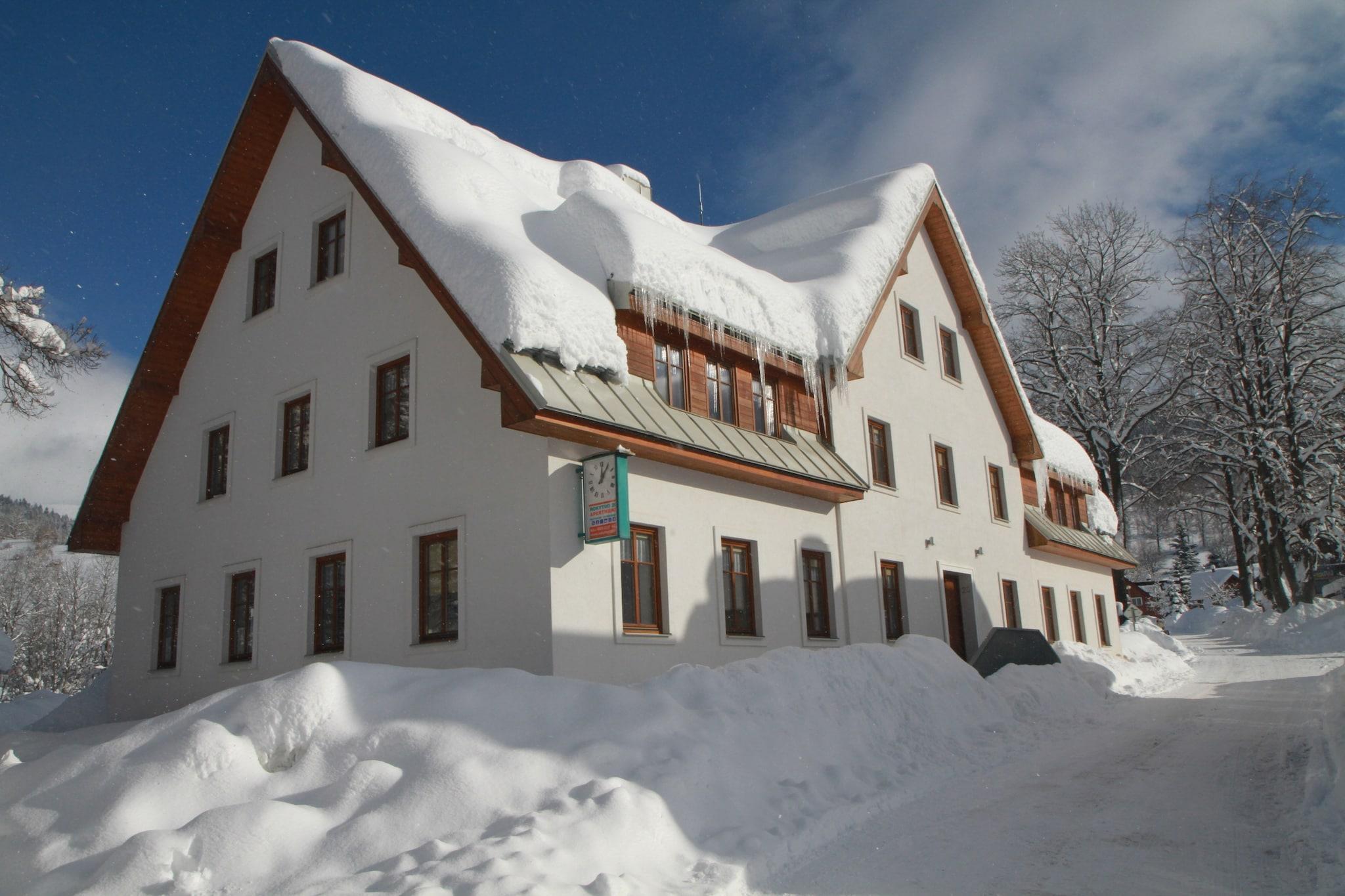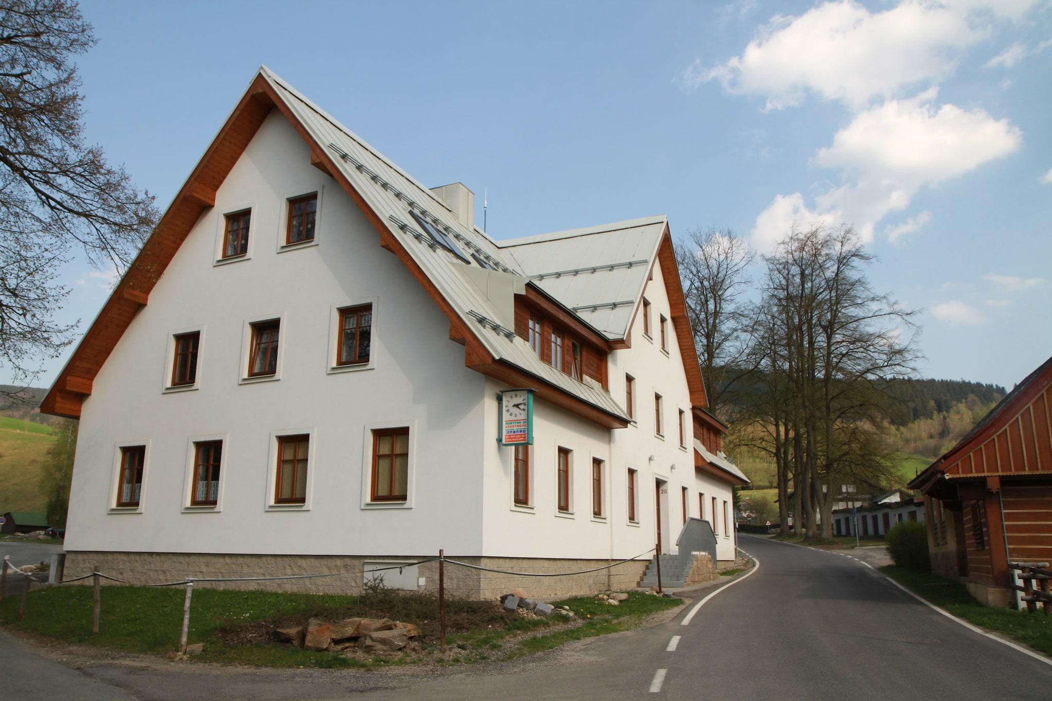 Bjergbyflugt Denne moderne 1-værelses lejlighed ligger i de fredelige omgivelser i Rokytnice nad Jizerou og tilbyder et indbydende ophold for familier og små grupper. Med plads til op til fem gæster, kombinerer det komfort med stil, med et fuldt udstyret køkken, varmt interiør og store vinduer, der åbner ud til udsigten over de nærliggende pister. Hjemmets gennemtænkte design gør det til et hyggeligt tilflugtssted efter en dag med udendørs aktiviteter. Aktive dage i nærheden Kun 100 meter fra både skoven og skilifterne er beliggenheden ideel for både vintersportsentusiaster og sommereventyrere. Uanset om du står på ski på skråningerne af Giant Mountains, udforsker vandre- og cykelstier eller nyder den sprøde bjergluft, fungerer lejligheden som en bekvem base. Offentlig transport er kun 200 meter væk, mens byens centrum - kun 400 meter - byder på butikker og tjenester for at gøre dit ophold nemt og behageligt. Spisning og afslapning Et udvalg af restauranter ligger kun 100 meter fra lejligheden, hvilket giver dig mulighed for at prøve lokale tjekkiske retter efter en aktiv dag. For dem, der foretrækker at lave mad derhjemme, er almindelige forsyninger kun 300 meter væk. Om aftenen kan du slappe af i den hyggelige opholdsstue med en film eller bare slappe af ved spisebordet med familien. Med parkering på stedet og mulighed for en børneseng giver denne lejlighed et velafrundet ophold for rejsende, der søger både afslapning og eventyr i Rokytnice nad Jizerou.