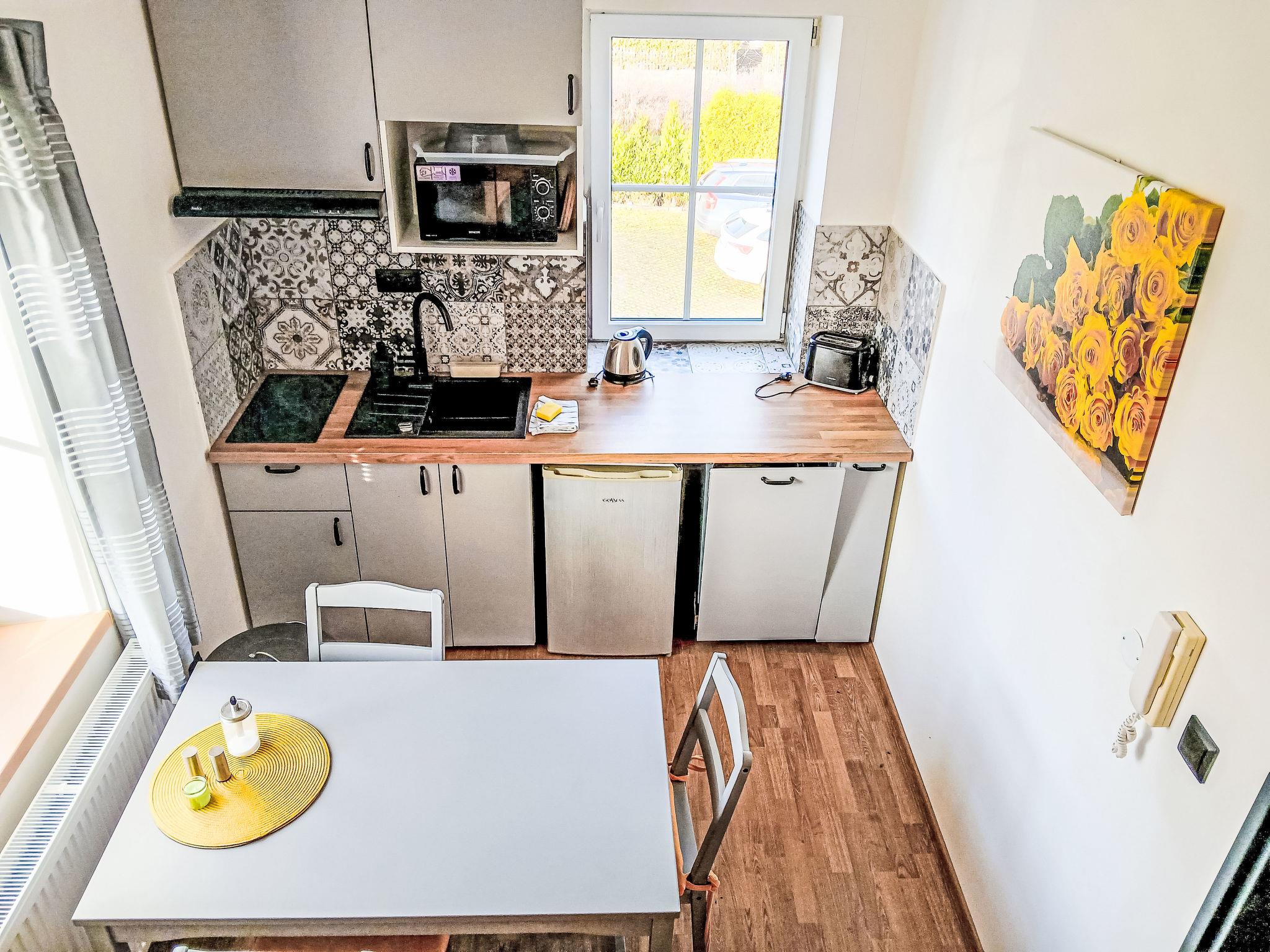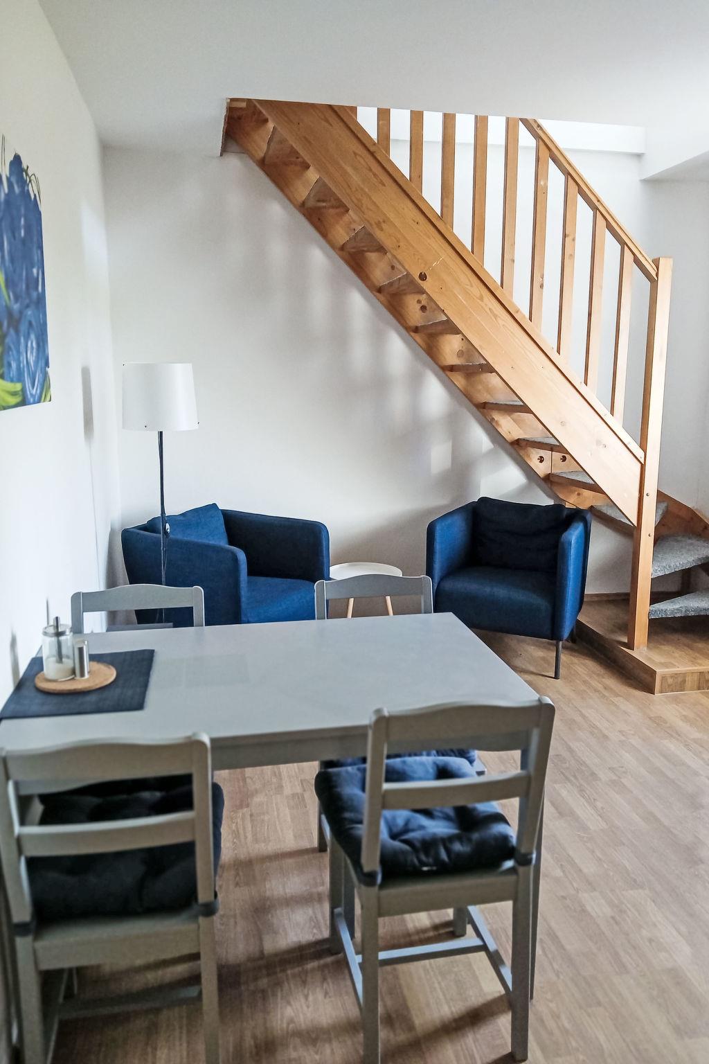 "Apartmán 2", 2-room apartment. Comfortable and beautiful furnishings: living/dining room. Kitchenette (dishwasher, 2 induction hot plates, toaster, kettle, microwave) with dining table. Shower/WC. Electric heating. Upper floor: (steep stair) open, 1 room with 1 bed and 1 double bed. Very beautiful view. Facilities: hair dryer. Internet (WiFi, free). Please note: suitable for families. Non-smokers only. 1 pet/ dog allowed.