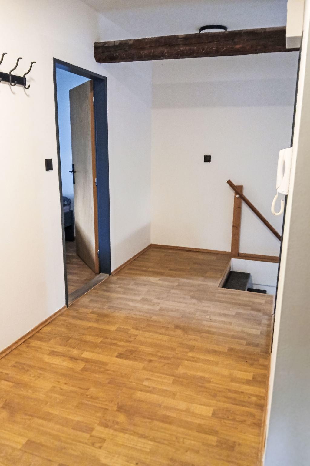 "Apartmán 6", 4-room apartment. Upper floor: (steep stair) open living/dining room. 1 room with 1 double bed. 2 rooms, each room with 3 beds. Kitchenette (4 induction hot plates, toaster, kettle, microwave). Very beautiful view. Facilities: hair dryer. Internet (WiFi, free). Suitable for families. 1 pet/ dog allowed.