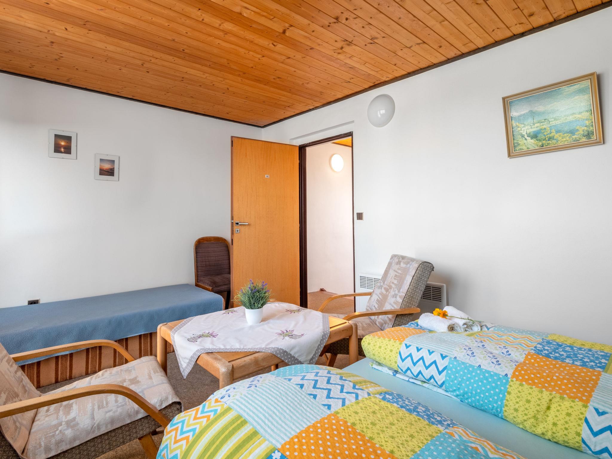 2-room apartment 70 m2 on 2 levels, on the ground floor. Practical and cosy furnishings: large living room with 3 beds and radio. Exit to the patio. Kitchenette (4 hot plates, oven, kettle, microwave, freezer, electric coffee machine) with dining table. Shower, sep. WC. Boiler. Upper floor: 1 room with 2 beds. 1 room with 1 bed and 1 double bed. Exit to the balcony. Balcony, patio. Terrace furniture. Beautiful view of the valley, the garden and the countryside. Facilities: children's high chair, baby cot, hair dryer. Internet (WiFi, free). Please note: suitable for families. Maximum 2 pets/ dogs allowed. Smoke alarm, fire extinguisher.