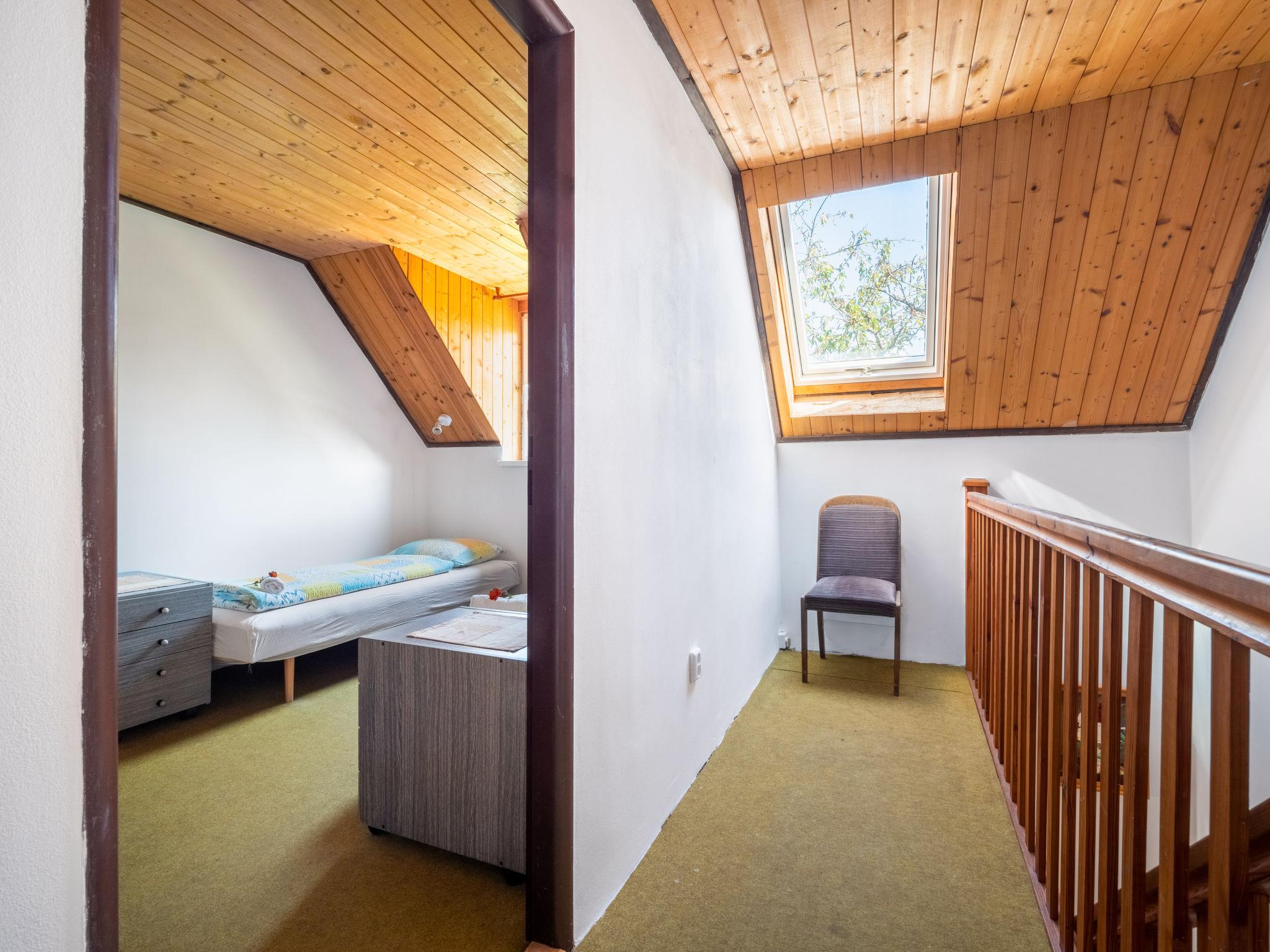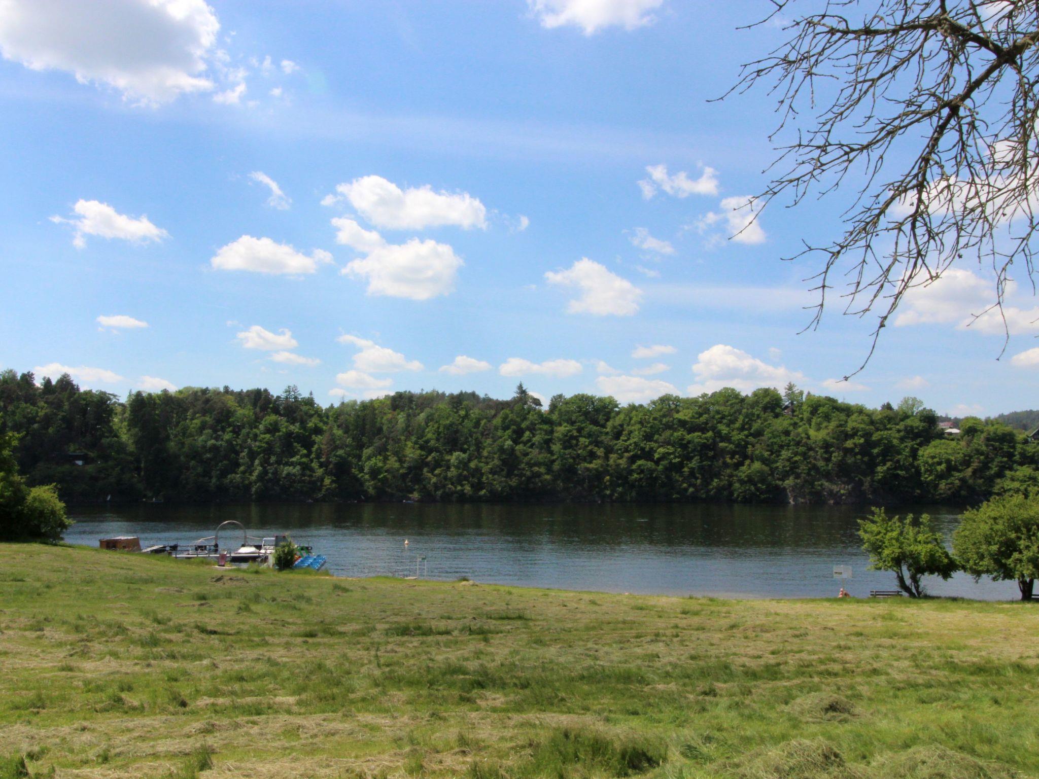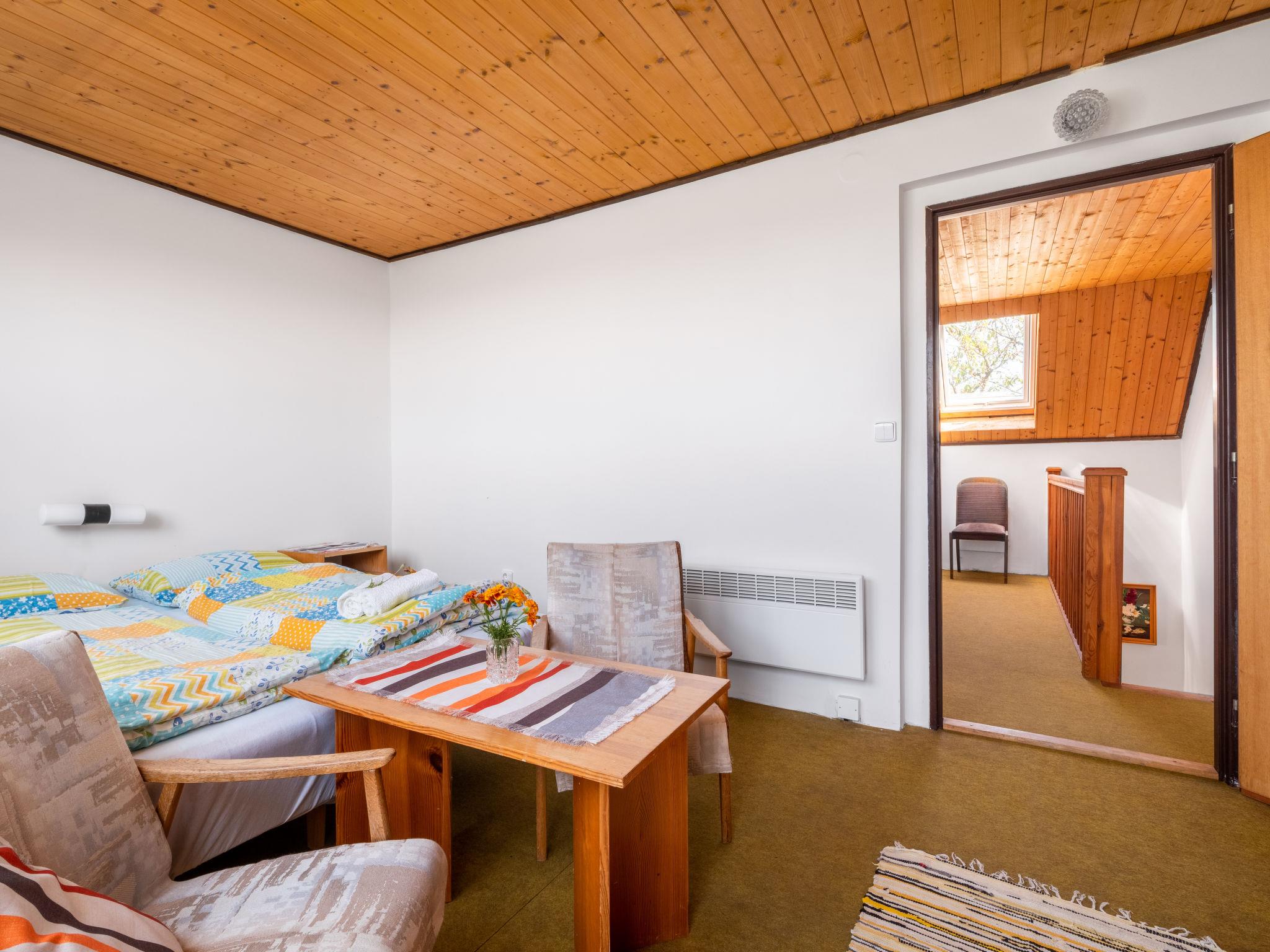 Rabyne 7 km from Slapy: Very child friendly, comfortable apartment house "Rabyne", detached, built in 1992. On the outskirts, in a quiet, sunny, elevated position, 800 m from the lake, in the countryside. For shared use: property 3'500 m2 (fenced) with lawn. Table tennis, volleyball, badminton, garden furniture, barbecue, fireplace, children's playground. In the house: WiFi, central heating system. Breakfast on request (extra). Parking (for 2 cars) at the house. Grocery 8 km, restaurant 500 m, bus stop "Rabyne - Nová Rabyne" 600 m, sandy beach "vodní nádrž Slapy" 1.5 km, grass beach "vodní nádrž Slapy" 1.5 km, indoor swimming pool 7 km, public bathing area, bathing lake "vodní nádrž Slapy" 800 m. Sports harbour 1.5 km, golf course (18 hole) 6 km, tennis 7 km, riding stable 7 km, sports centre 7 km, walking paths from the house 100 m, cycle lane 100 m, children's playground 300 m, fishing possibilities 1.5 km. Nearby attractions: vodní nádrž Slapy 800 m, Krnanský vodopád, vyhlídka Máj 8 km, zámek Konopište, zámek Dobríš 25 km, Mníšek pod Brdy 28 km, zámek Jemnište 36 km, Praha, Pražský hrad, hrad Karlštejn 45 km. Hiking paths: Svatojanské proudy 2 km. Please note: suitable for events. Fishing [permit required].