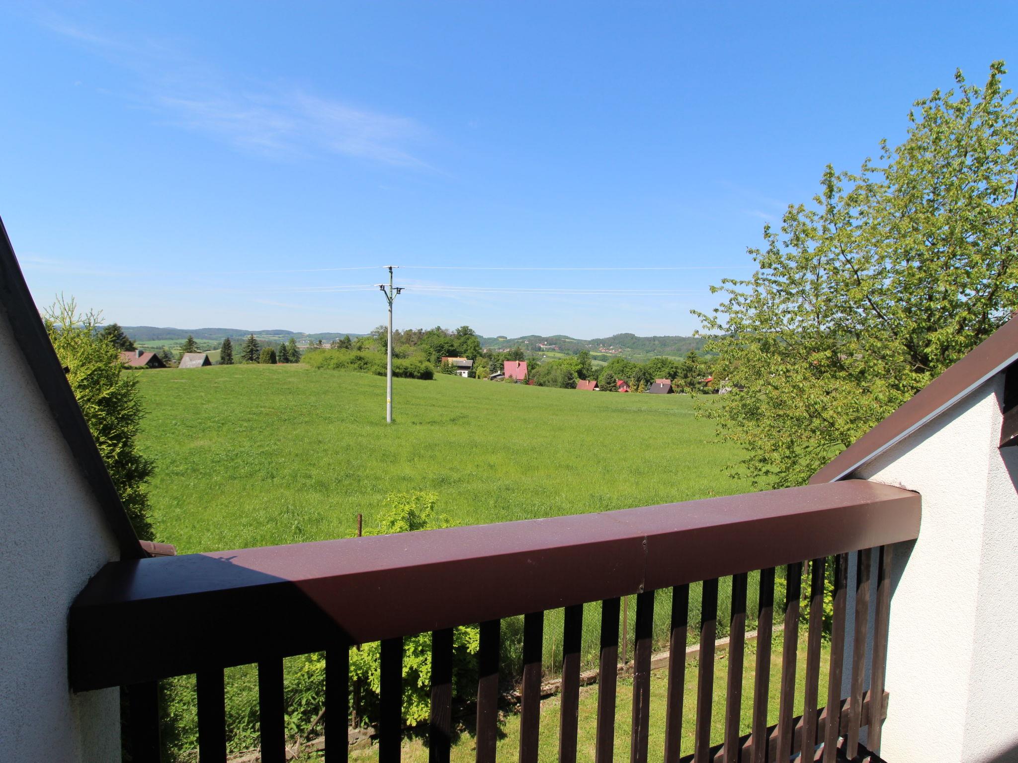 2-room apartment 70 m2 on 2 levels, on the ground floor. Practical and cosy furnishings: large living room with 3 beds and radio. Exit to the patio. Kitchenette (4 hot plates, oven, kettle, microwave, freezer, electric coffee machine) with dining table. Shower, sep. WC. Boiler. Upper floor: 1 room with 2 beds. 1 room with 1 bed and 1 double bed. Exit to the balcony. Balcony, patio. Terrace furniture. Beautiful view of the valley, the garden and the countryside. Facilities: children's high chair, baby cot, hair dryer. Internet (WiFi, free). Please note: suitable for families. Maximum 2 pets/ dogs allowed. Smoke alarm, fire extinguisher.