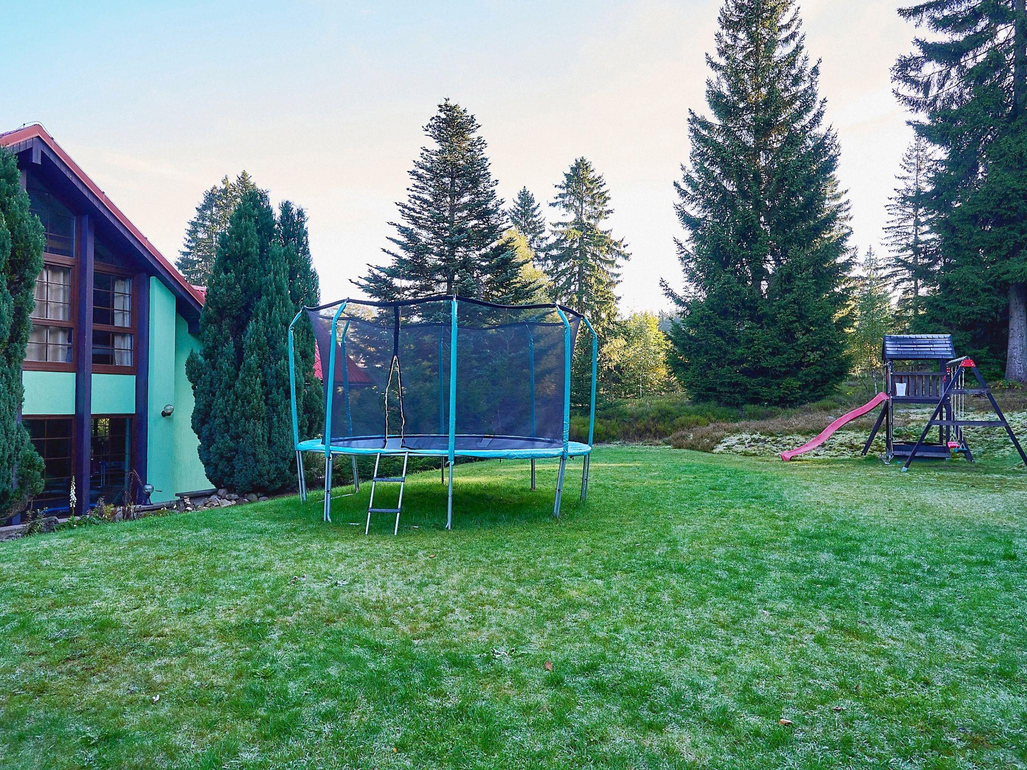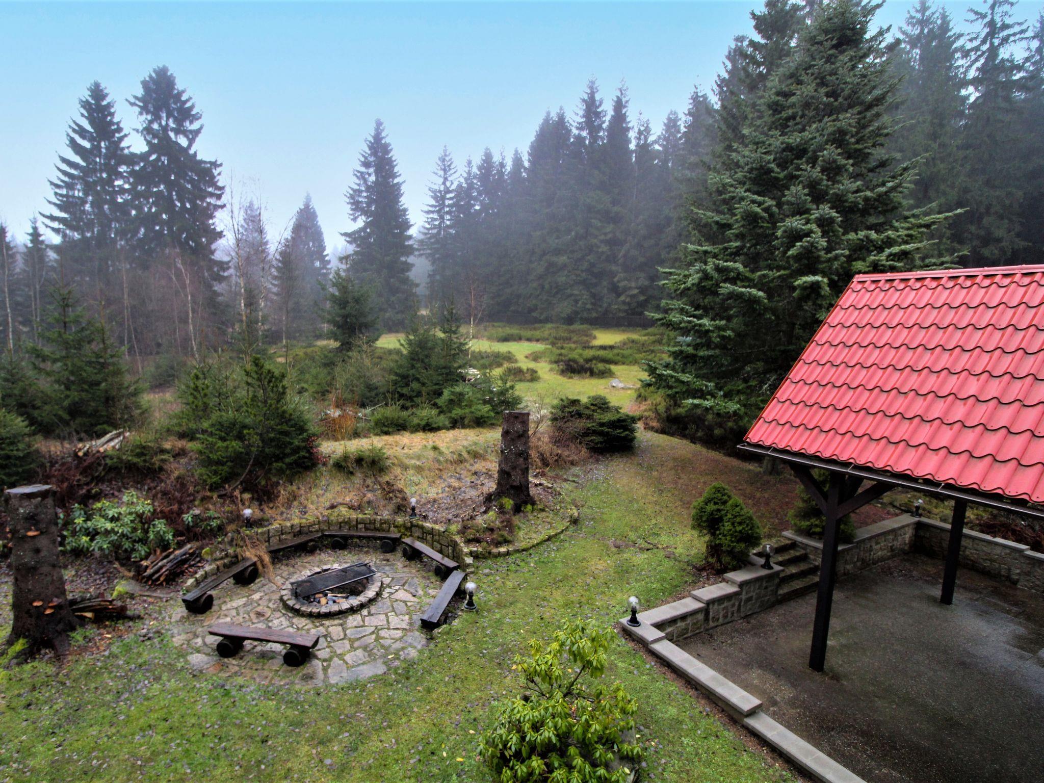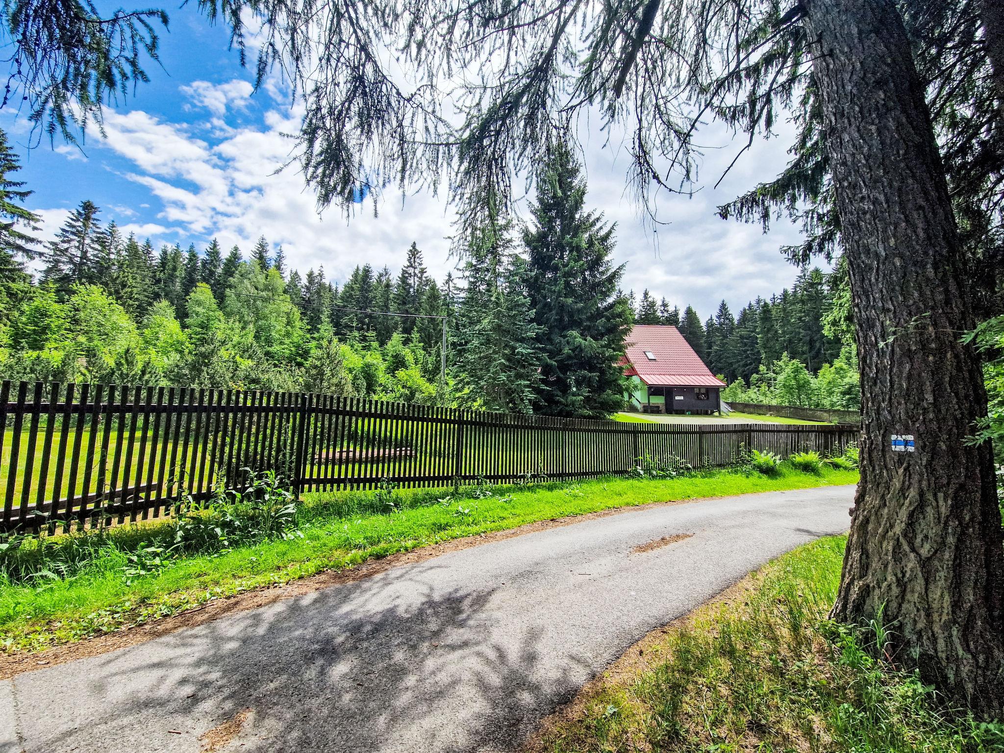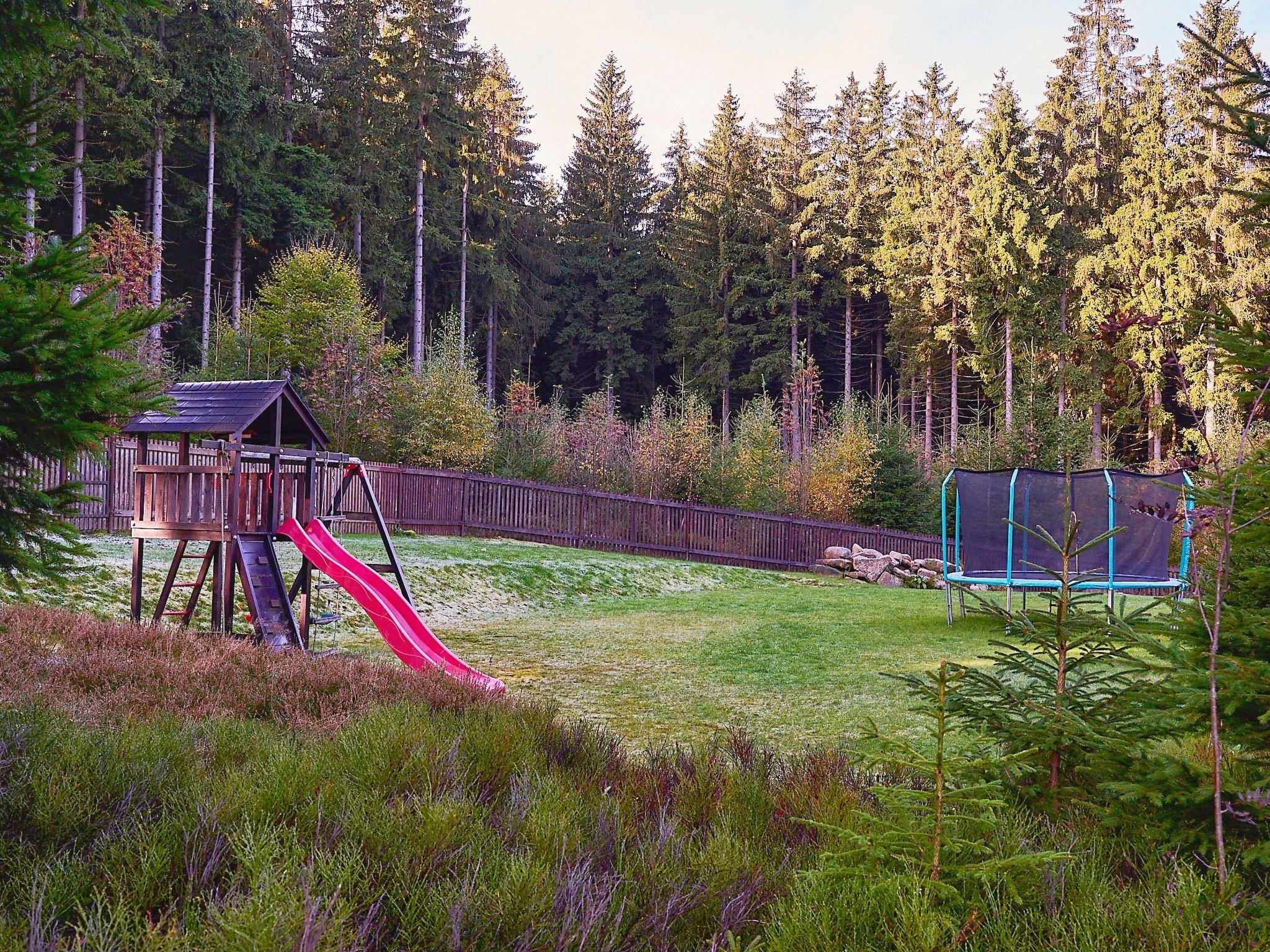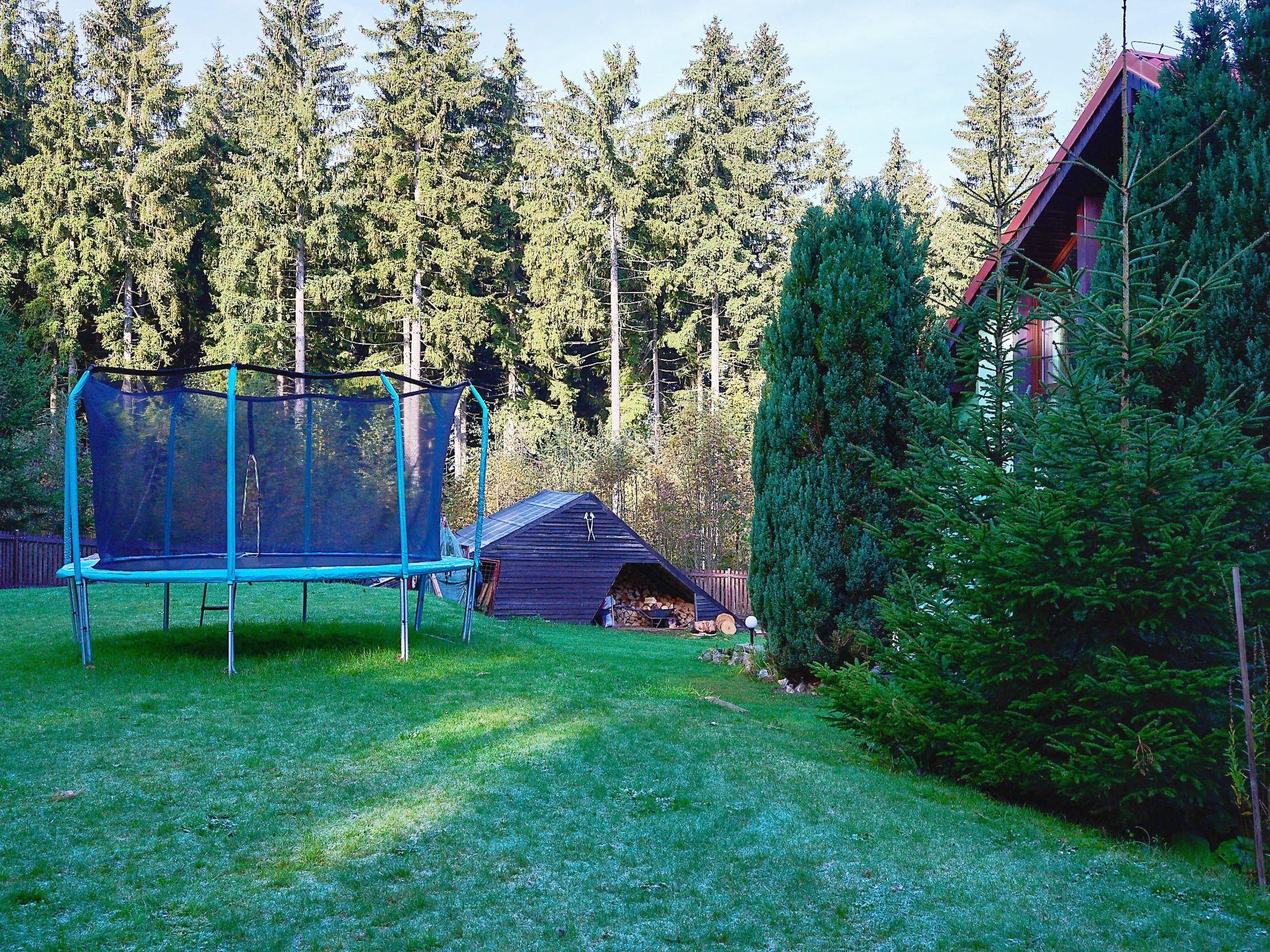Very beautiful single-family house "Jelení kout", 2 storeys, detached, built in 1994, renovated in 2000, surrounded by trees. Outside the resort, traffic calmed area, along the wooded area, 1.5 km from the skiing area, in a cul-de-sac. Private: property 2'500 m2 (fenced), garden, indoor pool heated, with privacy (4 x 7 m, seasonal availability: 01.Jan. - 31.Dec.). Terrace, garden furniture, barbecue, fireplace, children's playground (swing, sandbox). In the house: WiFi, sauna (extra). Trampoline, washing machine. In Winter: please take snow chains. Parking (for 6 cars) on the premises. Shop 2.5 km, grocery 2.5 km, shopping centre 20 km, restaurant 2.5 km, café 3 km, bus stop "Smržovka, sánkarská dráha" 1.5 km, railway station "Smržovka stred" 2 km, outdoor swimming pool 7 km, indoor swimming pool 20 km. Golf course (18 hole) 17 km, tennis 4 km, riding stable 2 km, cycle lane 100 m, ski lift 2 km, slopes 2 km, ski rental 2 km, ski school 2 km, sled run 300 m, cross country ski track, children's playground 3 km. Nearby attractions: Rozhledna Cerná Studnice 2 km, Muzeum obrnené techniky Smržovka 2 km, Kittelovo muzeum v Krásné 5 km, Vodopády v Jedlové 17 km, Zoo Liberec, Aquapark Babylon 20 km, Bozkovské jeskyne 24 km. Well-known ski regions can easily be reached: Filip Smržovka 2 km, Tanvaldský Špicák 8 km, Ski areál Severák, Bedrichov, Harrachov. Hiking paths: Hrebenovka. Please note: baby equipment. Sauna and pool heating to be paid on the spot (according to electricity use).