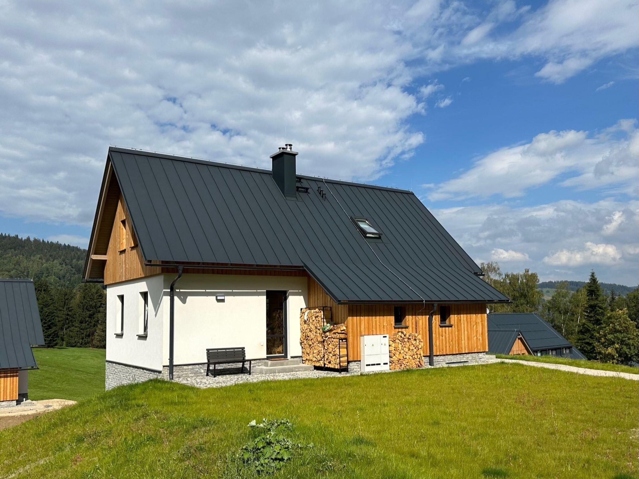 Comfortable cottage, 2 storeys, detached, built in 2023. Outside the resort, along the wooded area, 2 km from the skiing area. Private: property. Terrace. In Winter: please take snow chains. Parking. E-charging station. Shop 2 km, grocery 2.5 km, supermarket 6 km, shopping centre 20 km, restaurant 2 km, bus stop "Jiretín pod Bukovou" 1.4 km, railway station "Jiretín pod Bukovou" 1.3 km, outdoor swimming pool 7 km, indoor swimming pool 20 km. Golf course (9 hole) 17 km, walking paths from the house 10 m, cycle lane 100 m, ski lift 2 km, slopes 2 km, ski rental 2 km, ski school 2 km, cross country ski track 100 m, children's playground 3 km. Nearby attractions: Rozhledna Cerná Studnice 6 km, Muzeum obrnené techniky Smržovka 6 km, Vodopády Jedlové 7 km, Kittelovo muzeum v Krásné 12 km, Aquapark Babylon, IQLandia, ZOO Liberec 22 km, Bozkovské jeskyne 22 km. Well-known ski regions can easily be reached: Tanvaldský Špicák 2 km, Filip Smržovka 4 km, Svetlý Vrch Albrechtice 4 km, Josefuv Dul 7 km, Severák, Bedrichov 12 km. Hiking paths: Hrebenovka.