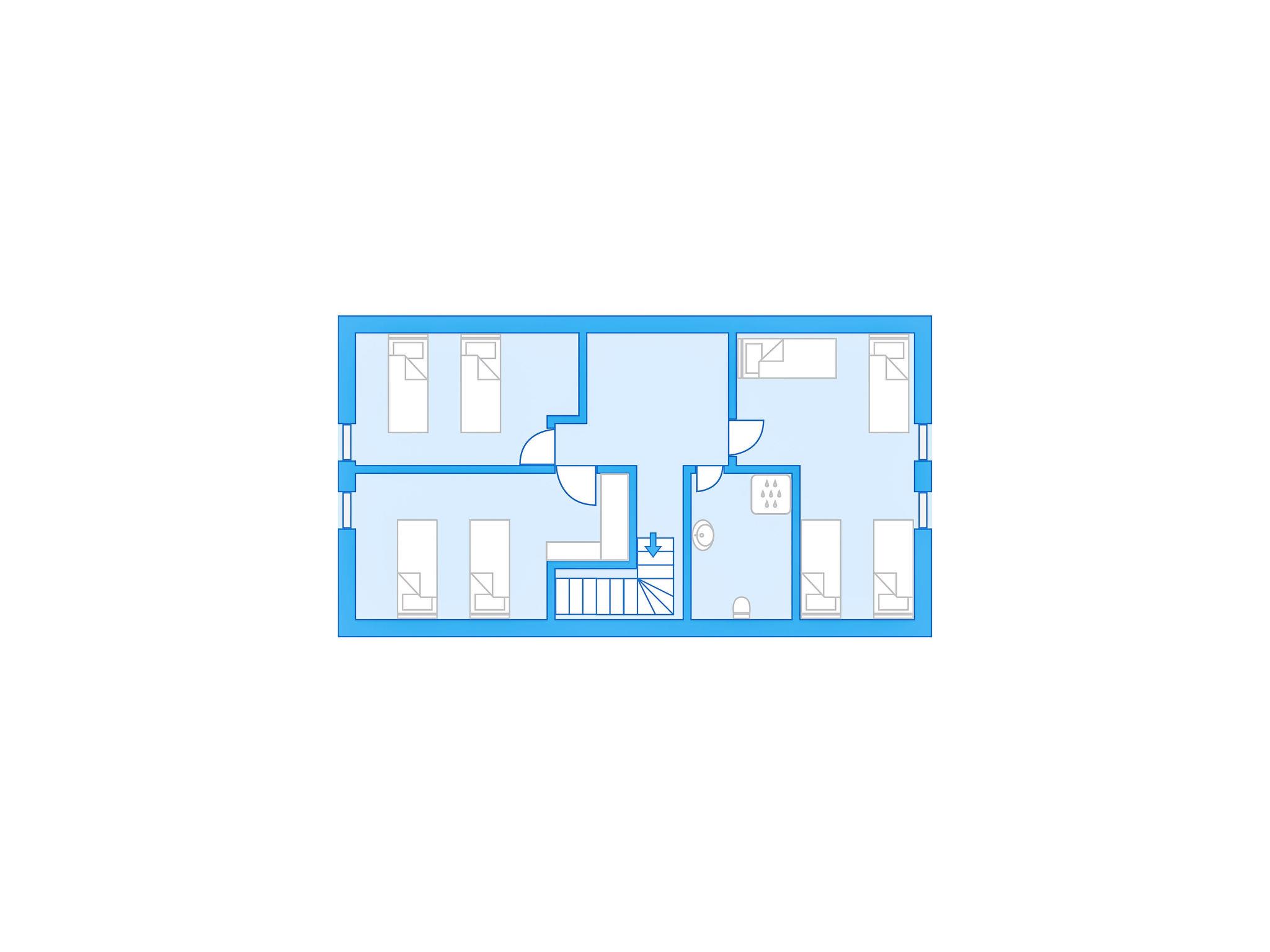 "13ka Duplex with Terrace", 4-room apartment on 2 levels on 1st floor. Very beautiful and modern furnishings: open large living room with Scandinavian wood stove, dining table and TV. Exit to the terrace. Kitchenette (dishwasher, 4 induction hot plates, toaster, kettle, freezer, electric coffee machine, Capsules for coffee machine (Nespresso)). Shower/WC. Floor heating, boiler. Upper floor: 2 rooms, each room with 1 double bed. 1 room with 4 beds. Shower/WC. Electric heating, wood heating, floor heating. Terrace. Terrace furniture, barbecue, box-room. Facilities: washing machine, children's high chair, baby cot. Internet (WiFi, free). Parking at 20 m. E-charging station. Please note: suitable for families. Non-smoking house.