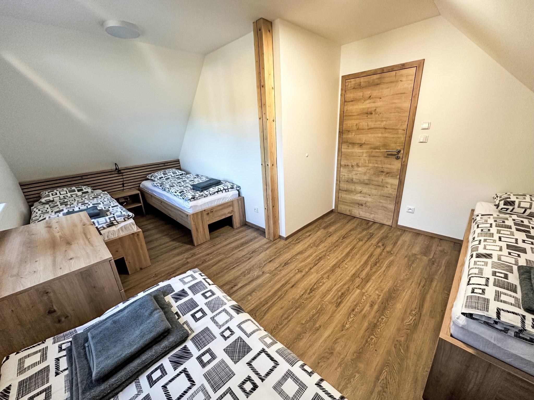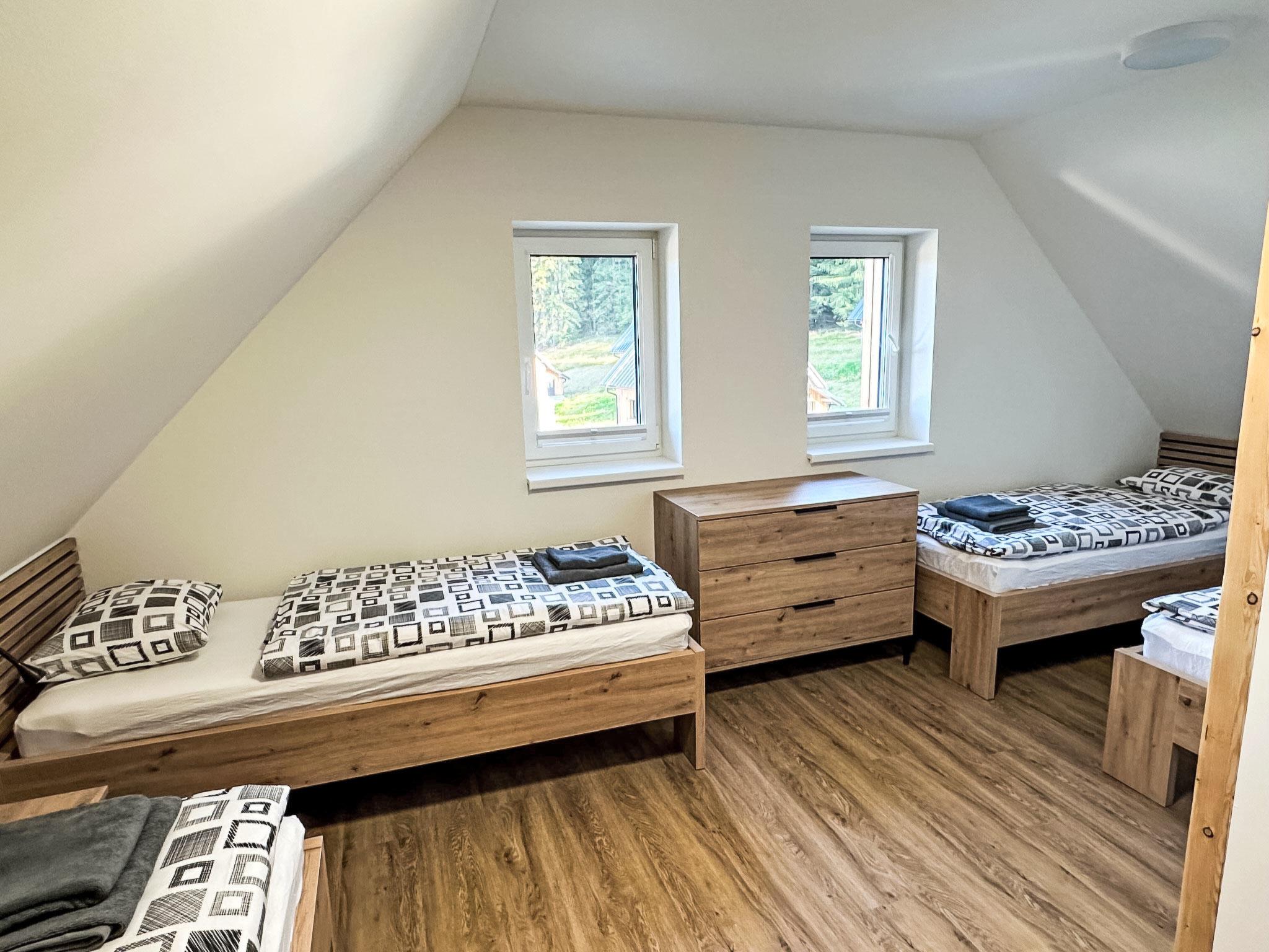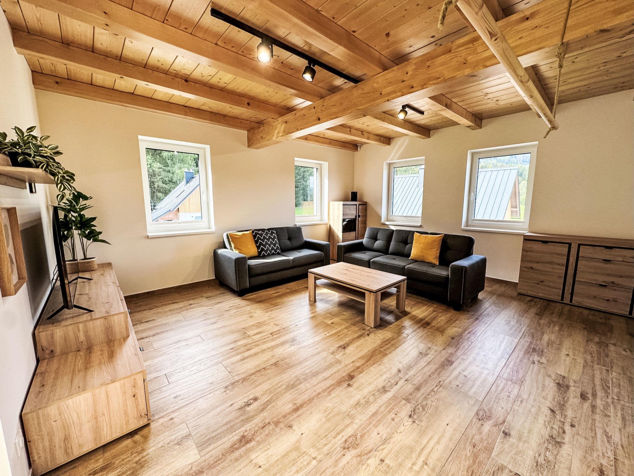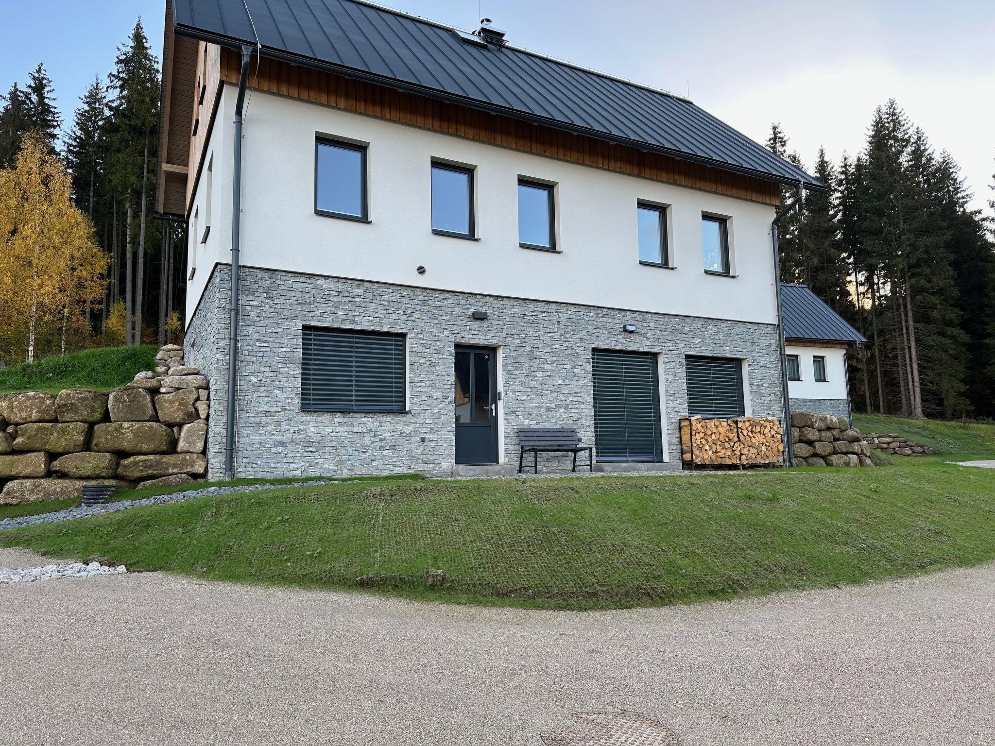 Comfortable cottage, 2 storeys, detached, built in 2023. Outside the resort, along the wooded area, 2 km from the skiing area. Private: property. Terrace. In Winter: please take snow chains. Parking. E-charging station. Shop 2 km, grocery 2.5 km, supermarket 6 km, shopping centre 20 km, restaurant 2 km, bus stop "Jiretín pod Bukovou" 1.4 km, railway station "Jiretín pod Bukovou" 1.3 km, outdoor swimming pool 7 km, indoor swimming pool 20 km. Golf course (9 hole) 17 km, walking paths from the house 10 m, cycle lane 100 m, ski lift 2 km, slopes 2 km, ski rental 2 km, ski school 2 km, cross country ski track 100 m, children's playground 3 km. Nearby attractions: Rozhledna Cerná Studnice 6 km, Muzeum obrnené techniky Smržovka 6 km, Vodopády Jedlové 7 km, Kittelovo muzeum v Krásné 12 km, Aquapark Babylon, IQLandia, ZOO Liberec 22 km, Bozkovské jeskyne 22 km. Well-known ski regions can easily be reached: Tanvaldský Špicák 2 km, Filip Smržovka 4 km, Svetlý Vrch Albrechtice 4 km, Josefuv Dul 7 km, Severák, Bedrichov 12 km. Hiking paths: Hrebenovka.