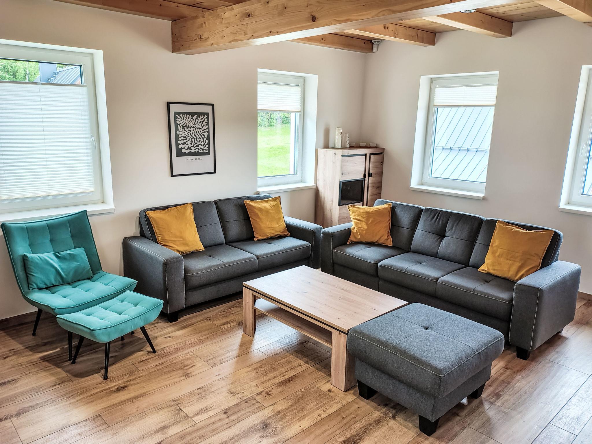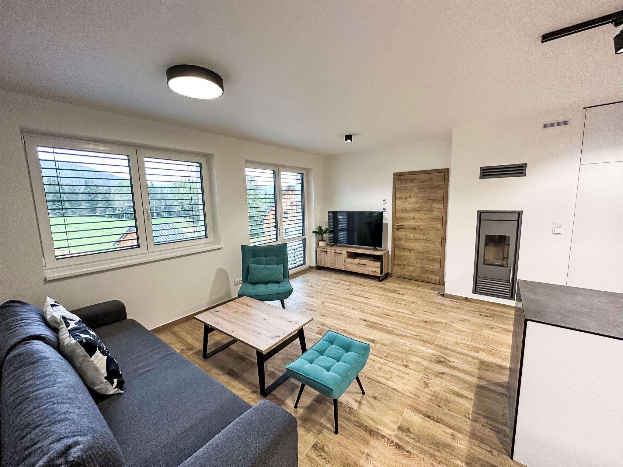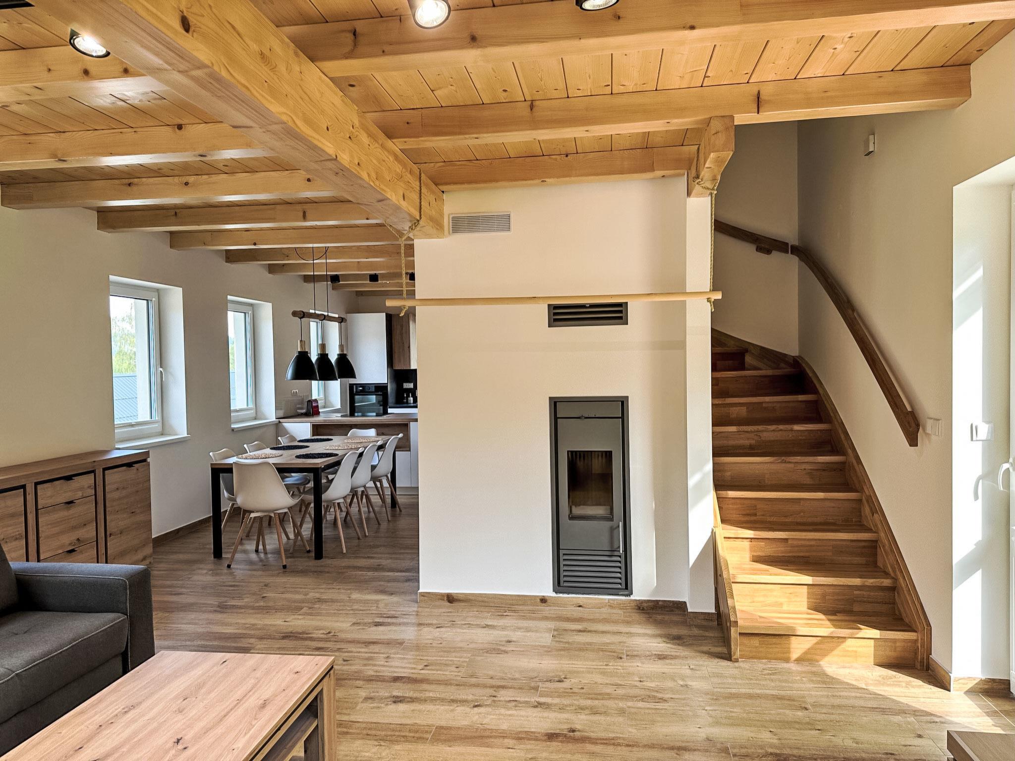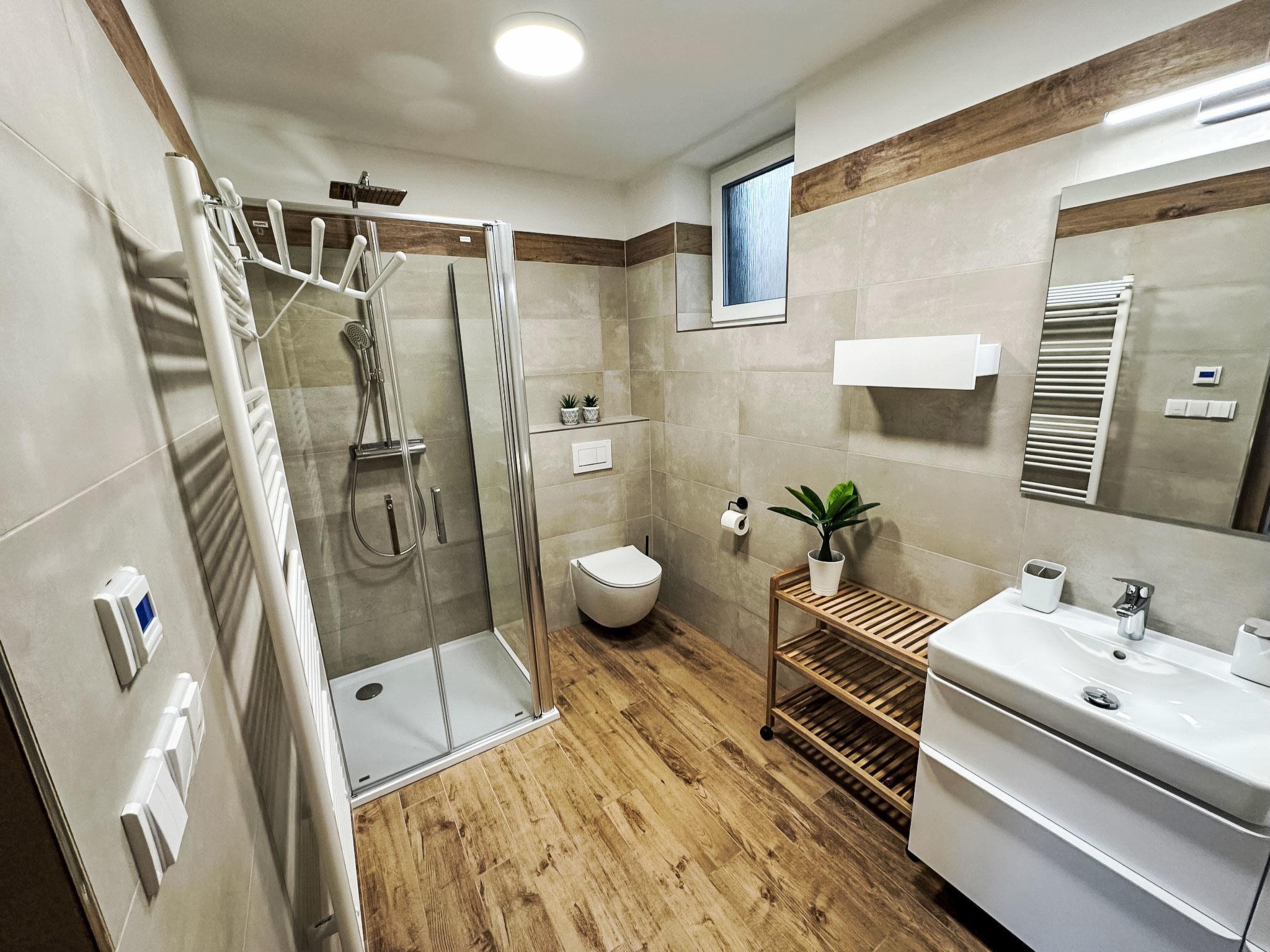 Comfortable cottage, 2 storeys, detached, built in 2023. Outside the resort, along the wooded area, 2 km from the skiing area. Private: property. Terrace. In Winter: please take snow chains. Parking. E-charging station. Shop 2 km, grocery 2.5 km, supermarket 6 km, shopping centre 20 km, restaurant 2 km, bus stop "Jiretín pod Bukovou" 1.4 km, railway station "Jiretín pod Bukovou" 1.3 km, outdoor swimming pool 7 km, indoor swimming pool 20 km. Golf course (9 hole) 17 km, walking paths from the house 10 m, cycle lane 100 m, ski lift 2 km, slopes 2 km, ski rental 2 km, ski school 2 km, cross country ski track 100 m, children's playground 3 km. Nearby attractions: Rozhledna Cerná Studnice 6 km, Muzeum obrnené techniky Smržovka 6 km, Vodopády Jedlové 7 km, Kittelovo muzeum v Krásné 12 km, Aquapark Babylon, IQLandia, ZOO Liberec 22 km, Bozkovské jeskyne 22 km. Well-known ski regions can easily be reached: Tanvaldský Špicák 2 km, Filip Smržovka 4 km, Svetlý Vrch Albrechtice 4 km, Josefuv Dul 7 km, Severák, Bedrichov 12 km. Hiking paths: Hrebenovka.