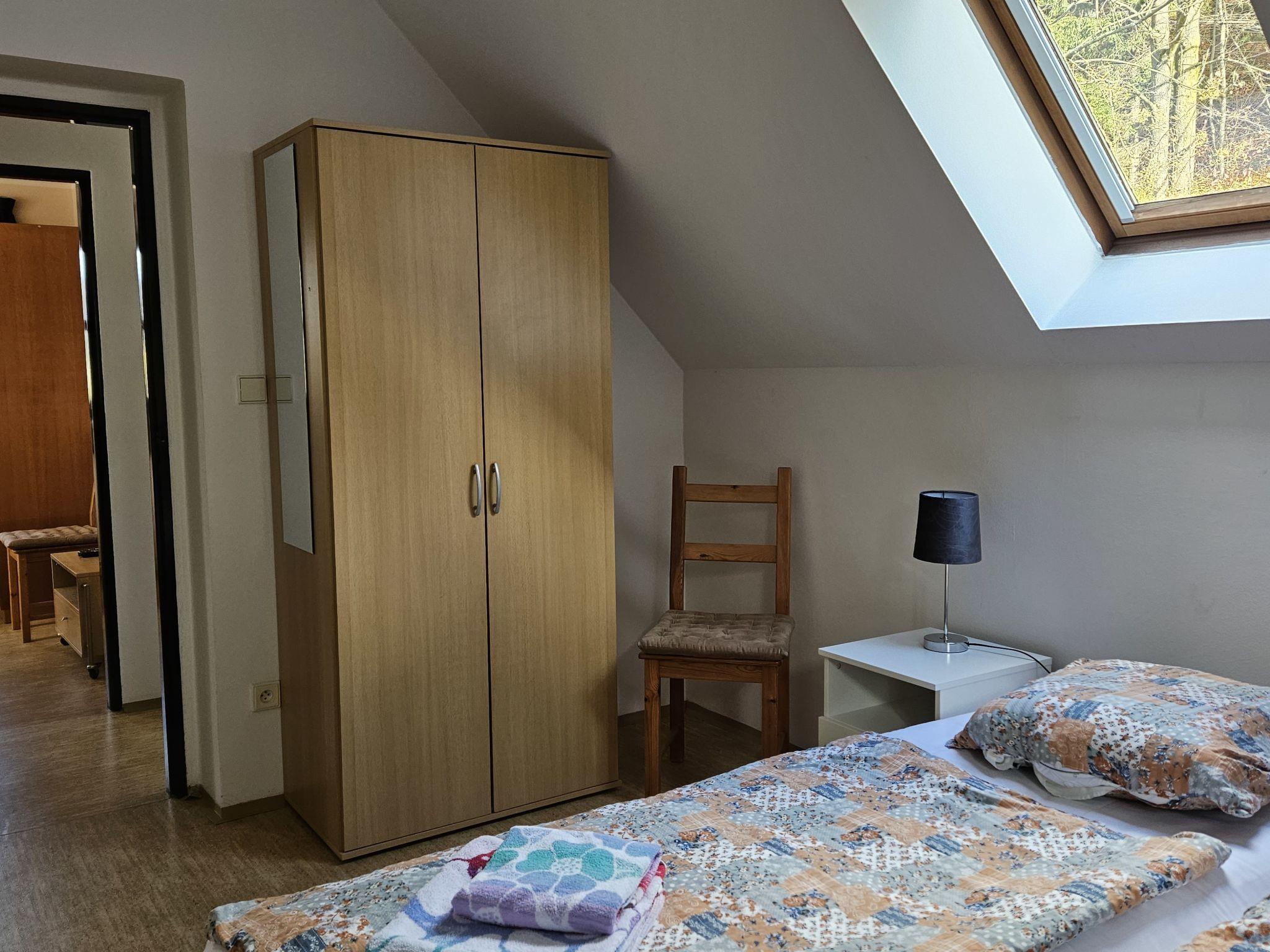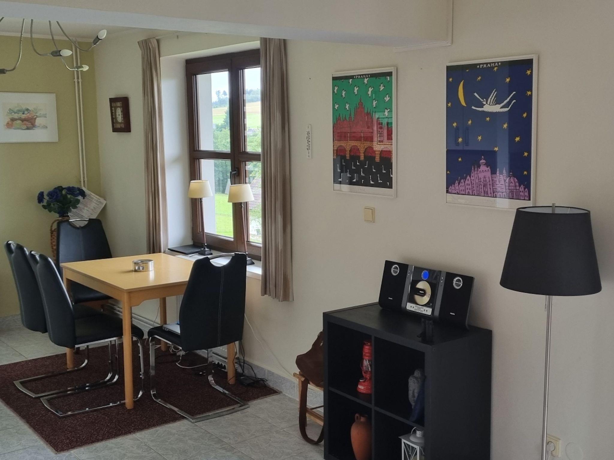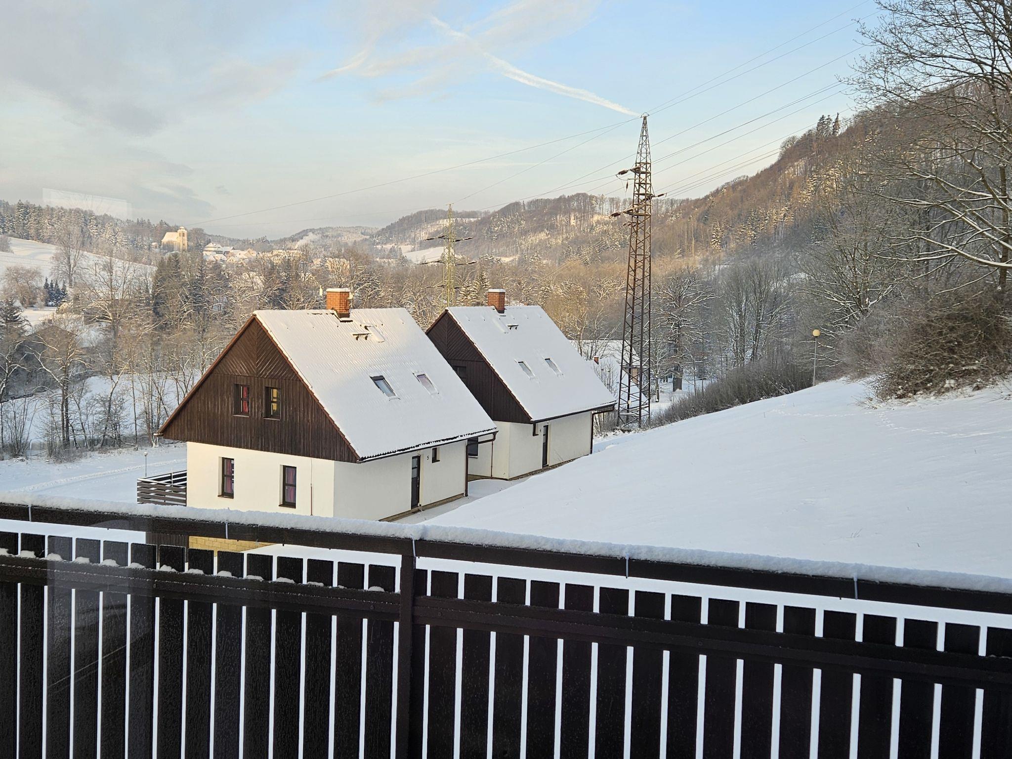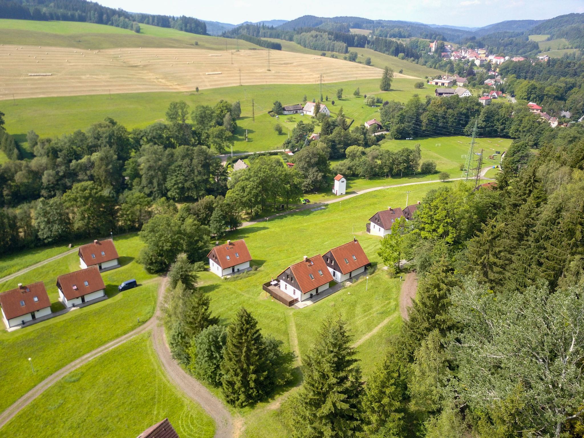 Stárkov 18 km from Náchod: Resort "Stárkov", 450 m a.s.l., detached, built in 1997, renovated in 2015, surrounded by meadows. 22 houses in the resort. On the outskirts, in a sunny, elevated position on a slope, along the wooded area, 24 km from the lake, 10 km from the skiing area, in the countryside. For shared use: property 10 ha, meadow, pond, swimming pool (8 x 4 m, depth 150 cm, seasonal availability: 15.Jun. - 16.Sep.). Table tennis, volleyball, badminton, volleyball court, beach volleyball, patio, barbecue, fireplace, children's playground (slide, swing, sandbox). In the complex: reception, lounge, bistro, massage (extra). Billiard table, playroom, table football, trampoline, kiosk, storage room for bicycles, laundry (extra), bicycle rental. Linen change (suppl. charge extra). Towel change (suppl. charge extra). Room cleaning on request (extra). Bread roll service possible on request. Pre-arrival grocery service. 200 m long steep, narrow motor access. Parking (for 2 cars) at the house. Grocery 1 km, supermarket 8 km, restaurant 1 km, café 10 m, bus stop "Stárkov, mlékárna" 50 m, railway station "Hronov" 8 km, indoor swimming pool 18 km. Golf course (9 hole) 26 km, sailing school 26 km, tennis 500 m, minigolf 10 m, riding stable 10 m, walking paths from the house, cycle lane, ski lift 6 km, ski school 17 km, cross country ski track 100 m, ice rink 8 km, children's playground 10 m. Nearby attractions: Adršpašsko-teplické skály 15 km, Náchod 17 km, Broumovské steny 17 km, Ratiborice a Babiccino údolí 22 km, Broumov 24 km, Relaxpark Pec pod Snežkou 50 km. Well-known ski regions can easily be reached: Radvanice 10 km, Petríkovice 17 km, Mladé Buky 36 km. Well-known lakes can easily be reached: vodní nádrž Rozkoš 26 km. Please note: suitable for families, baby equipment on request (included). Electric cars cannot be charged from the power supply of the rented house.
