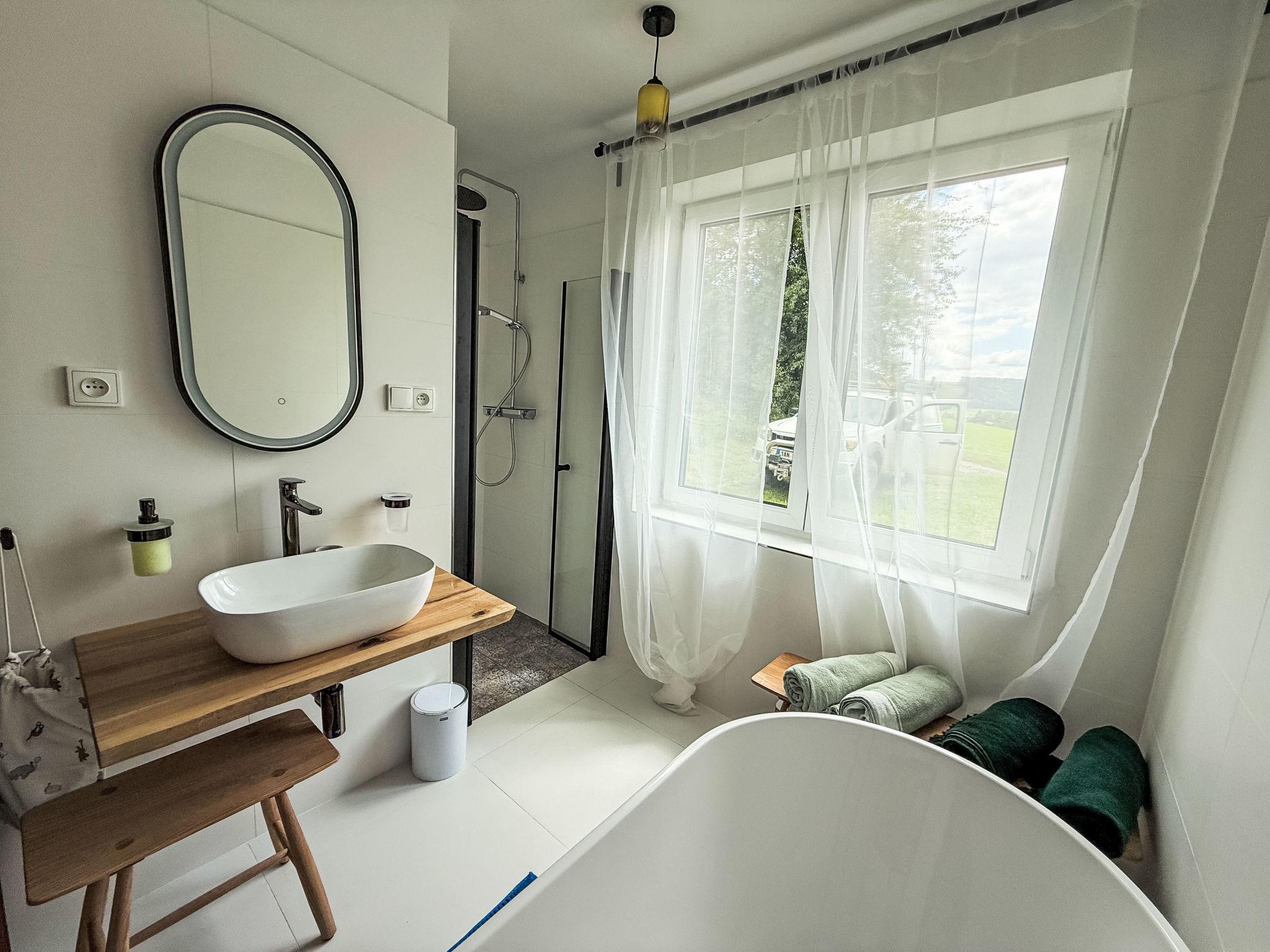 "Green Valley 8", 4-room chalet 100 m2 on 2 levels. Bright, fully renovated in 2024, cosy furnishings: living room with Scandinavian wood stove, satellite TV and flat screen. Exit to the terrace. Open kitchen (4 hot plates, oven, dishwasher, toaster, kettle, microwave, freezer, electric coffee machine) with dining table. Bath/WC, sep. WC. Electric heating. Upper floor: 1 room with 2 beds. 1 room with 2 beds. 1 room with 1 double bed. Sep. WC. Terrace 11 m2. Terrace furniture. Beautiful panoramic view of the valley and the countryside. Facilities: washing machine, iron, children's high chair, baby cot (extra). Internet (WiFi, extra). Please note: suitable for families. Non-smoking house. Maximum 2 pets/ dogs allowed.