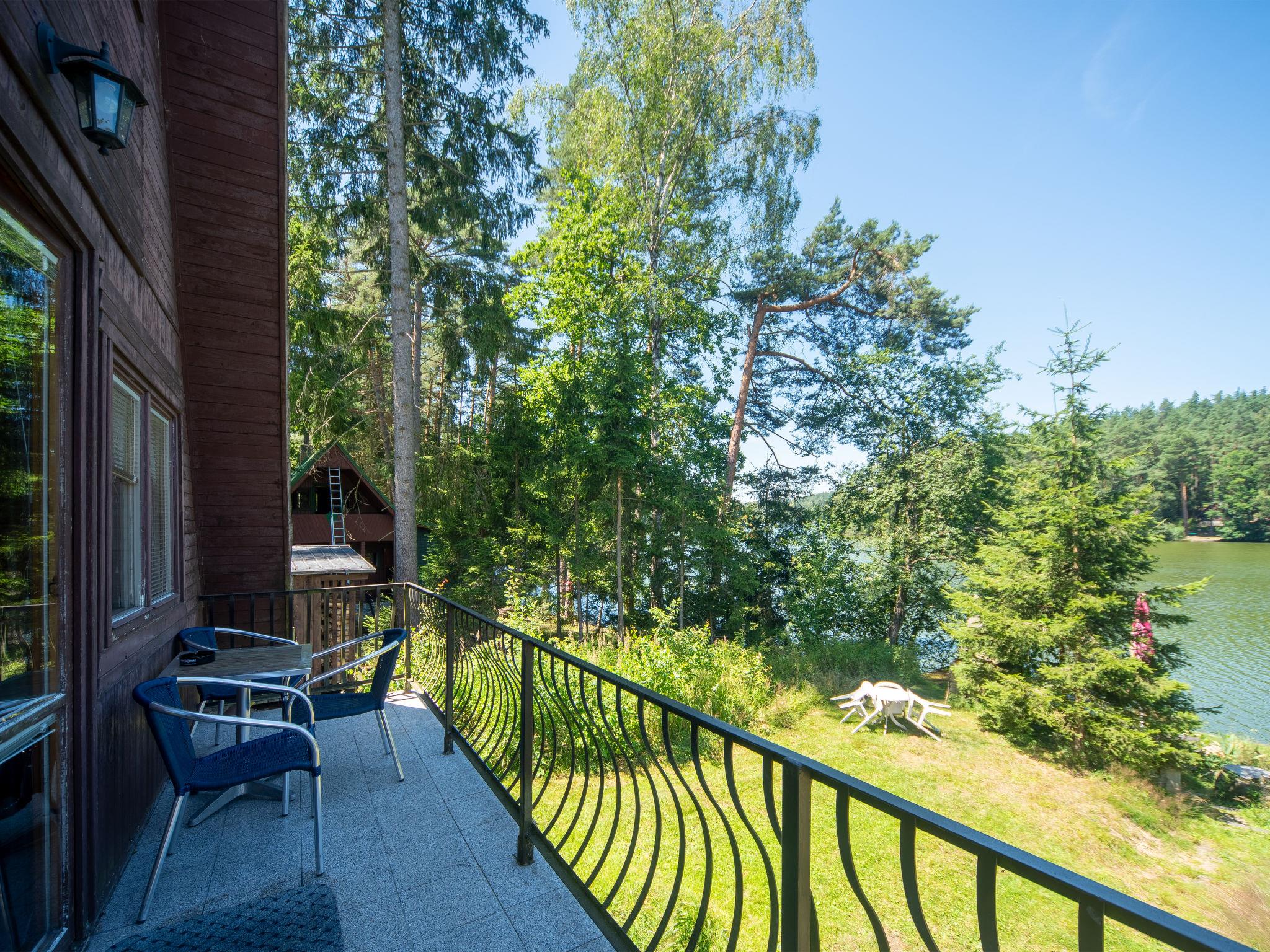 Cottage "Lake & Rest", 500 m a.s.l., 3 storeys, detached, surrounded by trees. 3 km from the centre of Strížovice, 12 km from the centre of Jindrichuv Hradec, 35 km from the centre of Trebon, in a quiet position, 20 m from the lake. Private: natural state property, garden (not fenced) trees. Patio, garden furniture, fireplace, bathing jetty. In the house: bicycle rental. Available: bicycles (6), canoe, boat (extra). Long narrow motor access (350 m via unmade road). Parking (for 2 cars) on the premises. Shop 3 km, supermarket 12 km, restaurant 3 km, bus stop "Strížovice" 3 km, railway station "Strížovice" 500 m, outdoor swimming pool 12 km, indoor swimming pool 12 km, bathing lake "Ratmírovský rybník" 20 m. Walking paths from the house 10 m, cycle lane. Please note: baby equipment (extra).