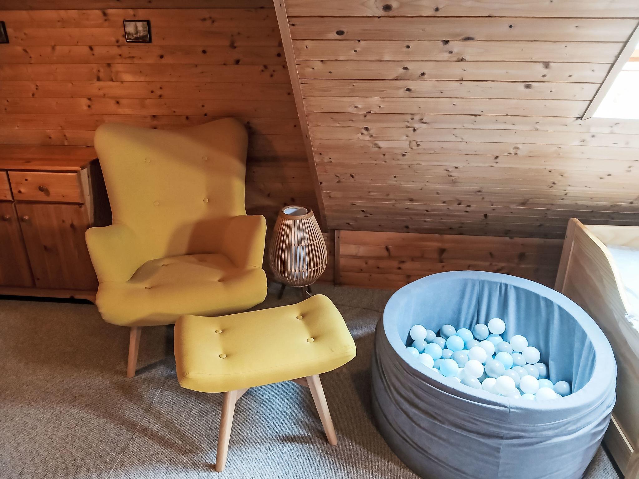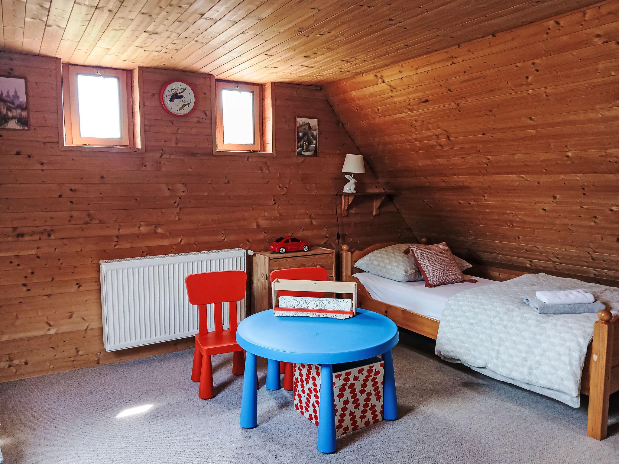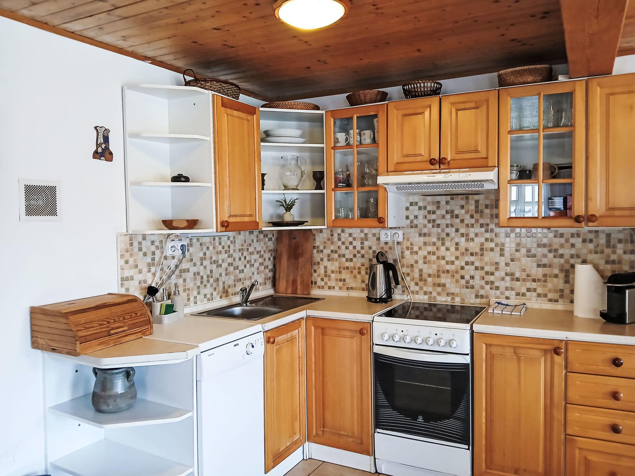 4-room chalet on 2 levels. Spacious and bright, fully renovated, very comfortable and beautiful furnishings: entrance hall with open-hearth fireplace and TV. Living/dining room with dining nook. Kitchenette (oven, dishwasher, 4 ceramic glass hob hotplates, kettle, microwave, freezer, electric coffee machine). Shower, sep. WC, Sauna. Electric heating. Upper floor: 1 room with 1 double bed. 1 room with 1 double bed. 1 room with 3 beds and 1 pull-out bed. Sep. WC. Facilities: washing machine, baby cot. Internet (WiFi, free). Please note: non-smoking house. Maximum 1 small pet/ dog allowed.