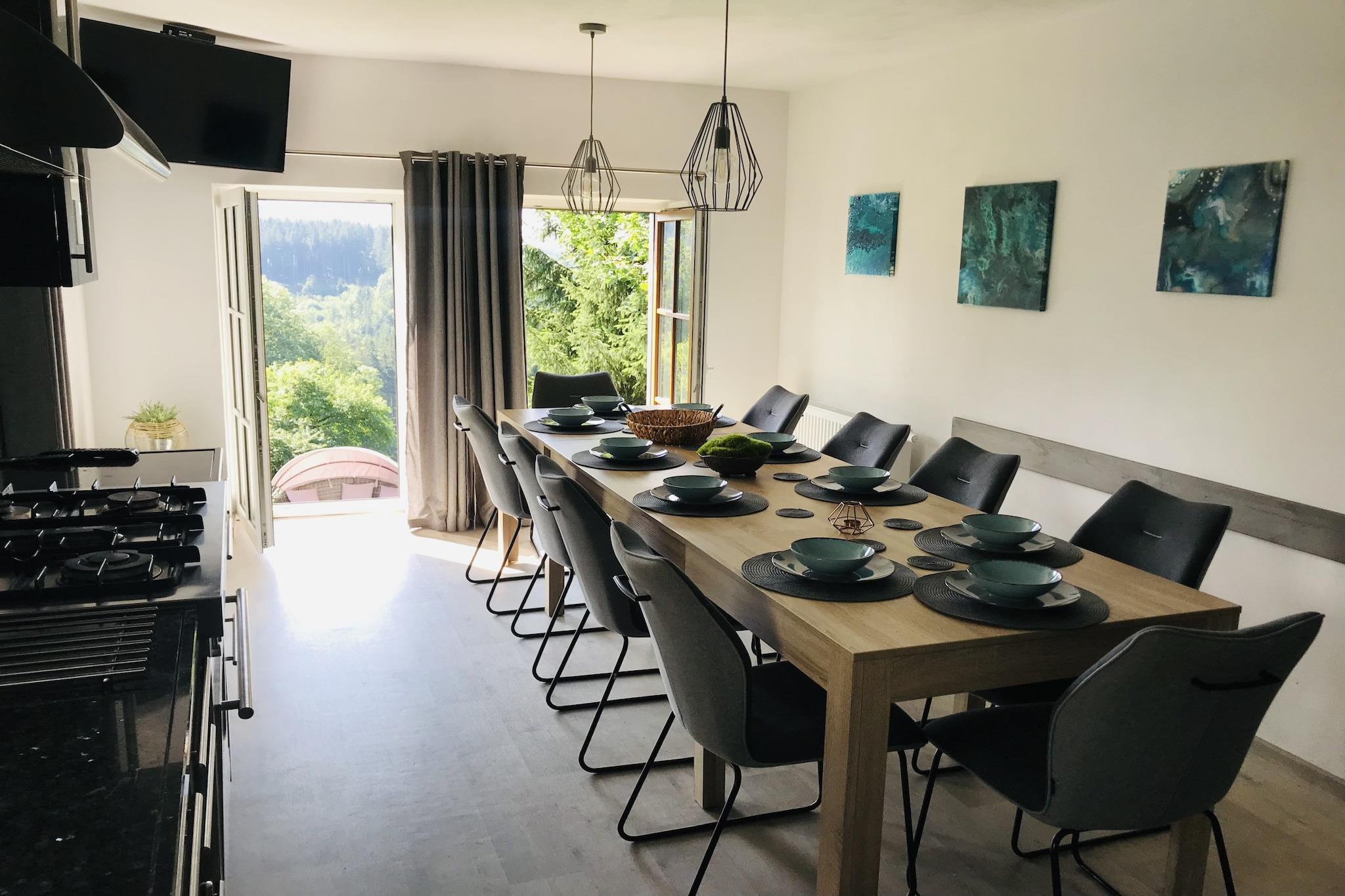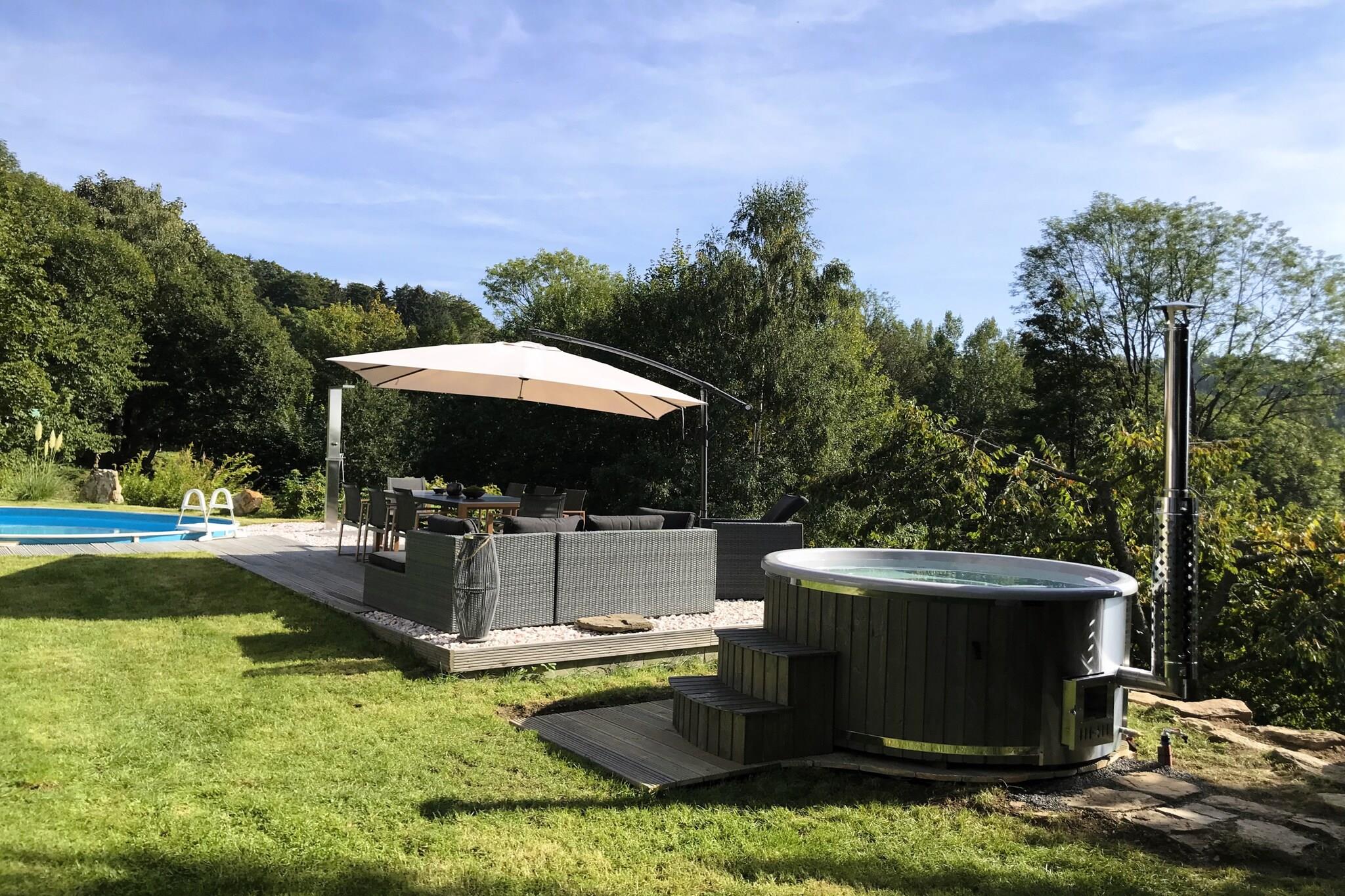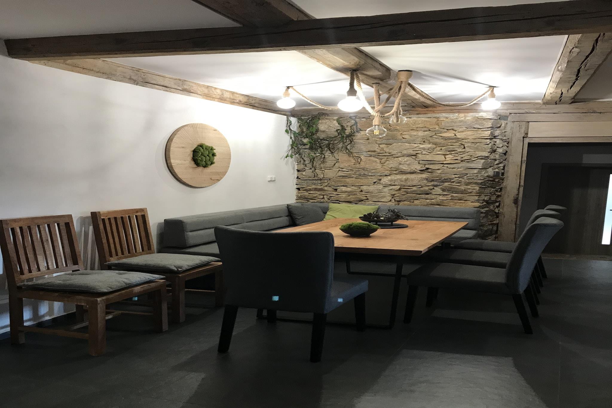 Denne fortryllende villa i Tanvald er det perfekte tilflugtssted for store familier eller grupper, der tilbyder et luksuriøst og komfortabelt rum for op til 18 gæster. Med 6 rummelige soveværelser og 3 moderne badeværelser sikrer denne villa, at alle har masser af plads til at slappe af og slappe af. Dens unikke atmosfære kombinerer komfort og stil med overdådige faciliteter såsom sauna, jacuzzi og swimmingpool, hvilket gør det til et fantastisk valg til både afslapning og sjov. Det fuldt udstyrede køkken er perfekt til at tilberede måltider for hele gruppen, med køleskab, fryser, ovn, mikroovn og alle nødvendige redskaber. Villaen har også en opvaskemaskine, som gør rengøringen til en leg. Efter en dag med aktiviteter inviterer stuen dig til at synke ned i komfortable sofaer, nyde dine yndlings tv-serier, læse en bog eller deltage i nogle venlige brætspil. Denne villa ligger i Tanvald i de fantastiske Jizera-bjerge, et område fyldt med aktiviteter året rundt. Om vinteren er det en ideel base for skiløb og snowboarding, med nærliggende skisportssteder med fremragende pister. I de varmere måneder tilbyder Jizera Mountains Nature Park vandre- og cykelstier, perfekt til at udforske regionens naturlige skønhed. Ikke langt fra villaen, finder du sneskulpturhaven, glasværksmuseet i Harrachov og naturskønne historiske togture på Jizera-jernbanen. De nærliggende Prachov-klipper og byerne Liberec og Harrachov er også et besøg værd, der tilbyder en fantastisk blanding af udendørs eventyr og kulturelle attraktioner.