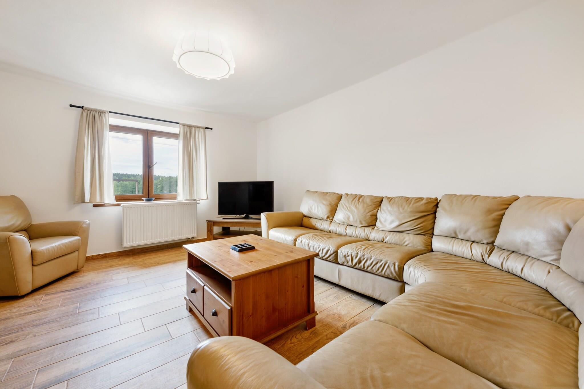 Denne dejlige villa tilbyder tre rummelige soveværelser, der komfortabelt kan rumme op til ti gæster, hvilket gør den ideel til familier eller større grupper. De velindrettede opholdsrum inkluderer en terrasse og en smuk have, perfekt til afslapning og udendørs spisning. Ejendommen er beliggende i et børnevenligt kvarter og er designet til at sikre et trygt og behageligt miljø for familier. Faciliteter som et strygejern, hårtørrer og Wi-Fi øger bekvemmeligheden ved opholdet, mens udendørs parkering for op til tre køretøjer giver nem adgang for gæster. Beliggende i Varvažovs fredfyldte landskab tilbyder denne villa nem adgang til en række lokale attraktioner, herunder maleriske landskaber og udendørs aktiviteter. De fredelige omgivelser er perfekte for dem, der søger et roligt tilflugtssted, men det er også tæt på pulserende bycentre for shopping og restauranter. Offentlige transportmuligheder, herunder busruter, er tilgængelige i nærheden, hvilket gør det bekvemt for gæster, der rejser til og fra området Det familievenlige miljø sikrer en indbydende atmosfære for besøgende i alle aldre. Det uafhængige køkken er fuldt udstyret med moderne apparater, herunder køleskab, mikroovn, ovn og opvaskemaskine, så gæsterne nemt kan tilberede måltider. Yderligere bekvemmeligheder som en vaskemaskine og rigeligt køkkenredskaber gør længere ophold behageligt. Villaen er yderligere forbedret af faciliteter såsom centralvarme, en ventilator til varmere dage og et fjernsyn med satellit- og kabeladgang, hvilket sikrer, at gæsterne nyder både komfort og underholdning under deres besøg.