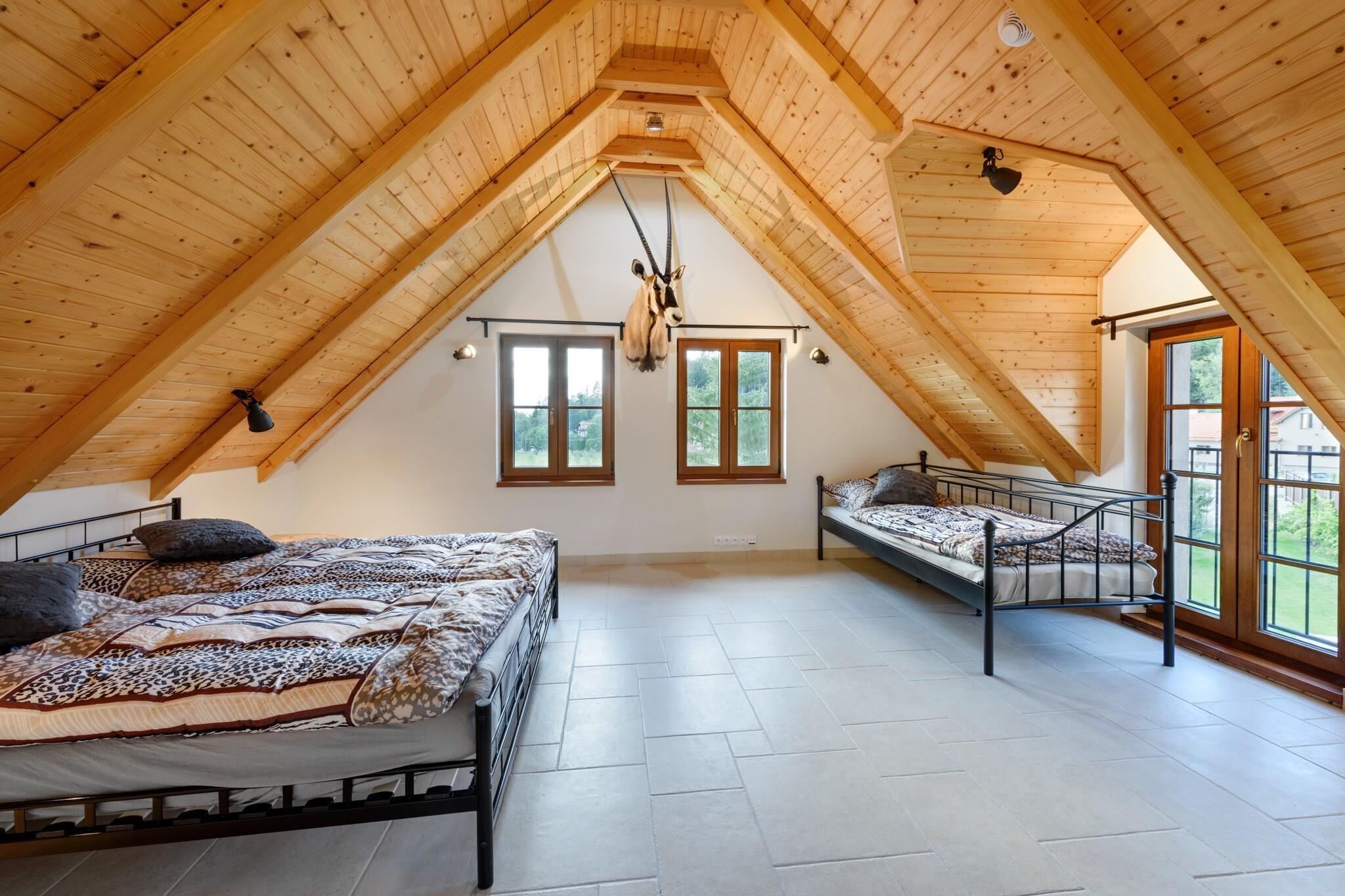 Denne luksuriøse ferievilla i Varvažov tilbyder den perfekte blanding af komfort og elegance til familier eller store grupper på op til 10 personer. Villaen har et rummeligt opholdsareal på 150 m², fire smukt møblerede soveværelser og tre moderne badeværelser. Det fuldt udstyrede køkken, inklusive køleskab, fryser, ovn, mikroovn, opvaskemaskine og kaffemaskine, sikrer, at måltidstilberedningen er ubesværet. Gæsterne kan slappe af i den hyggelige stue med tv eller nyde en spilleaften. Derudover tilføjer vaskemaskinen bekvemmelighed til længere ophold, hvilket gør denne villa til et hjem væk fra hjemmet. Beliggende på en stor grund i et landligt, børnevenligt miljø, byder denne villa på masser af plads til udendørs aktiviteter. Børn kan nyde at løbe rundt, mens de voksne tilbereder måltider på terrassens grill, alt imens de nyder en forfriskende drink og de fredelige omgivelser. Regionen Sydbøhmen byder på masser af muligheder for aktiviteter, fra svømning i nærliggende vandland og golf til at udforske områdets naturlige skønhed. Om sommeren kan du overveje en afslappende bådtur på Vltava-floden eller besøge det fantastiske Zamek Orlík-slot. Om vinteren er regionen en populær destination for vintersportsentusiaster. Villaen tilbyder de ideelle rammer for at skabe uforglemmelige ferieminder i Tjekkiet. Uanset om du leder efter eventyr, afslapning eller familiesjov, giver dette luksuriøse hjem og dets maleriske omgivelser den perfekte baggrund. Bemærk venligst, at lejeprisen er eksklusiv el-omkostninger, hvilket sikrer, at dit ophold er både behageligt og overkommeligt.