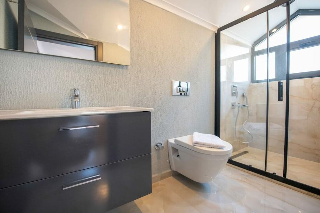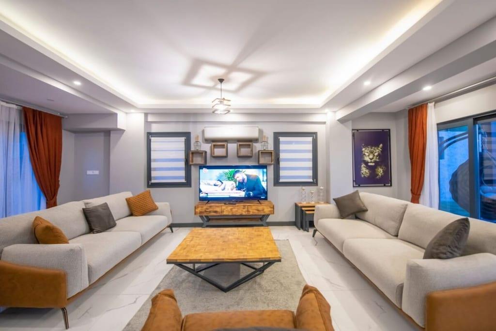 Villa Te2 ligger i det rolige Ovacik-distrikt i Fethiye og er en luksuriøs ferievilla med 4 soveværelser, der kan rumme op til 8 personer. Denne villa er ideel til store familier eller vennegrupper og kombinerer komfort, elegance og smukke naturlige omgivelser. Villaen er designet med et middelhavspræg og har en privat swimmingpool, en børnepool, en hængegynge, et hyggeligt siddeområde og et ekstra tv-hjørne – perfekt til en afslappende ferie. Væk fra byens travlhed er dette det ideelle sted at genoplade batterierne midt i naturen og under åben himmel. Denne villa ligger kun 5 km fra den verdensberømte Ölüdeniz-strand og i gåafstand fra Hisarönüs livlige centrum og er en perfekt base for hvile og afslapning. Uanset om du leder efter en romantisk ferie eller en aktiv ferie – er det hele muligt her. Tag på bådture, udforsk skjulte bugter, svøm i Sommerfugledalen eller nyd paragliding og dykkereventyr. Børnepoolens dimensioner: Bredde – 2,00 m | Længde – 2,00 m | Dybde – 0,40 m Indtjekning: 16:00 — Udtjekning: 10:00