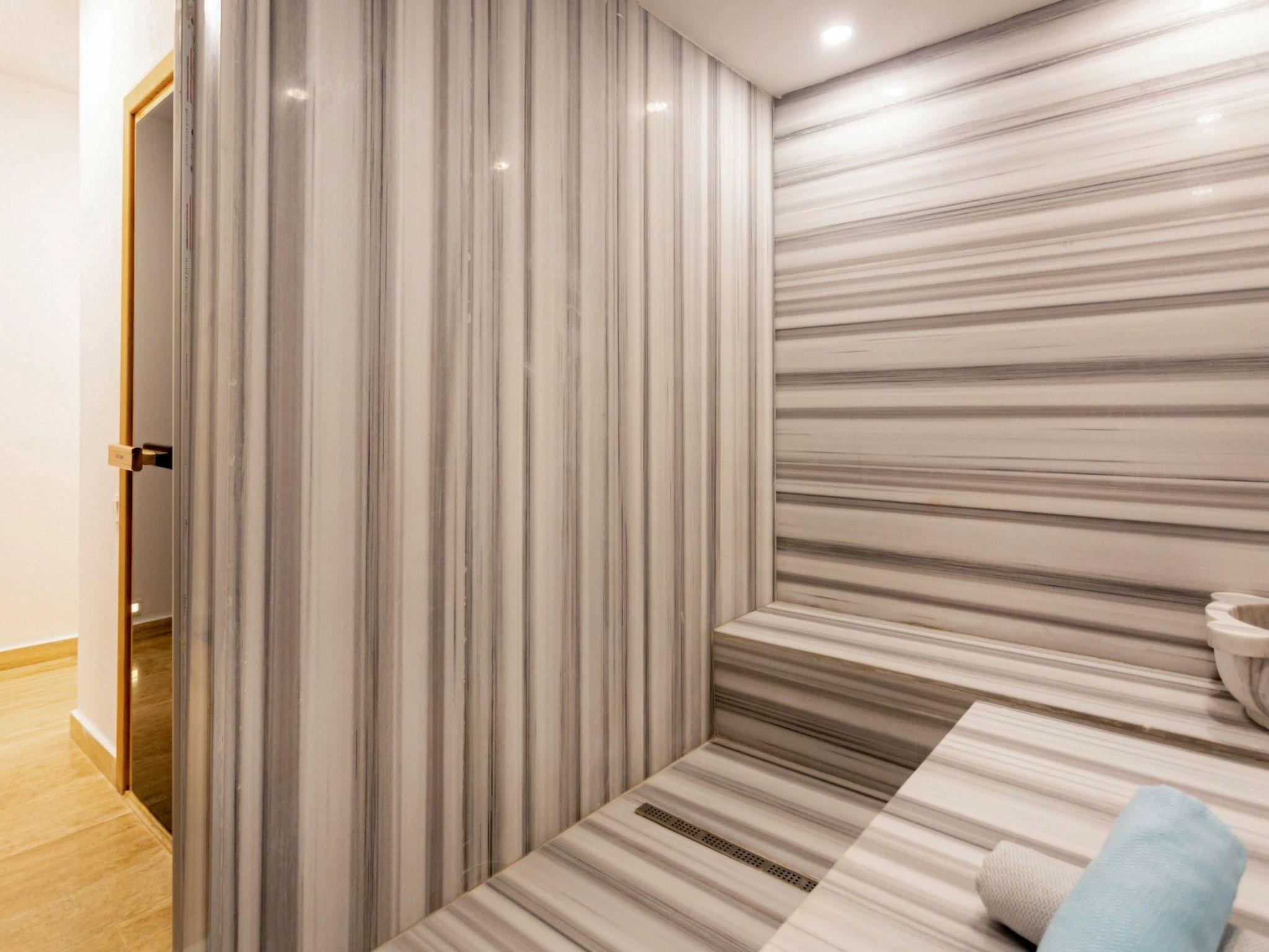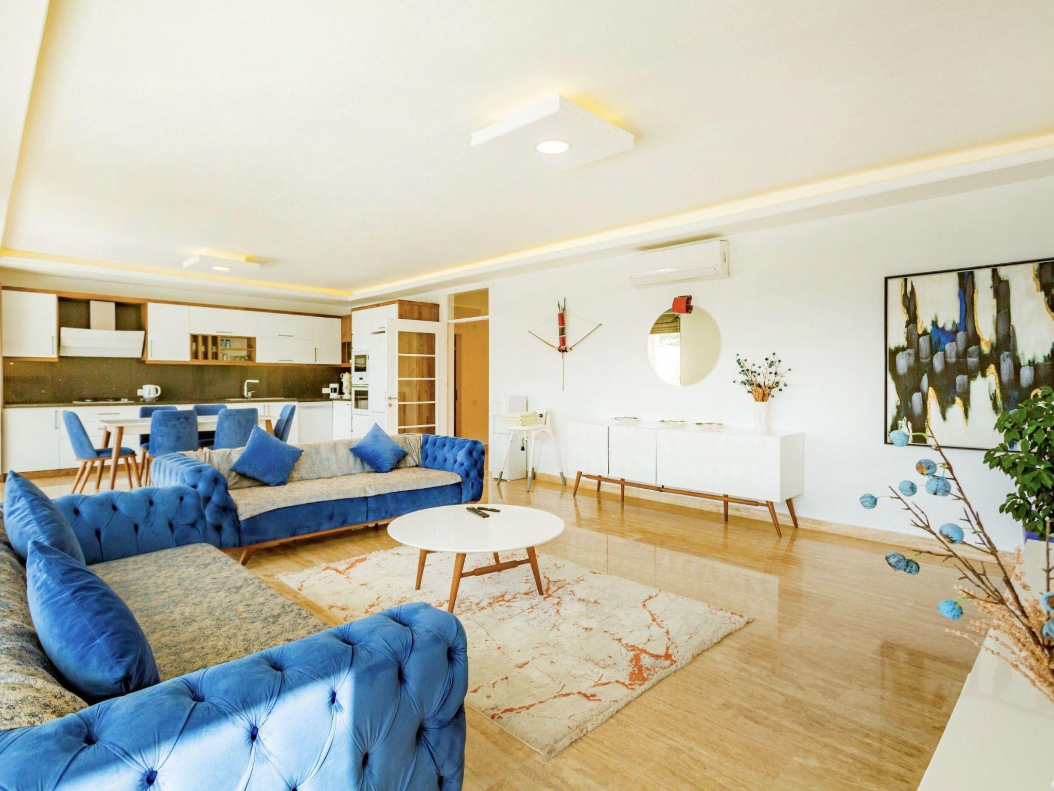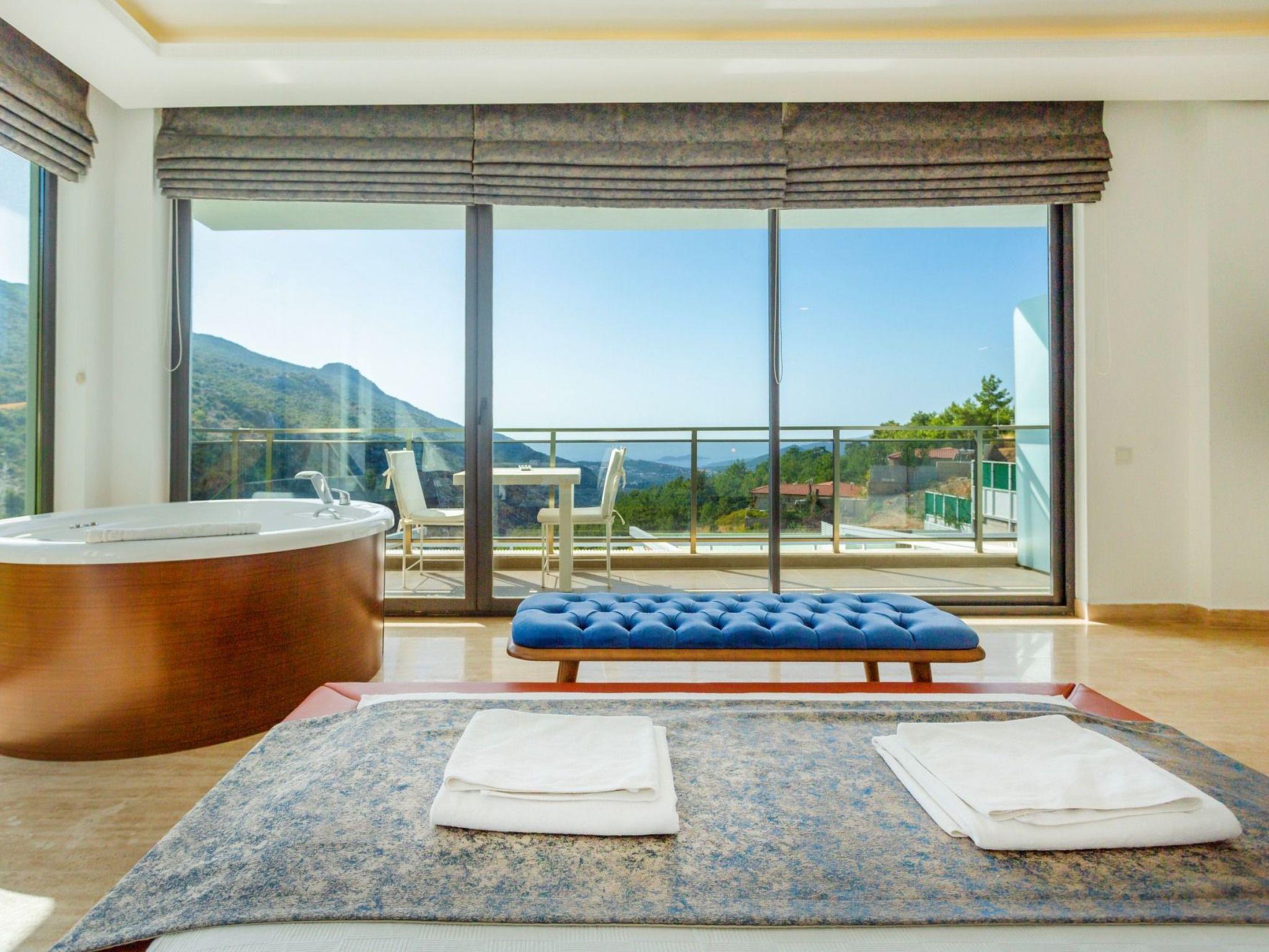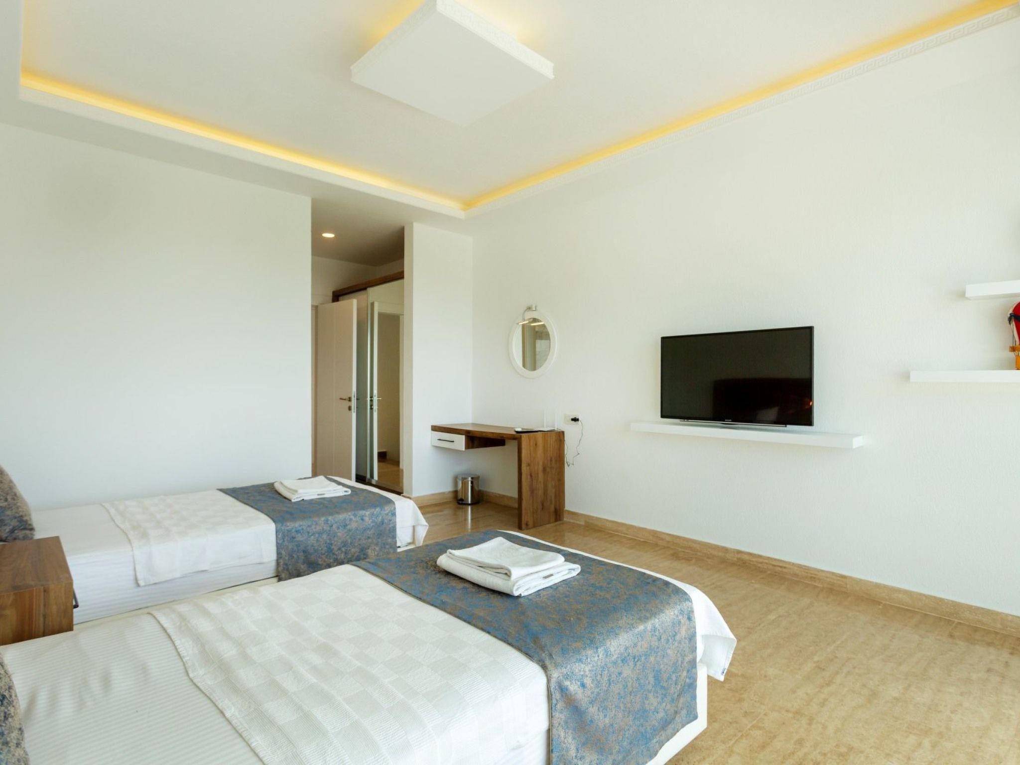 Bed rooms1. Bed room:double bed for suit family, air conditioner, wardrobe , balcony, led tv,jacuzzi2. Bed room: Teen bed room ,two single beds, air conditioner , bath, wardrob, , balcony, ledtv,jacuzzi are availableBath towel, hand towel and beach towel are available in each villa. Towels are prepared in advanceand included in the rooms.Iron, ironing board, hair dryer, teapot, barbeque/ charcoal burner are available in each villa.HallHall with sea and nature landscape , sitting group, six-person dinner table , satellite receiver, andtv(led) and air conditioner are available.KitchenAmerican Kitchen designed as large, spacious ,and modern, refrigerator, dish washer, washingmachine,stove, quartet oven (embedded) , microwave oven, electric water heater (kettle), pan,saucepan etc. kitchen equipments, and six-person dinnerware are available.Pool and Garden Large sunbathing area with private swimming pool and garden are available in each villa. 6 sunbedsand umbrellas, six person dining table,sitting group, barbeque are available. Pools are collapsibleheated.Pool SizeWidth: 3,5 mt/ Length : 10 mt / Depth: 1,40mtCleaning and Care Villa is delivered to you , and cleaned for two times a week, if you request an extra cleaning ;cleaning (including new bed sheet, pillow case ) are performed by our attendants as chargeable.