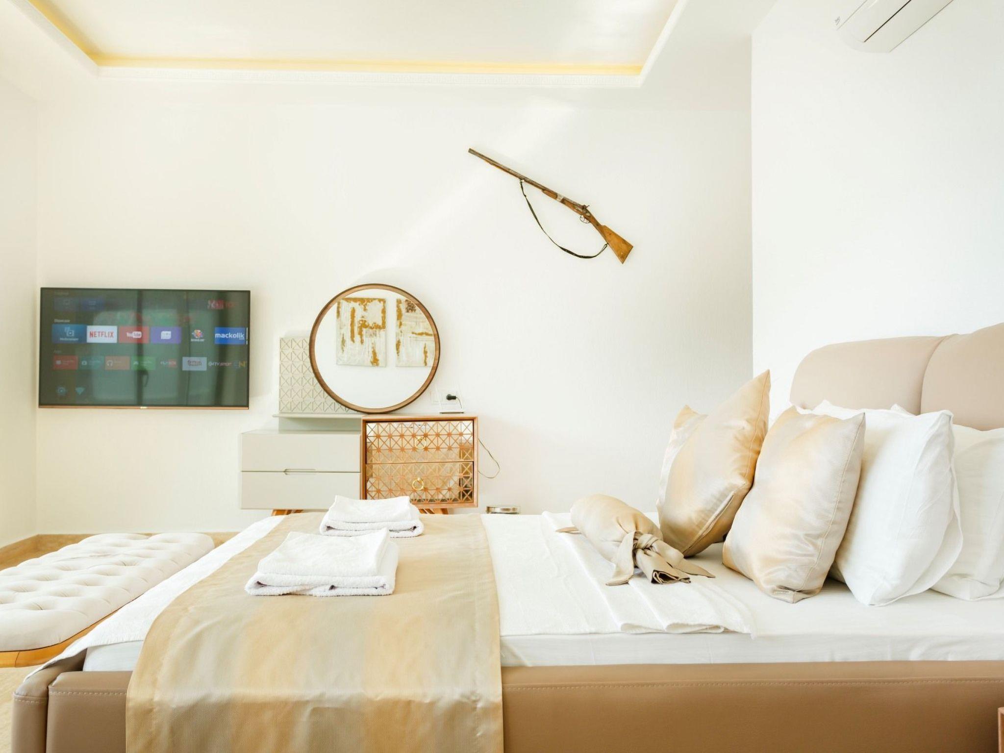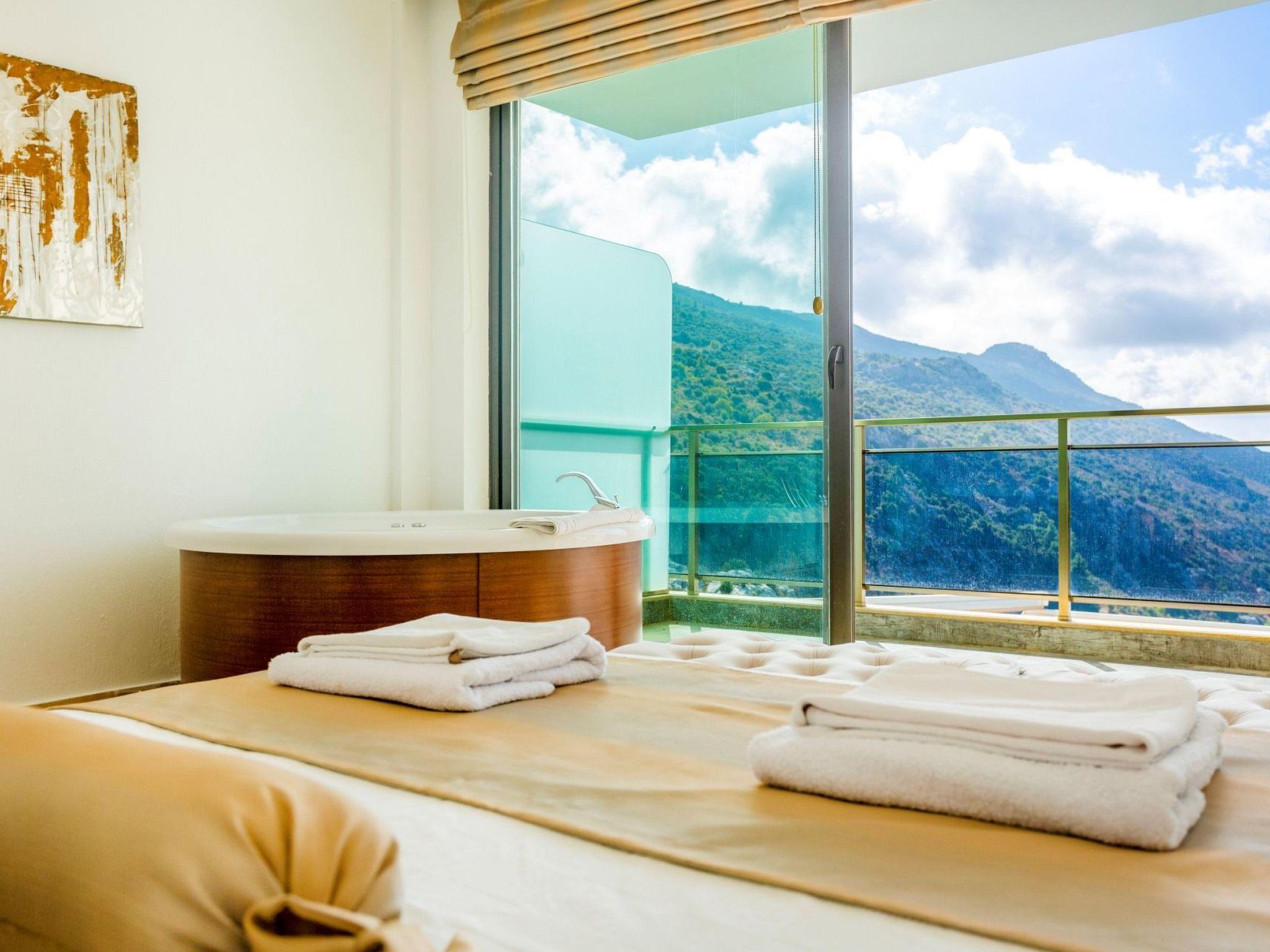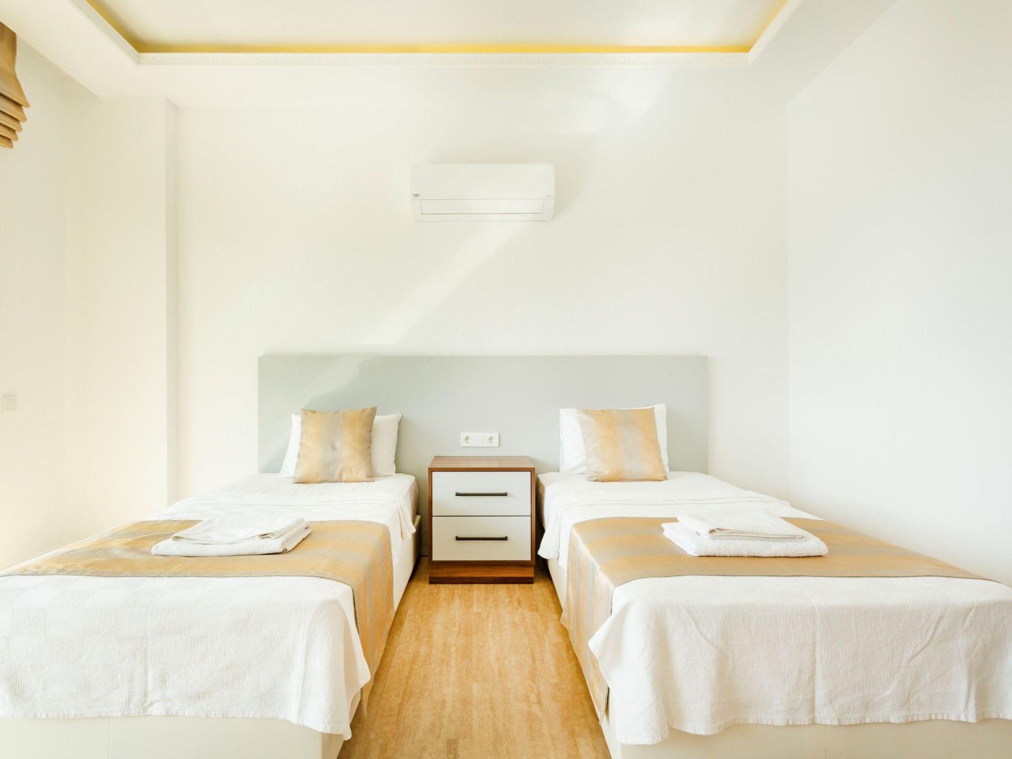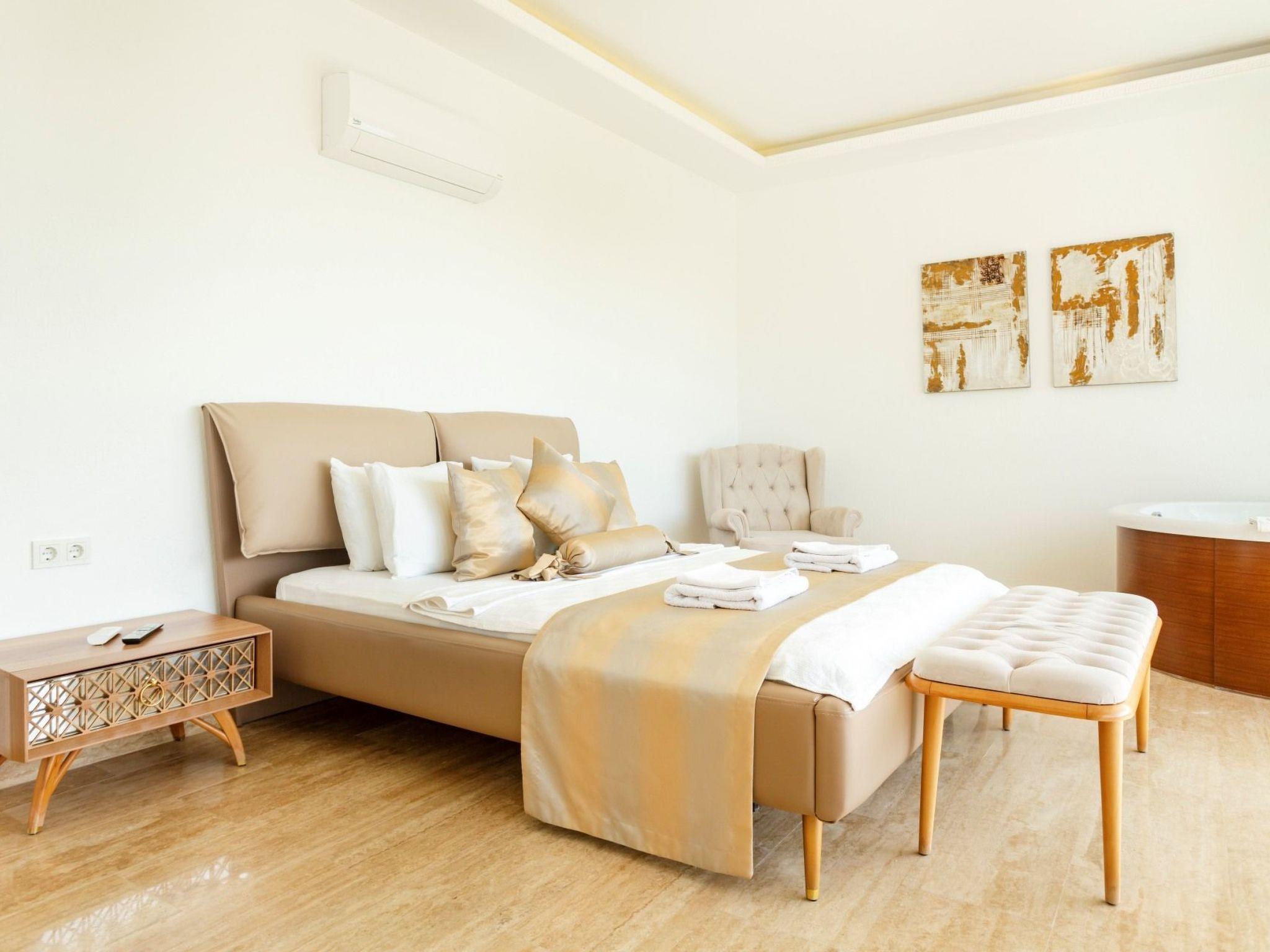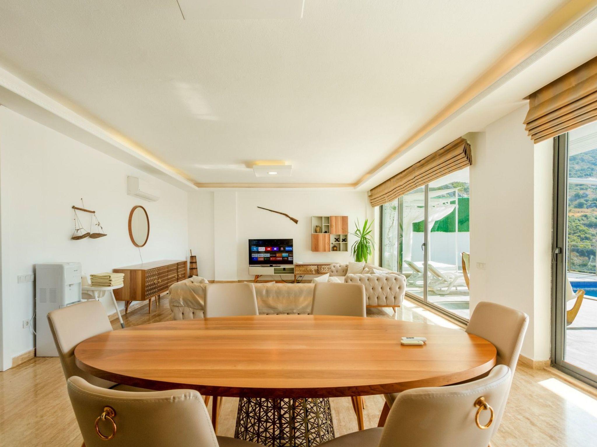 Bath towel, hand towel and beach towel are available in each villa. Towels are prepared in advance and included in the rooms.Iron, ironing board, hair dryer, teapot, barbeque/ charcoal burner are available in each villa.HallHall with sea and nature landscape , sitting group, six-person dinner table , satellite receiver, and tv(led) and air conditioner are available. KitchenAmerican Kitchen designed as large, spacious ,and modern, refrigerator, dish washer, washing machine,stove, quartet oven (embedded) , microwave oven, electric water heater (kettle), pan, saucepan etc. kitchen equipments, and six-person dinnerware are available. Cleaning and Care Villa is delivered to you , and cleaned for two times a week, if you request an extra cleaning ; cleaning (including new bed sheet, pillow case ) are performed by our attendants as chargeable.DepositA deposit in 200 pounds is received in the entrance of the villa. If no problems such as any damage, scrapped and lost stuff is determined in control before guest leaving the villa ,deposite is returned to guest. Entrance time to our villas is 03.00 PM for the first day. The latest leaving time is 12:00 AM.Free Applications *Electricity, water and bottled gas expenses .* Internet and digital platform are free.*Clean bed sheet, and pillow case are kept available as much as person capacity of villa* Daily Pool and garden cares are performed by attendants in early hours