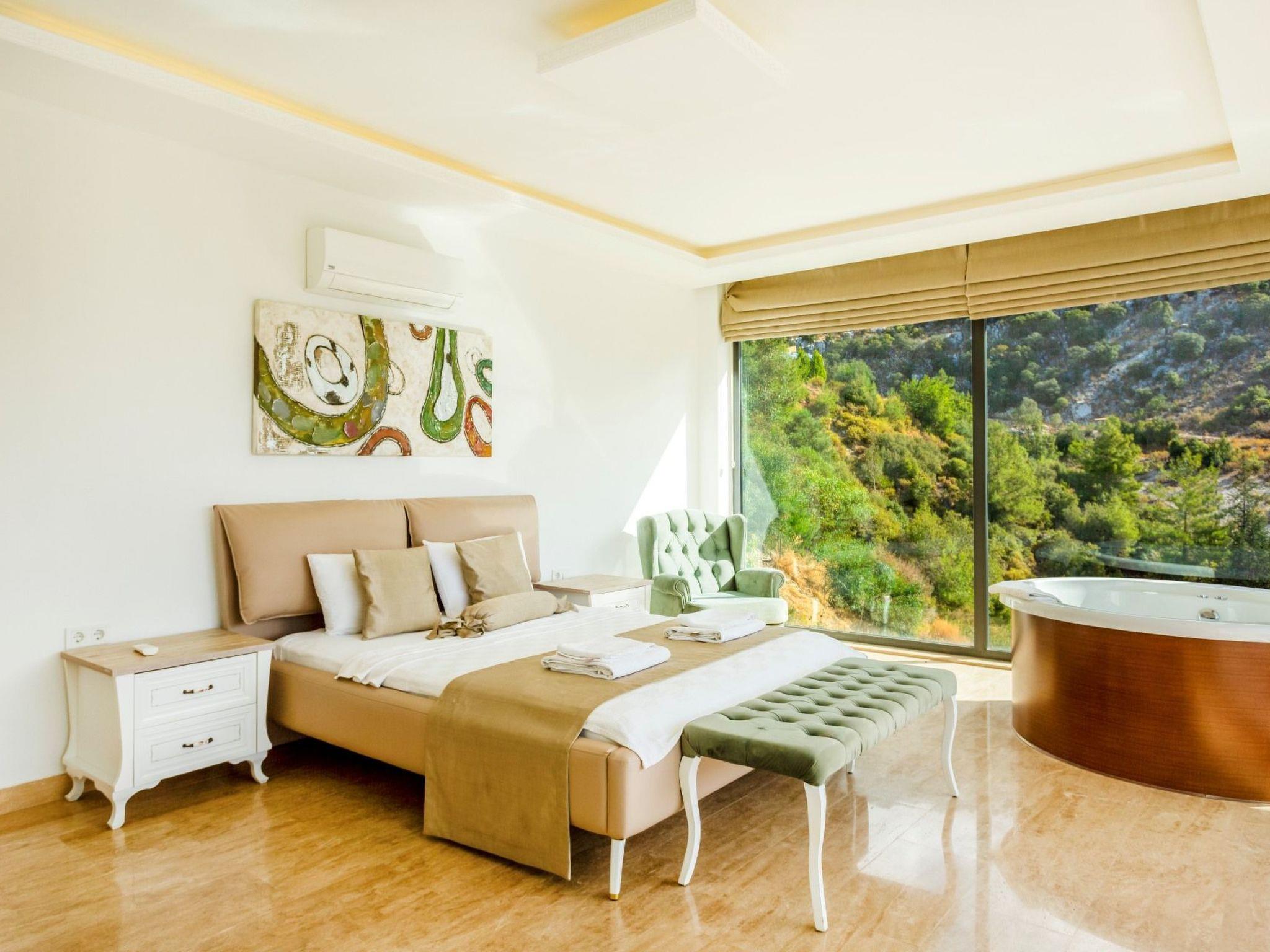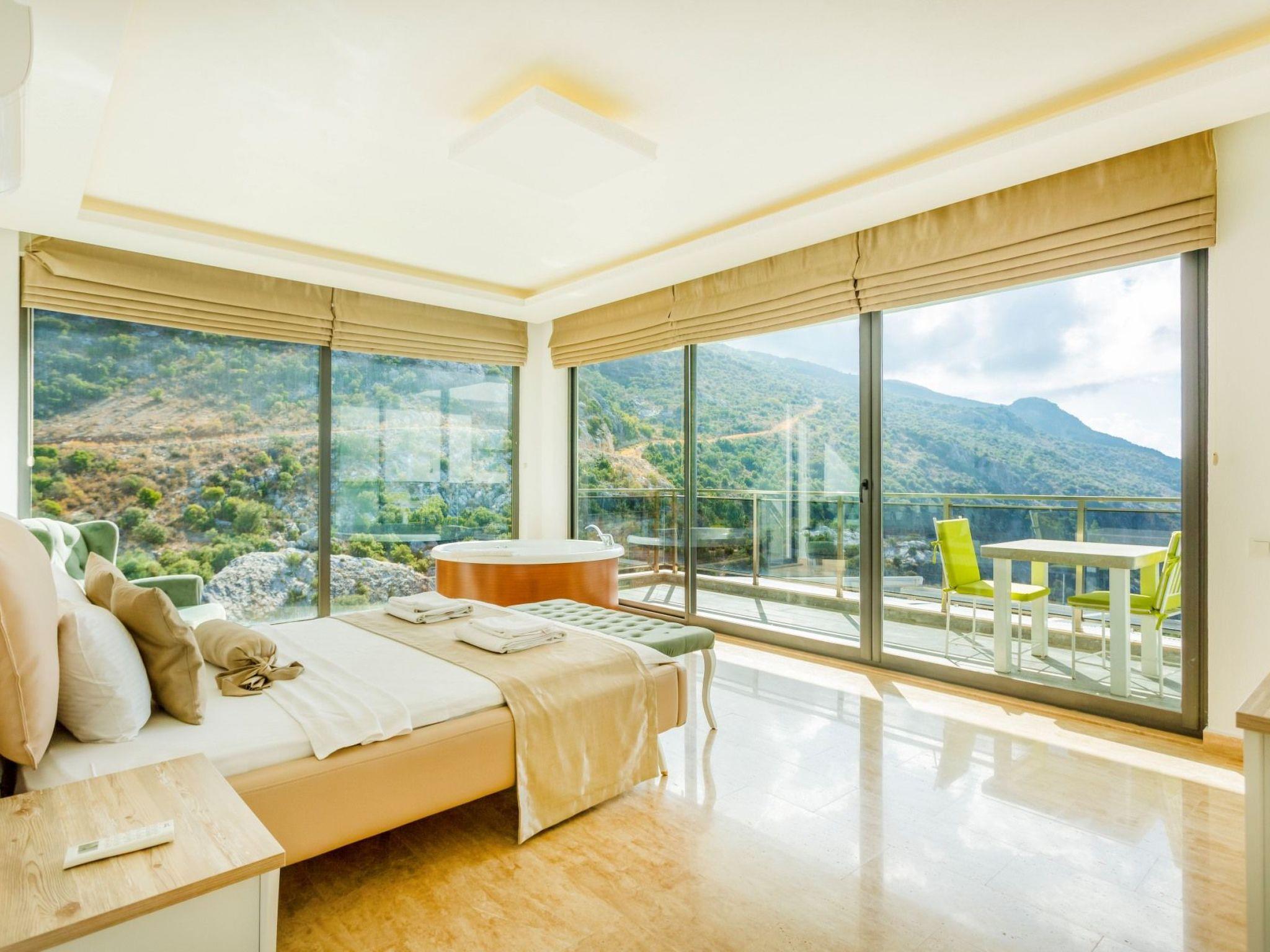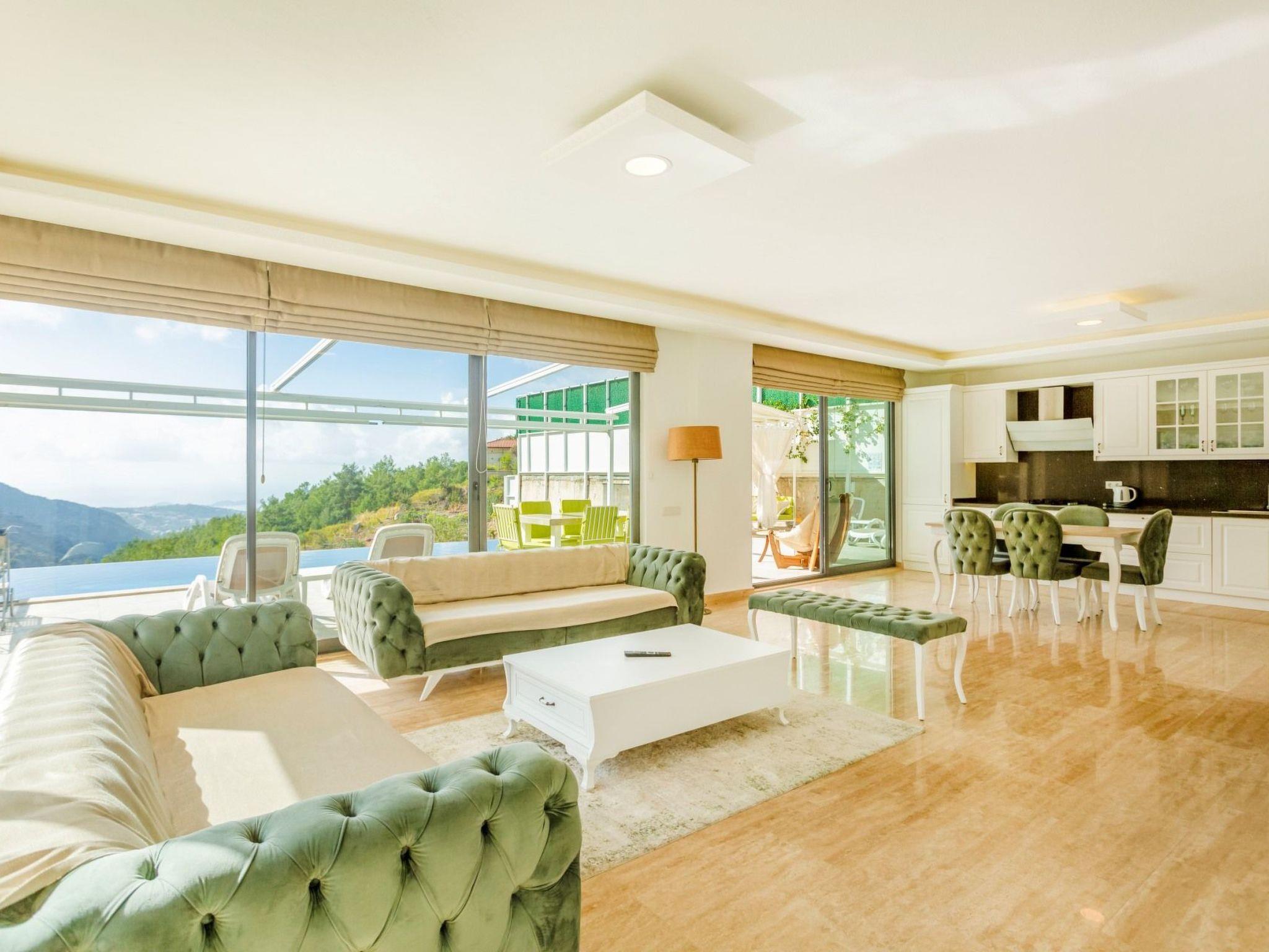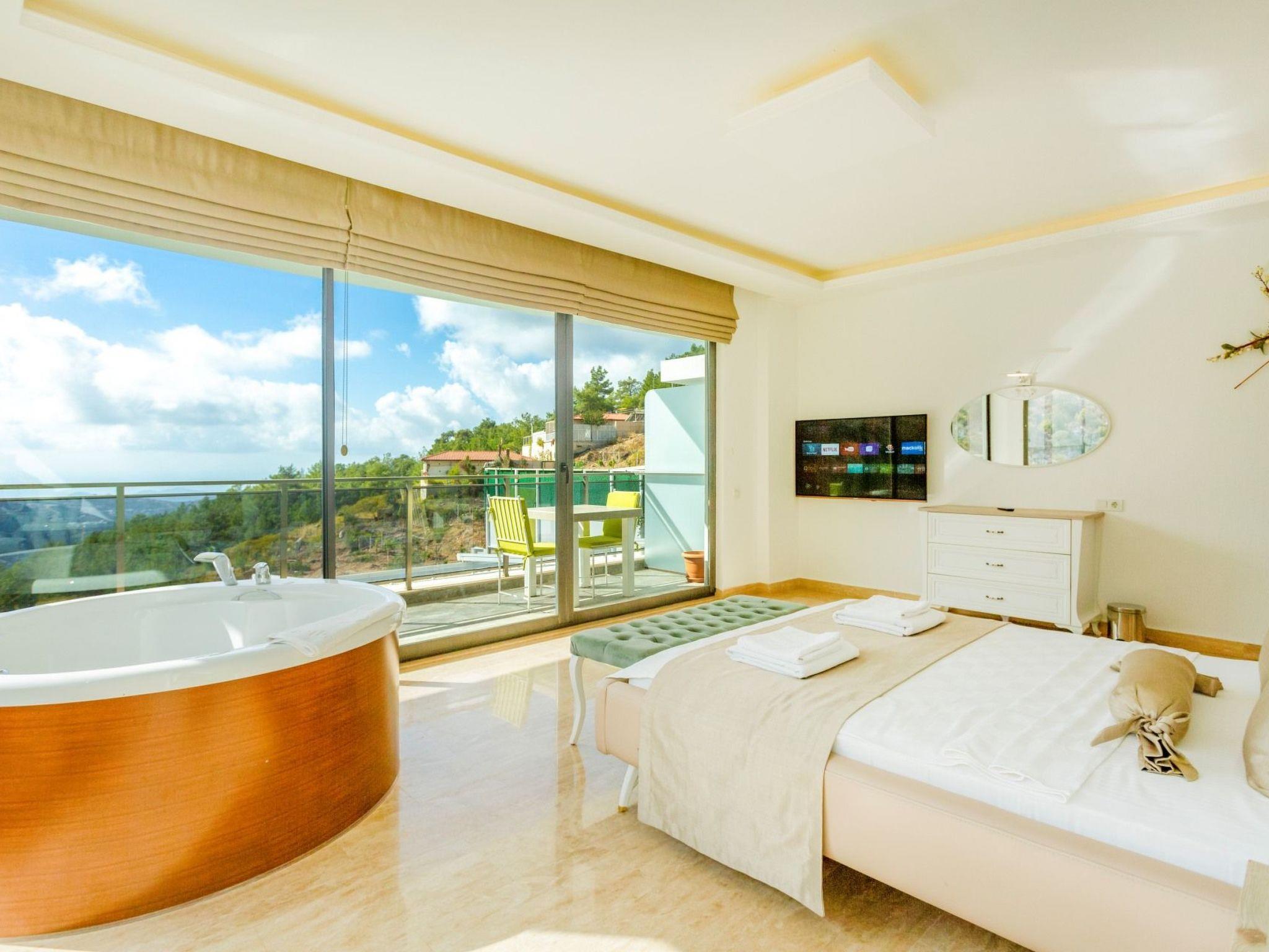 Bed rooms1. Bed room:double bed for suit family, air conditioner, wardrobe , balcony, led tv,jacuzzi2. Bed room: Teen bed room ,two single beds, air conditioner , bath, wardrob, , balcony, ledtv,jacuzzi are availableBath towel, hand towel and beach towel are available in each villa. Towels are prepared in advanceand included in the rooms.Iron, ironing board, hair dryer, teapot, barbeque/ charcoal burner are available in each villa.HallHall with sea and nature landscape , sitting group, six-person dinner table , satellite receiver, andtv(led) and air conditioner are available. KitchenAmerican Kitchen designed as large, spacious ,and modern, refrigerator, dish washer, washingmachine,stove, quartet oven (embedded) , microwave oven, electric water heater (kettle), pan,saucepan etc. kitchen equipments, and six-person dinnerware are available.Pool and Garden Large sunbathing area with private swimming pool and garden are available in each villa. 6 sunbedsand umbrellas, six person dining table,sitting group, barbeque are available. Pools are collapsibleheated.Pool Size Width: 3,5 mt/ Length : 10 mt / Depth: 1,40mtCleaning and Care Villa is delivered to you , and cleaned for two times a week, if you request an extra cleaning ;cleaning (including new bed sheet, pillow case ) are performed by our attendants as chargeable.