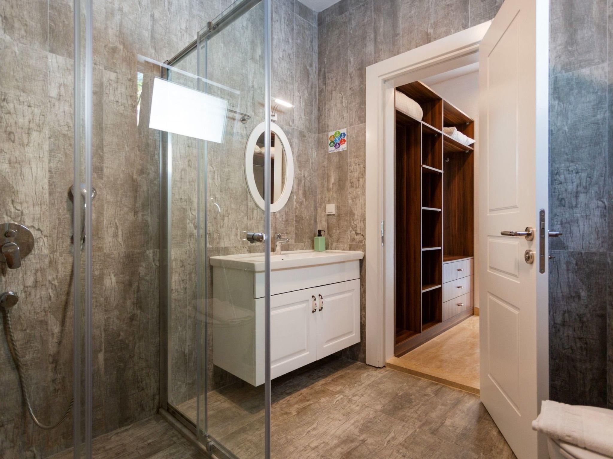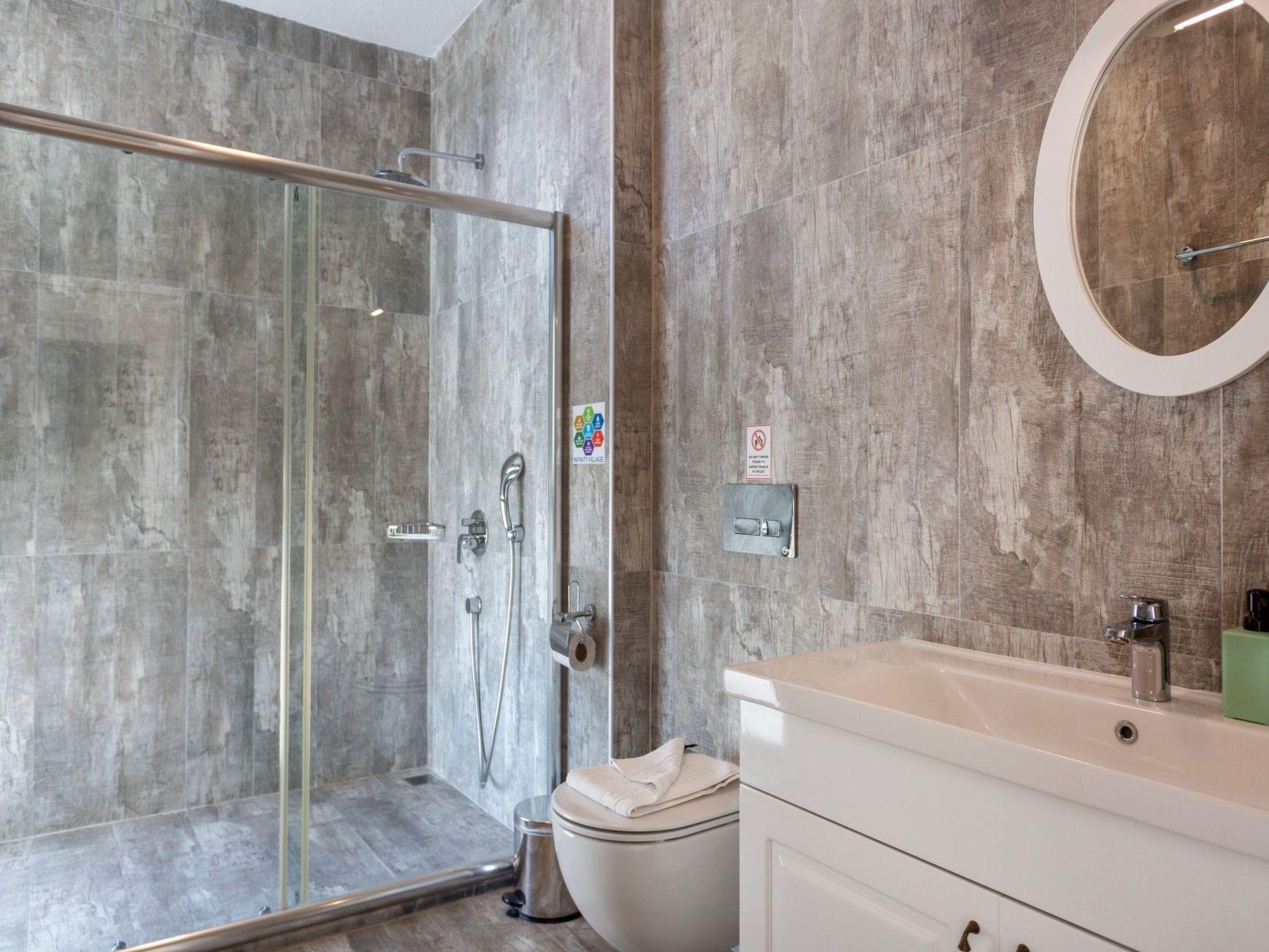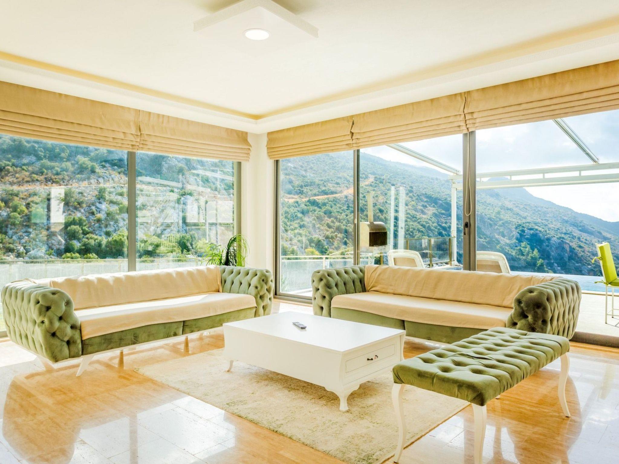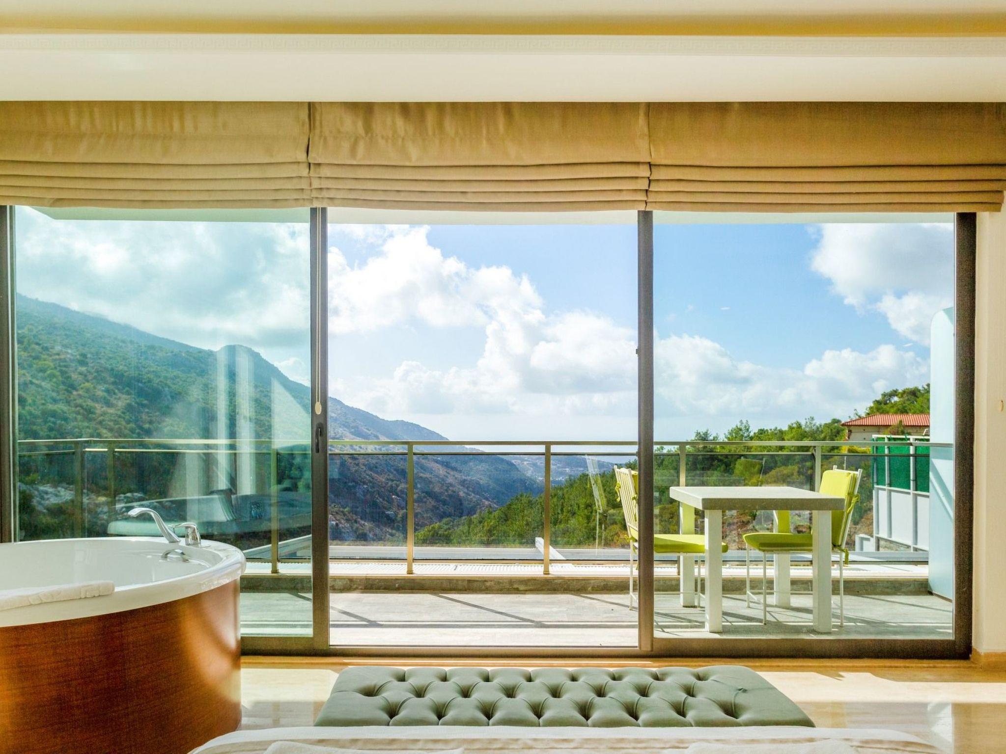 Bed rooms1. Bed room:double bed for suit family, air conditioner, wardrobe , balcony, led tv,jacuzzi2. Bed room: Teen bed room ,two single beds, air conditioner , bath, wardrob, , balcony, ledtv,jacuzzi are availableBath towel, hand towel and beach towel are available in each villa. Towels are prepared in advanceand included in the rooms.Iron, ironing board, hair dryer, teapot, barbeque/ charcoal burner are available in each villa.HallHall with sea and nature landscape , sitting group, six-person dinner table , satellite receiver, andtv(led) and air conditioner are available. KitchenAmerican Kitchen designed as large, spacious ,and modern, refrigerator, dish washer, washingmachine,stove, quartet oven (embedded) , microwave oven, electric water heater (kettle), pan,saucepan etc. kitchen equipments, and six-person dinnerware are available.Pool and Garden Large sunbathing area with private swimming pool and garden are available in each villa. 6 sunbedsand umbrellas, six person dining table,sitting group, barbeque are available. Pools are collapsibleheated.Pool Size Width: 3,5 mt/ Length : 10 mt / Depth: 1,40mtCleaning and Care Villa is delivered to you , and cleaned for two times a week, if you request an extra cleaning ;cleaning (including new bed sheet, pillow case ) are performed by our attendants as chargeable.