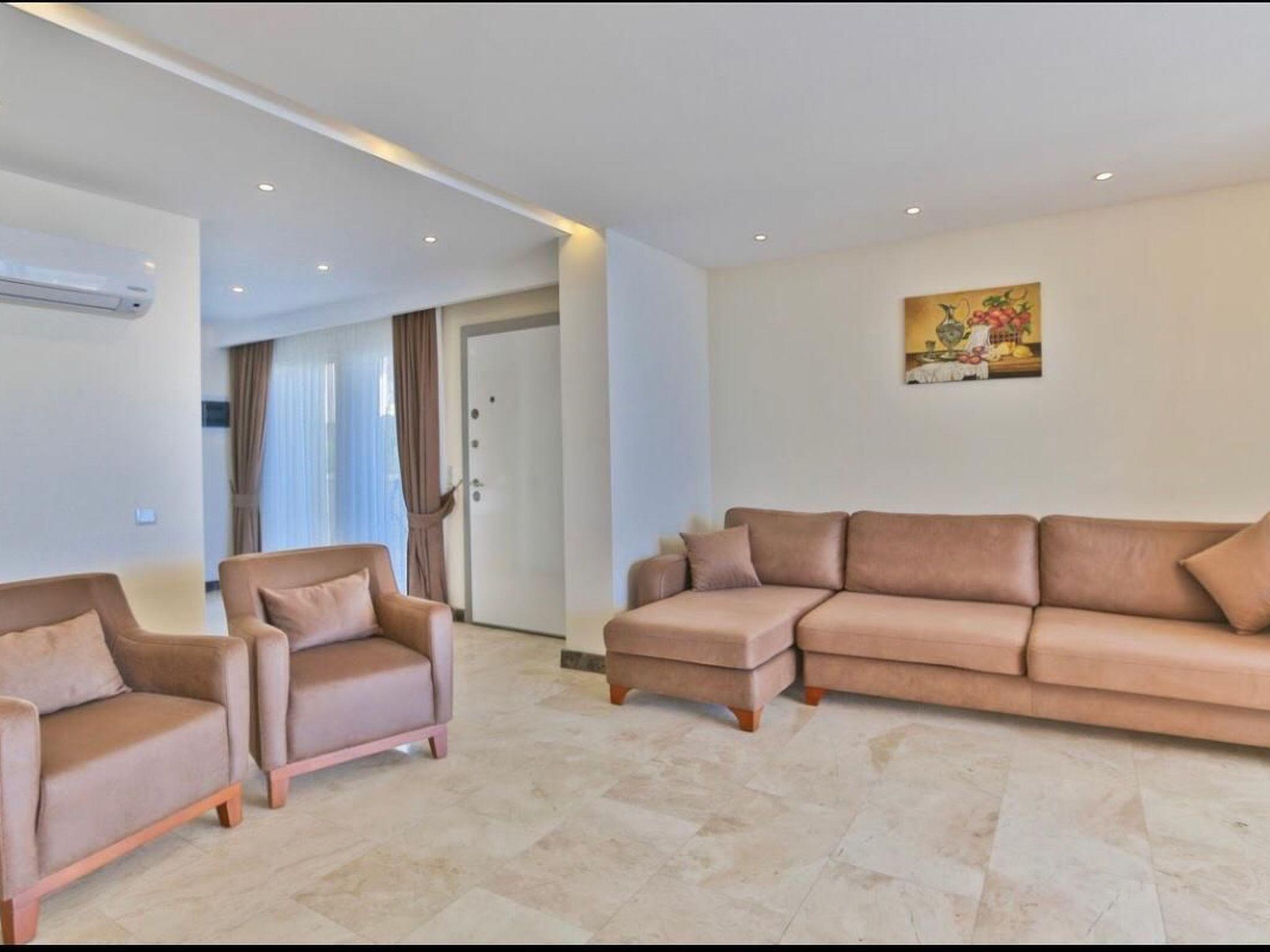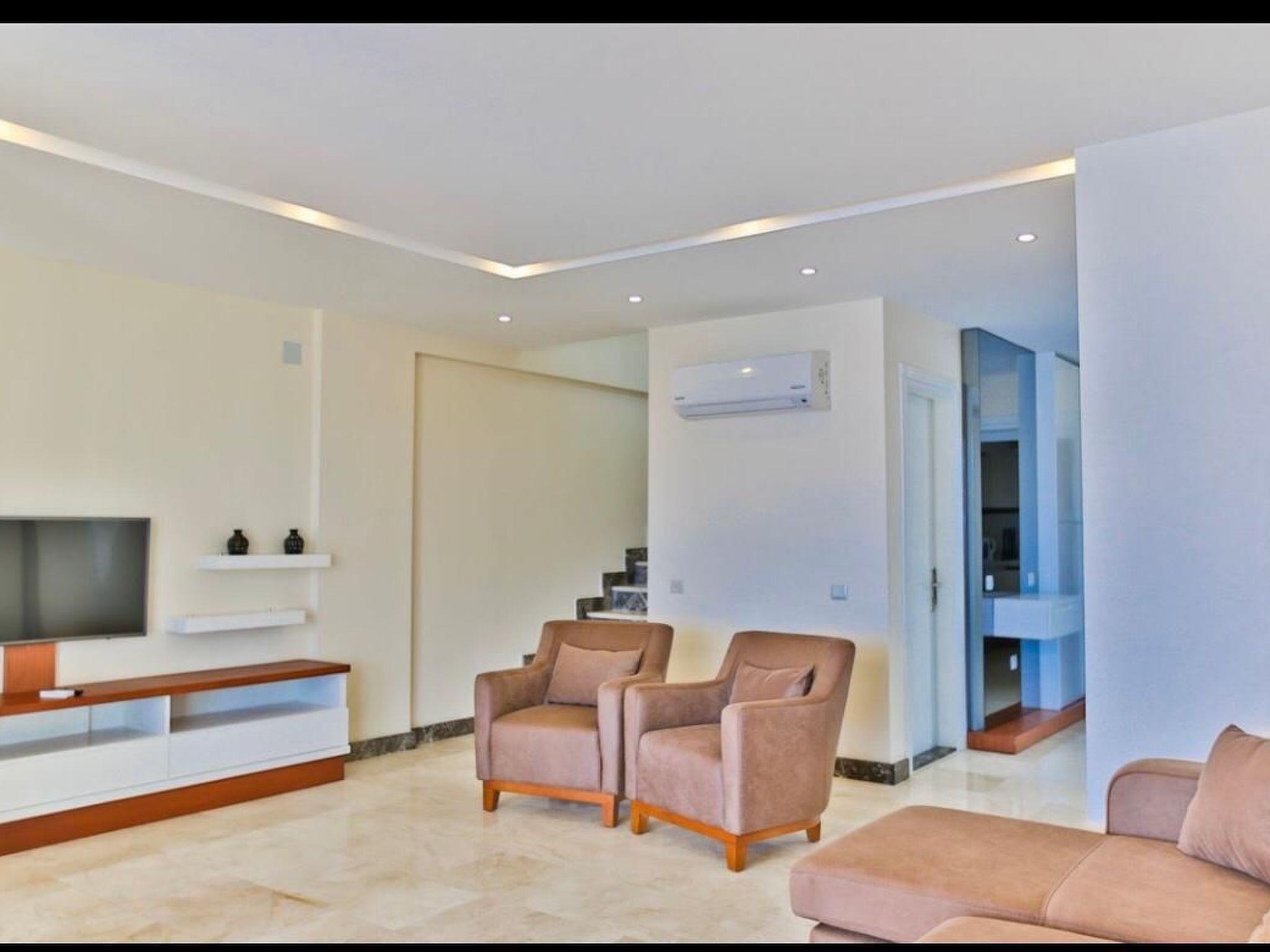 Outside, the private pool invites you to swim undisturbed under the Anatolian sun. A terrace and a balcony offer ideal conditions for enjoying moments together outdoors or simply sitting back and enjoying the peace and quiet. The well-kept outdoor area completes the picture of perfect holiday accommodation.