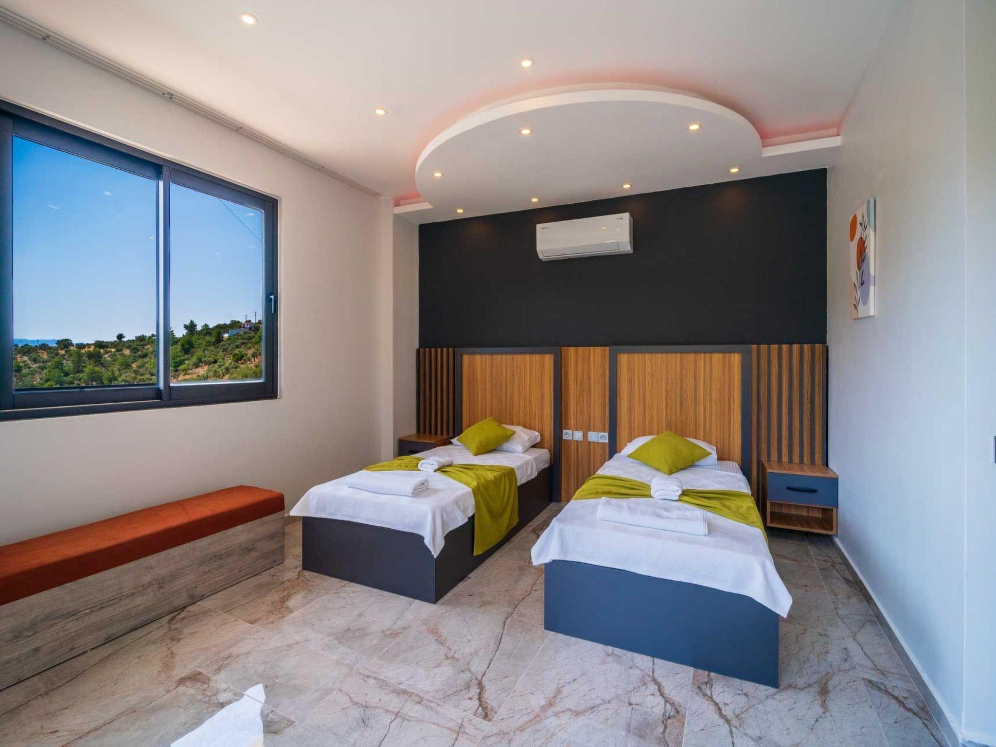 The villa is located in Kalkan Islamlar, surrounded by lush greenery and a picturesque landscape. It offers a spacious bedroom equipped with a luxurious Jacuzzi where you can spend relaxing hours. The villa is secluded and offers you complete privacy so that you can enjoy your time undisturbed.