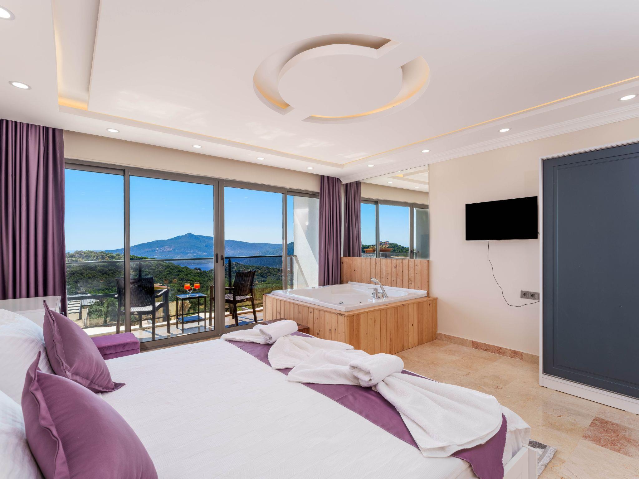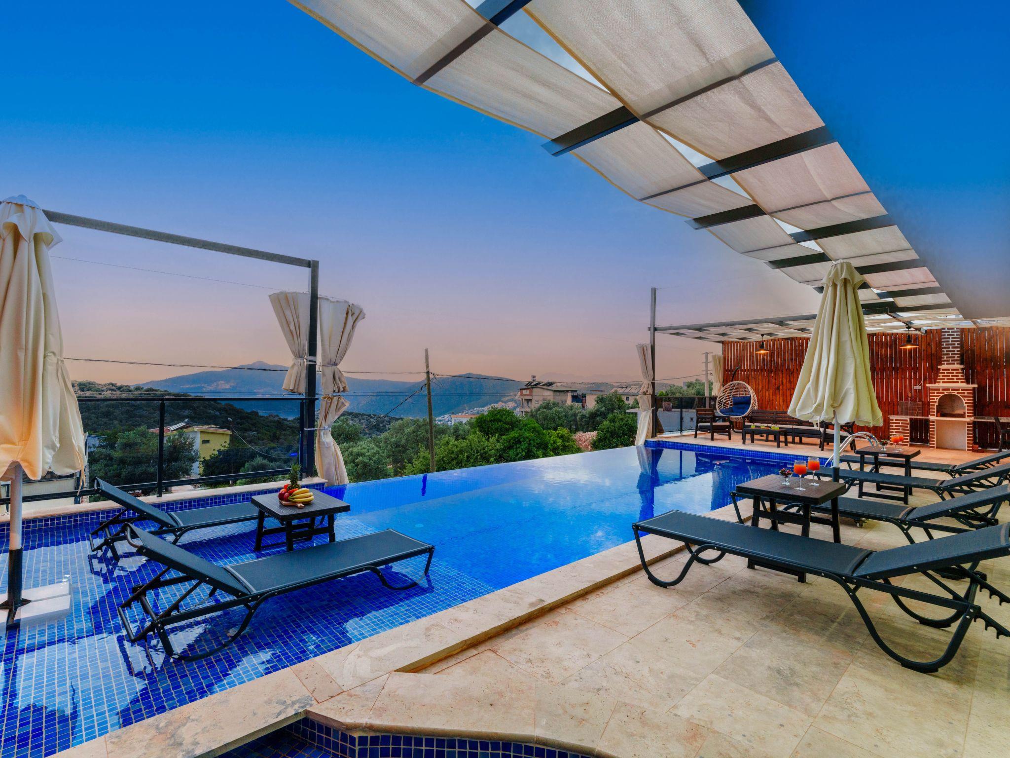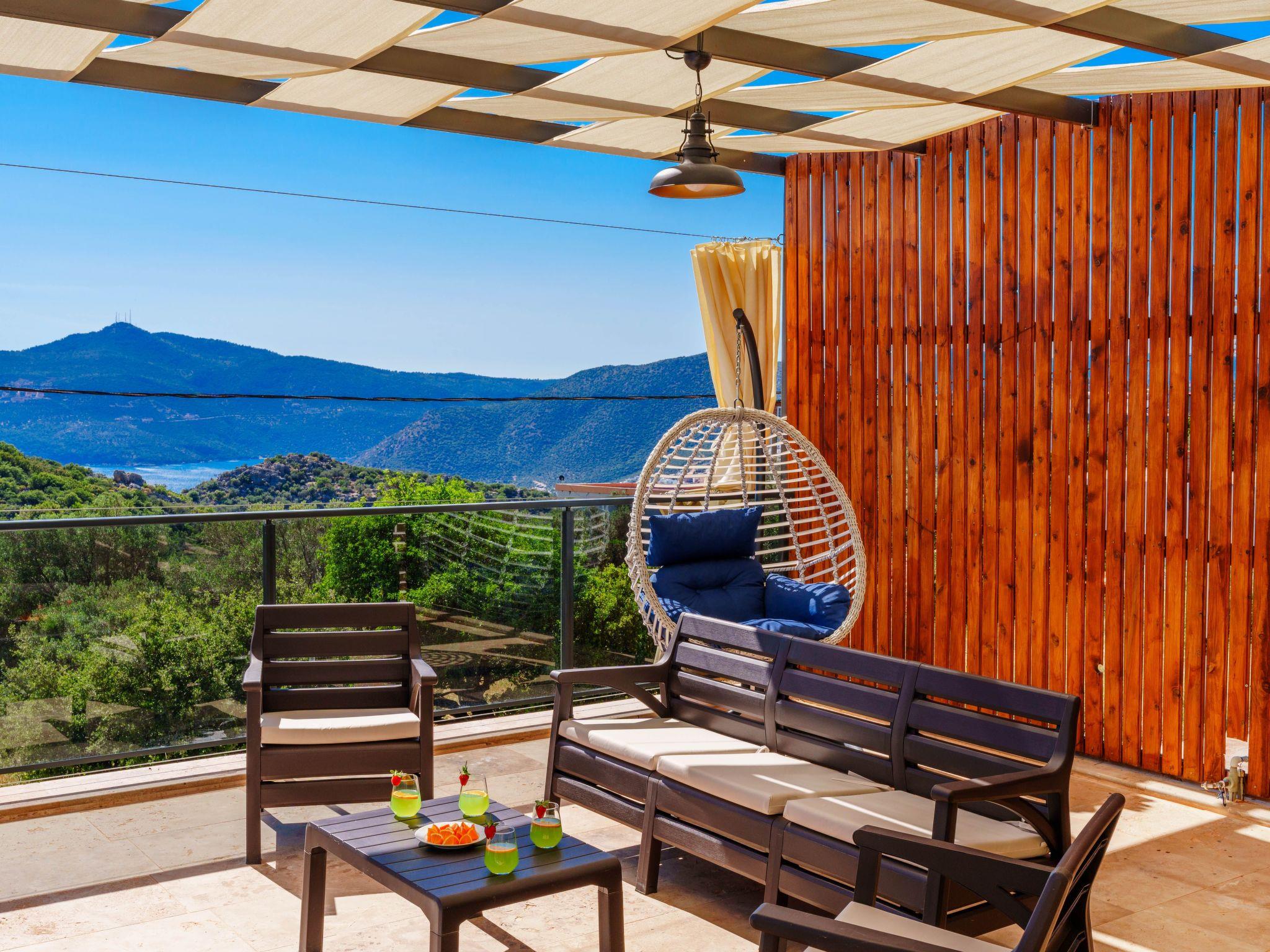 This luxurious villa is located in the Kalkan Kördere area and has 4 bedrooms and can accommodate up to 8 guests. With its mesmerising blue tones, luxurious design and modern architecture, it offers you a dream holiday experience. It is the ideal sea view rental villa for large families or groups of friends.