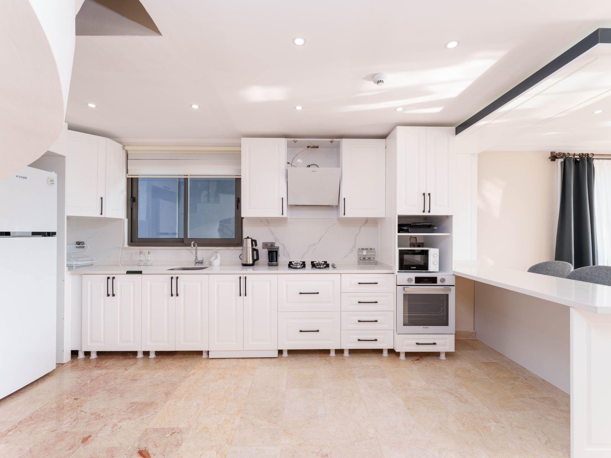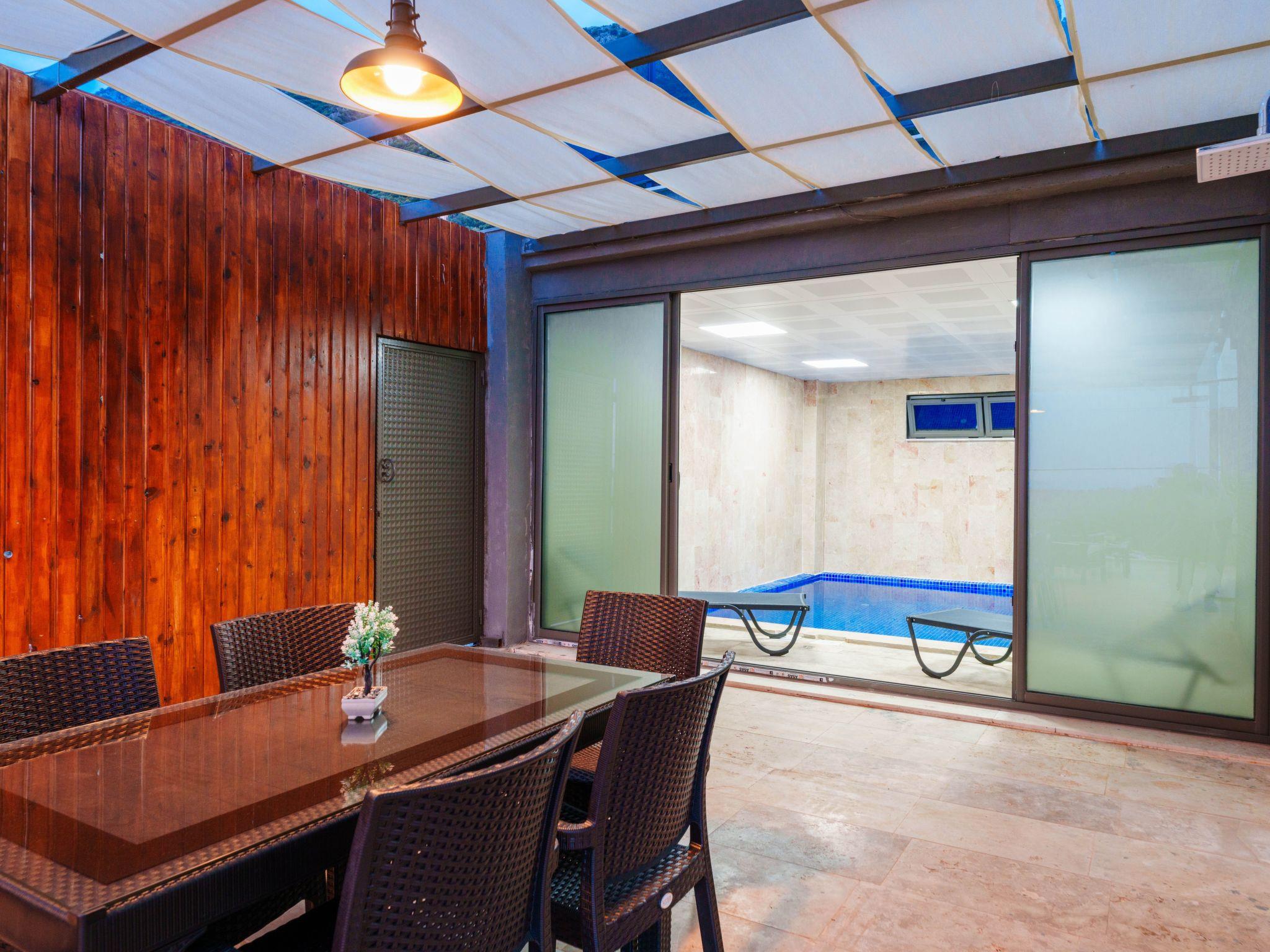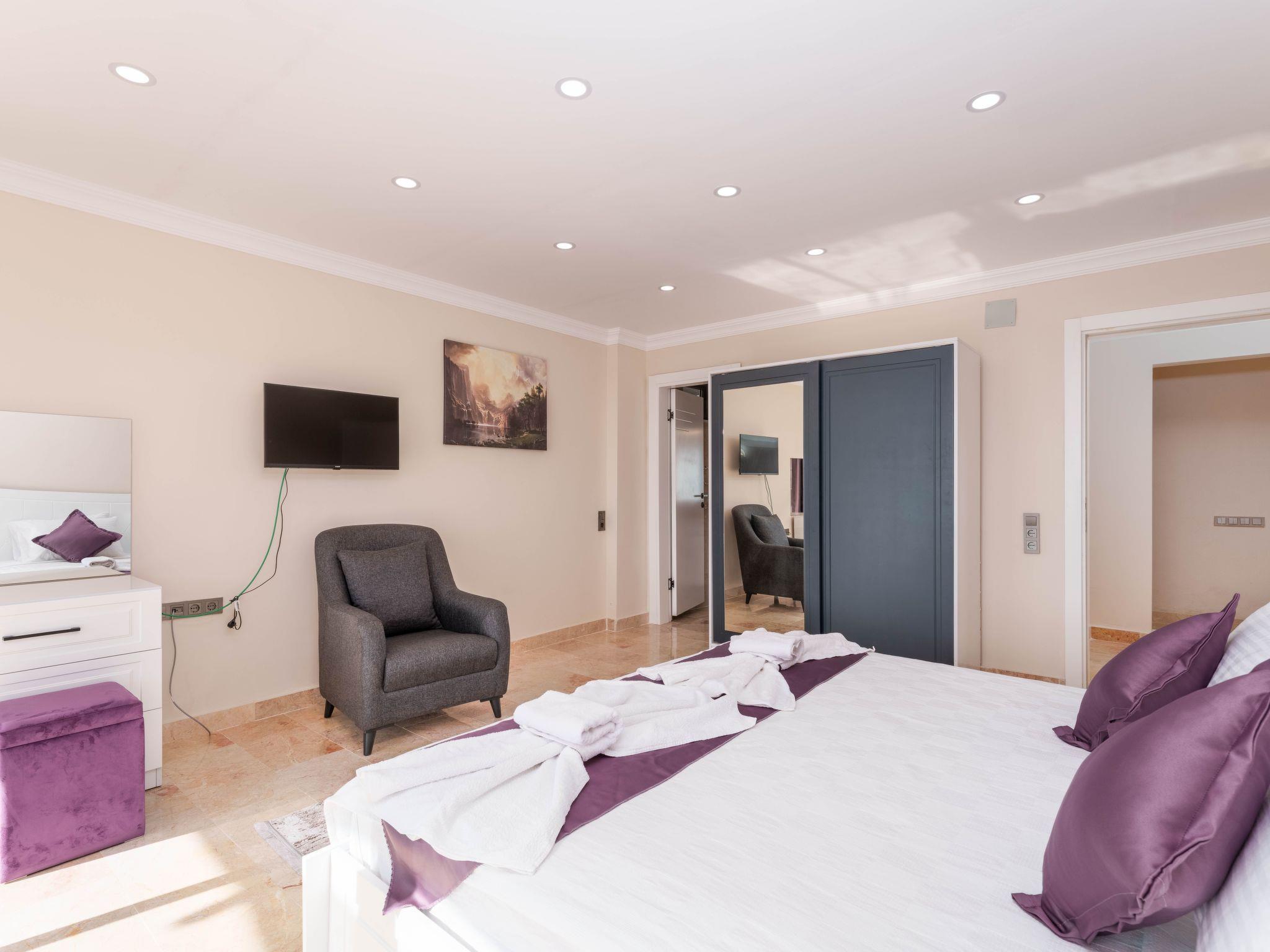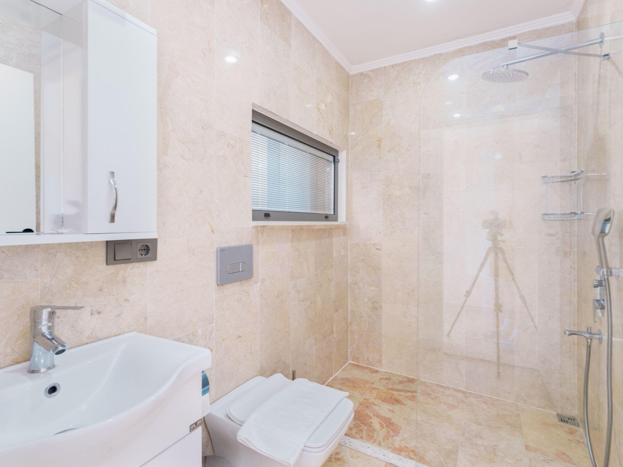 This luxurious villa is located in the Kalkan Kördere area and has 4 bedrooms and can accommodate up to 8 guests. With its mesmerising blue tones, luxurious design and modern architecture, it offers you a dream holiday experience. It is the ideal sea view rental villa for large families or groups of friends.