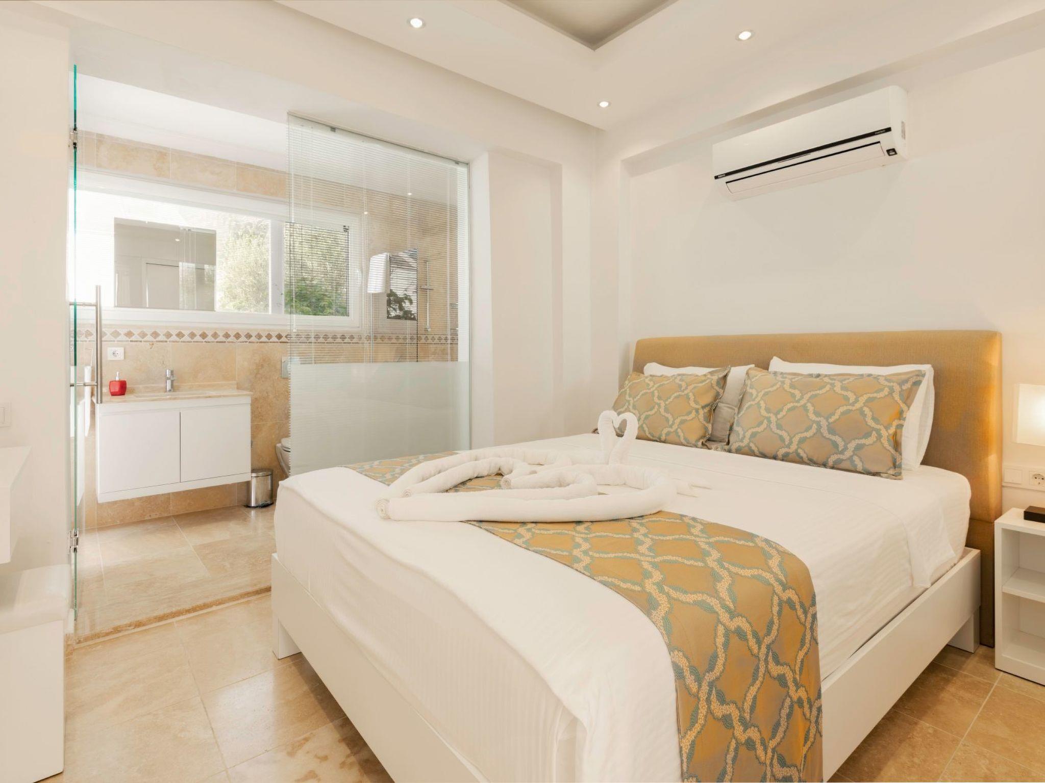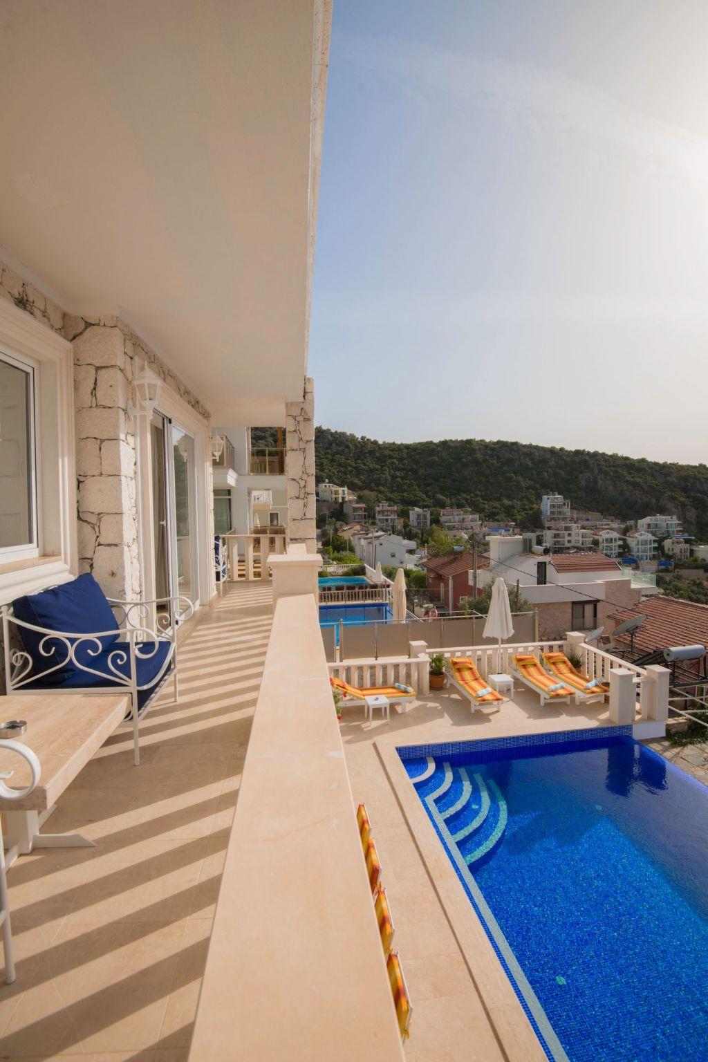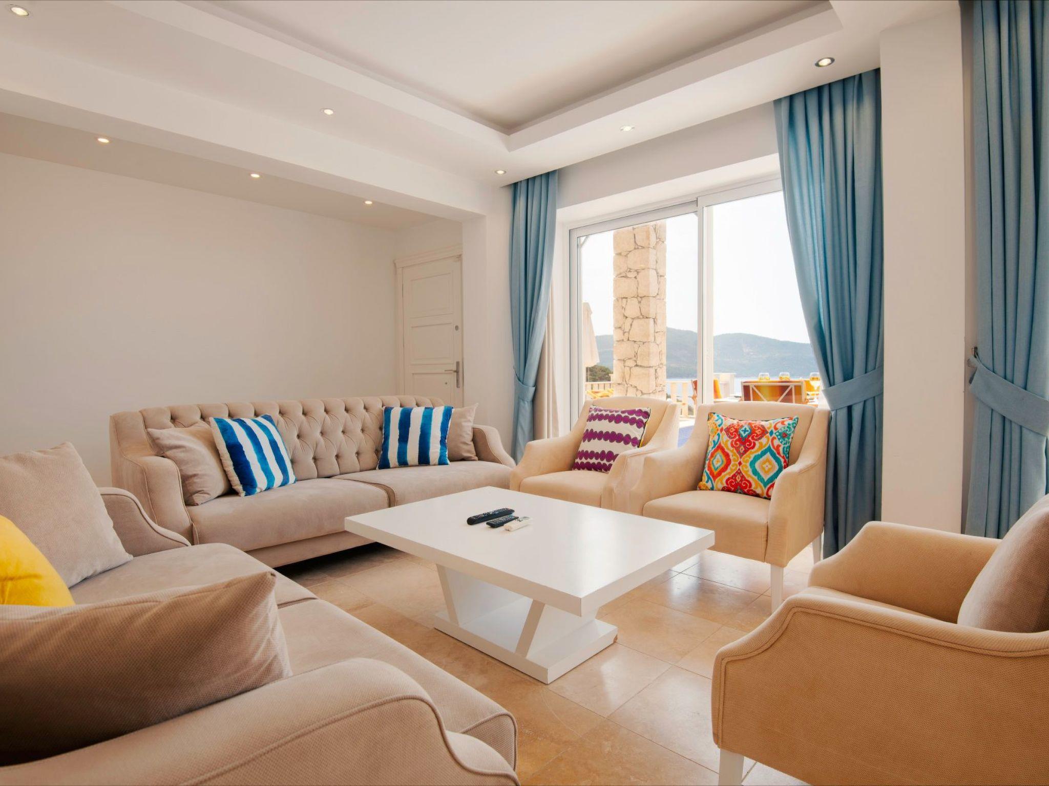 The surroundings of the holiday home are just as enchanting. The beach and sea are just 500 metres away, ideal for all kinds of water sports or simply relaxing on the beach. Grocery shops are within easy reach at 300 metres and the nearest town centre of Kalkan is only 2 kilometres away - perfect for excursions to discover the local gastronomy and culture.