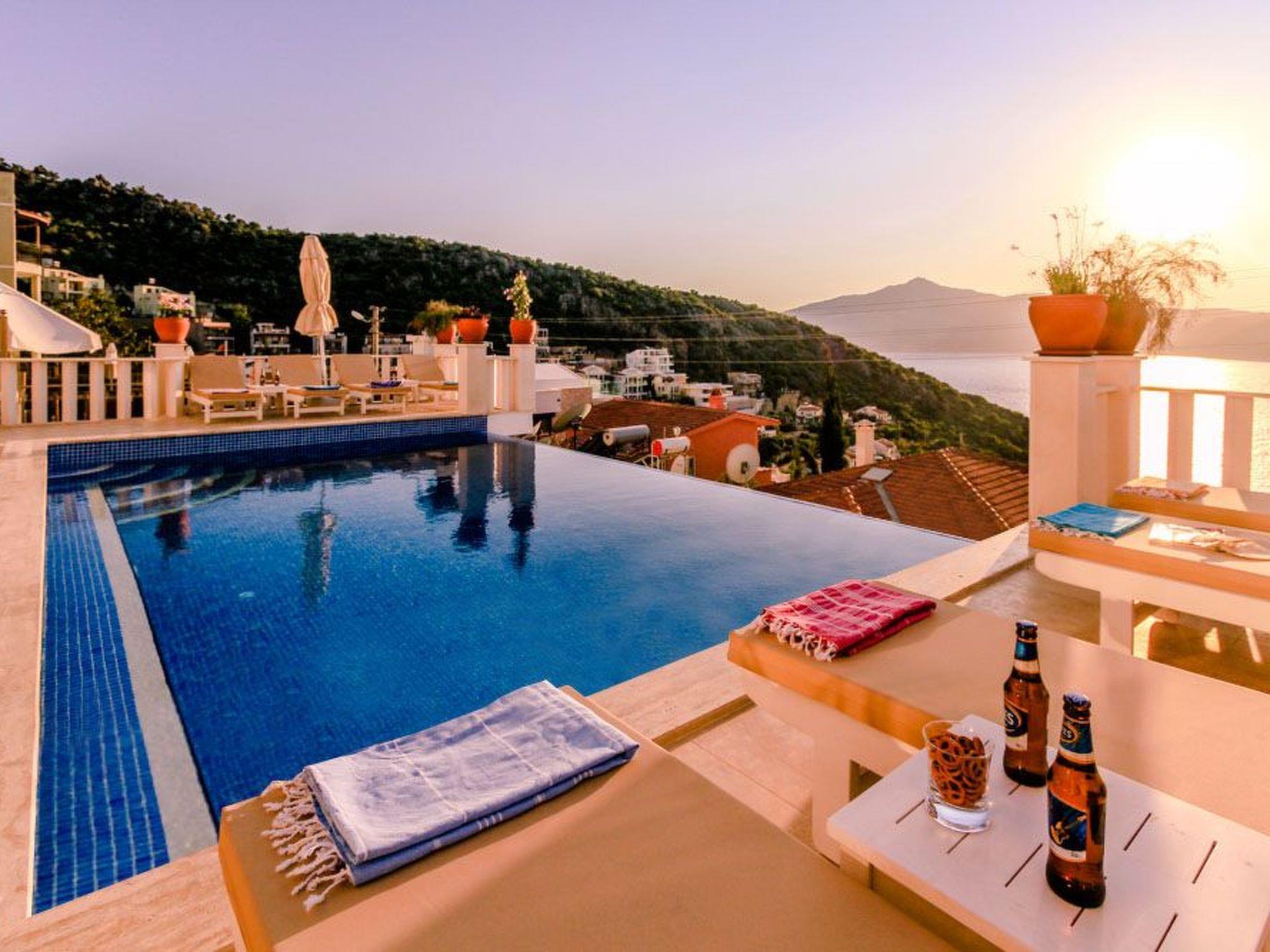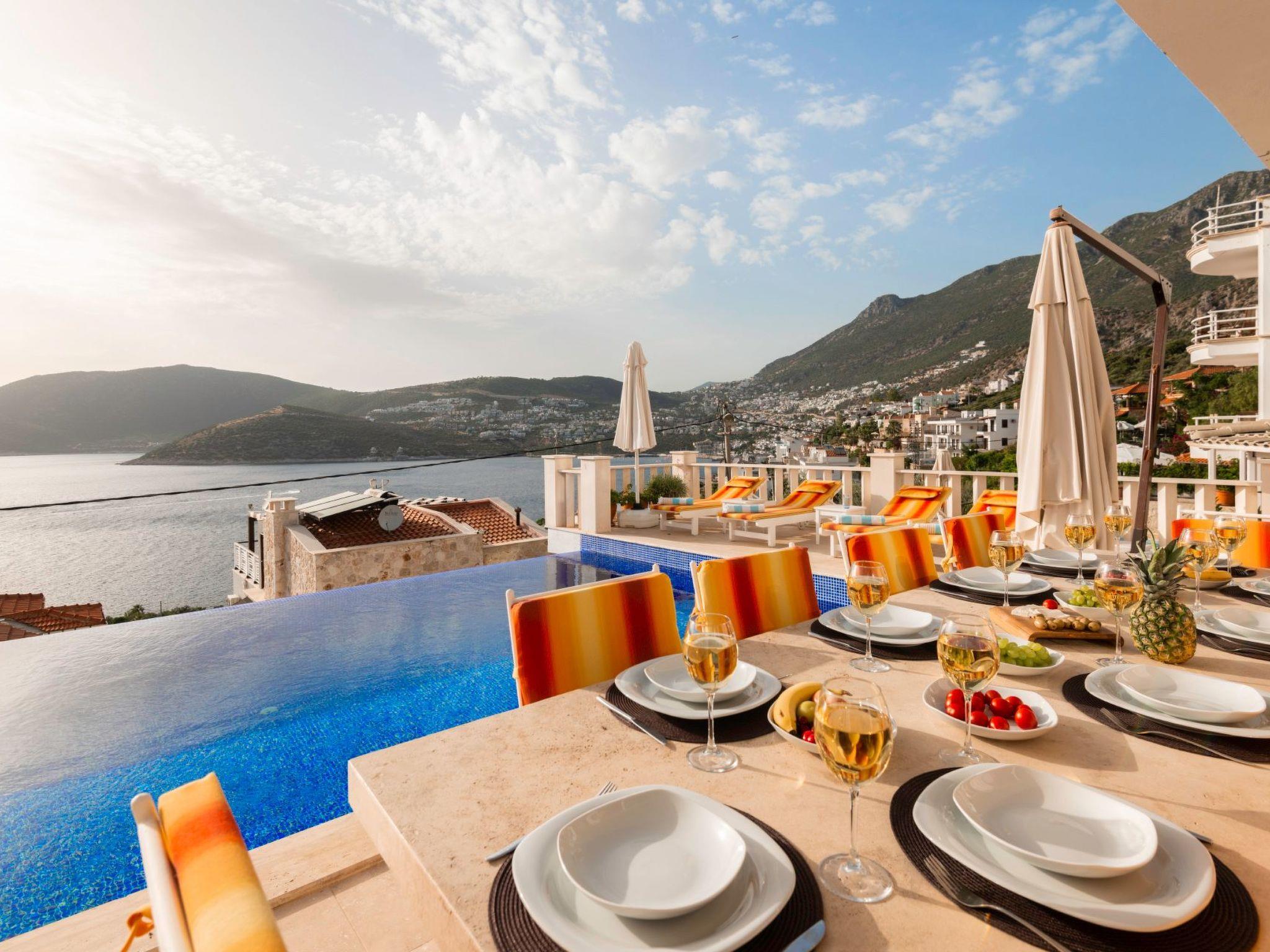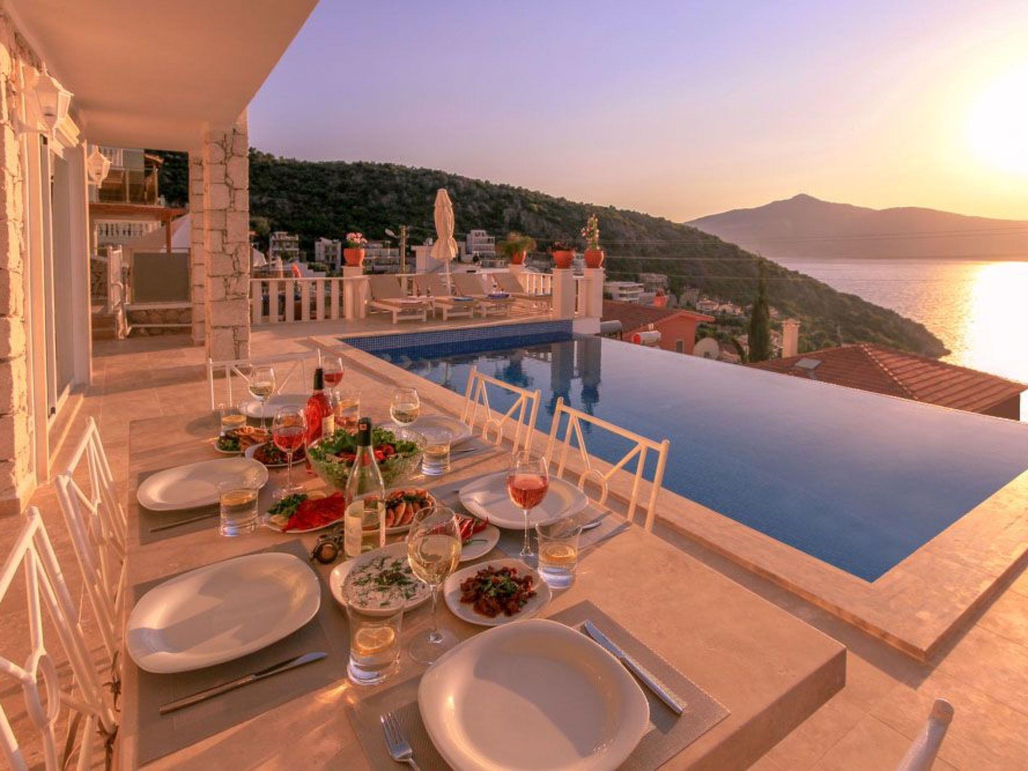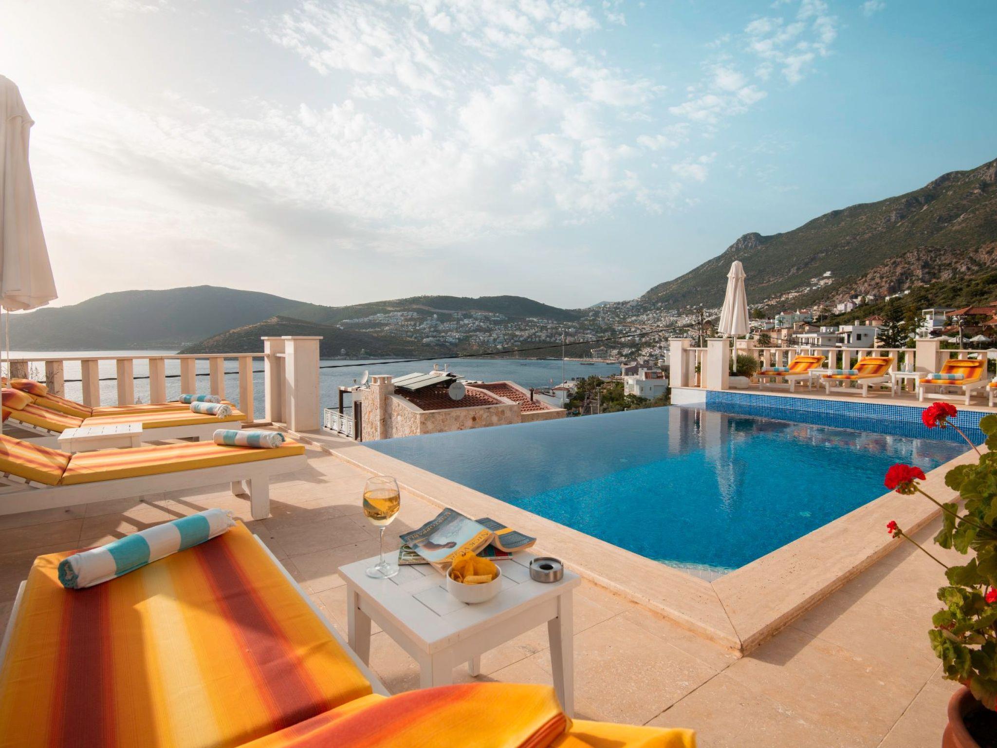 Outside, the spectacular infinity pool invites you to relax and swim. The terrace and roof terrace, which are for exclusive use, offer plenty of space for sunbathers and socialising in the evenings. The well-tended garden includes a further area for relaxation and games. A highlight is certainly the large gas barbecue on the terrace - perfect for communal barbecues under the starry skies of Kalkan.