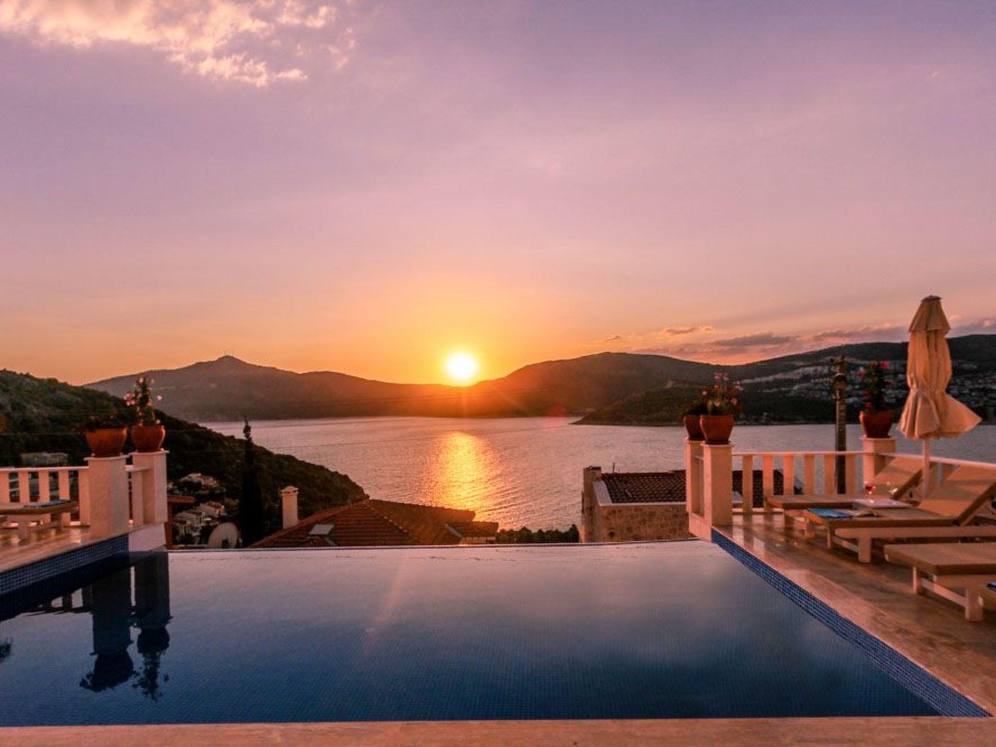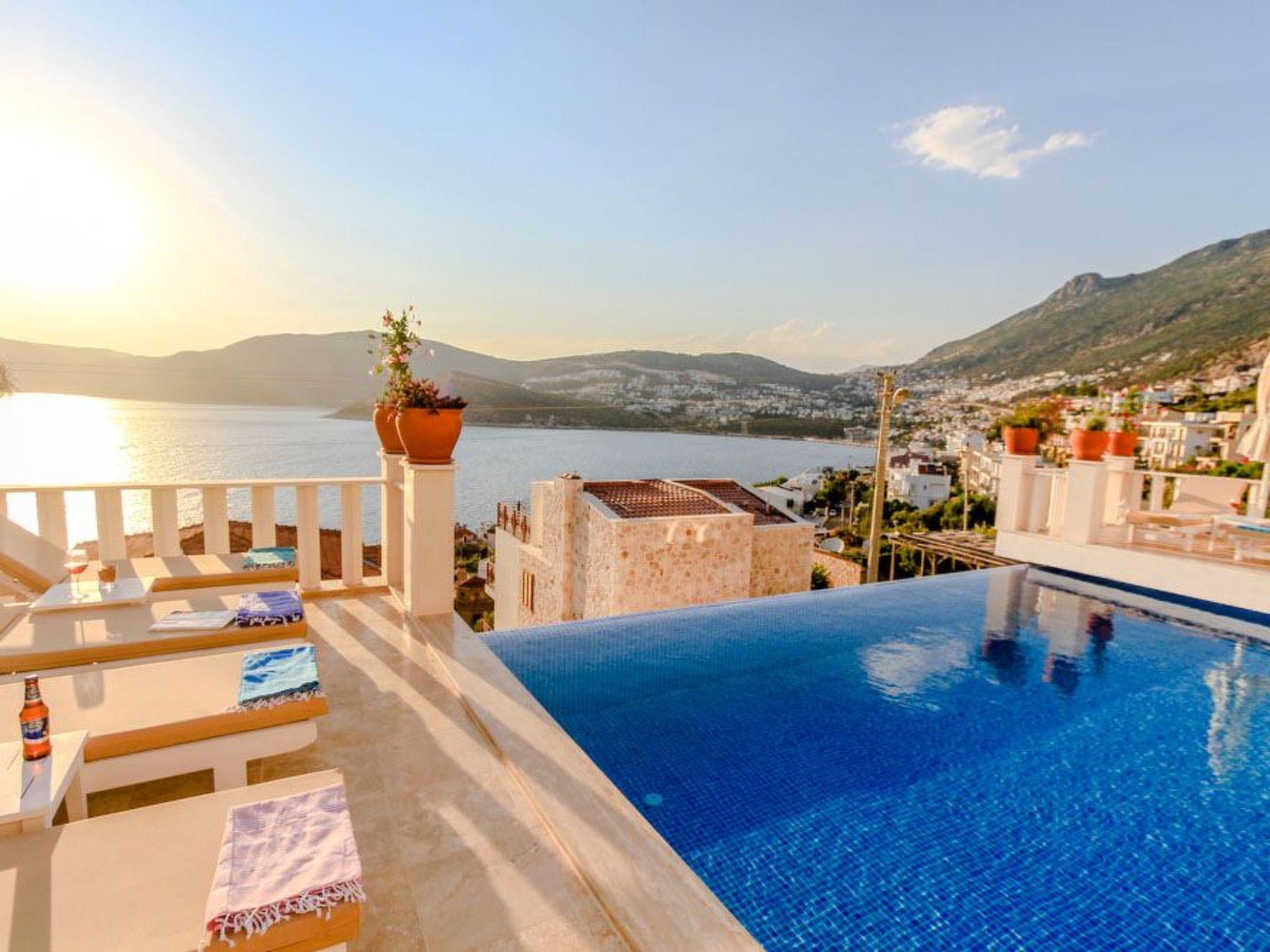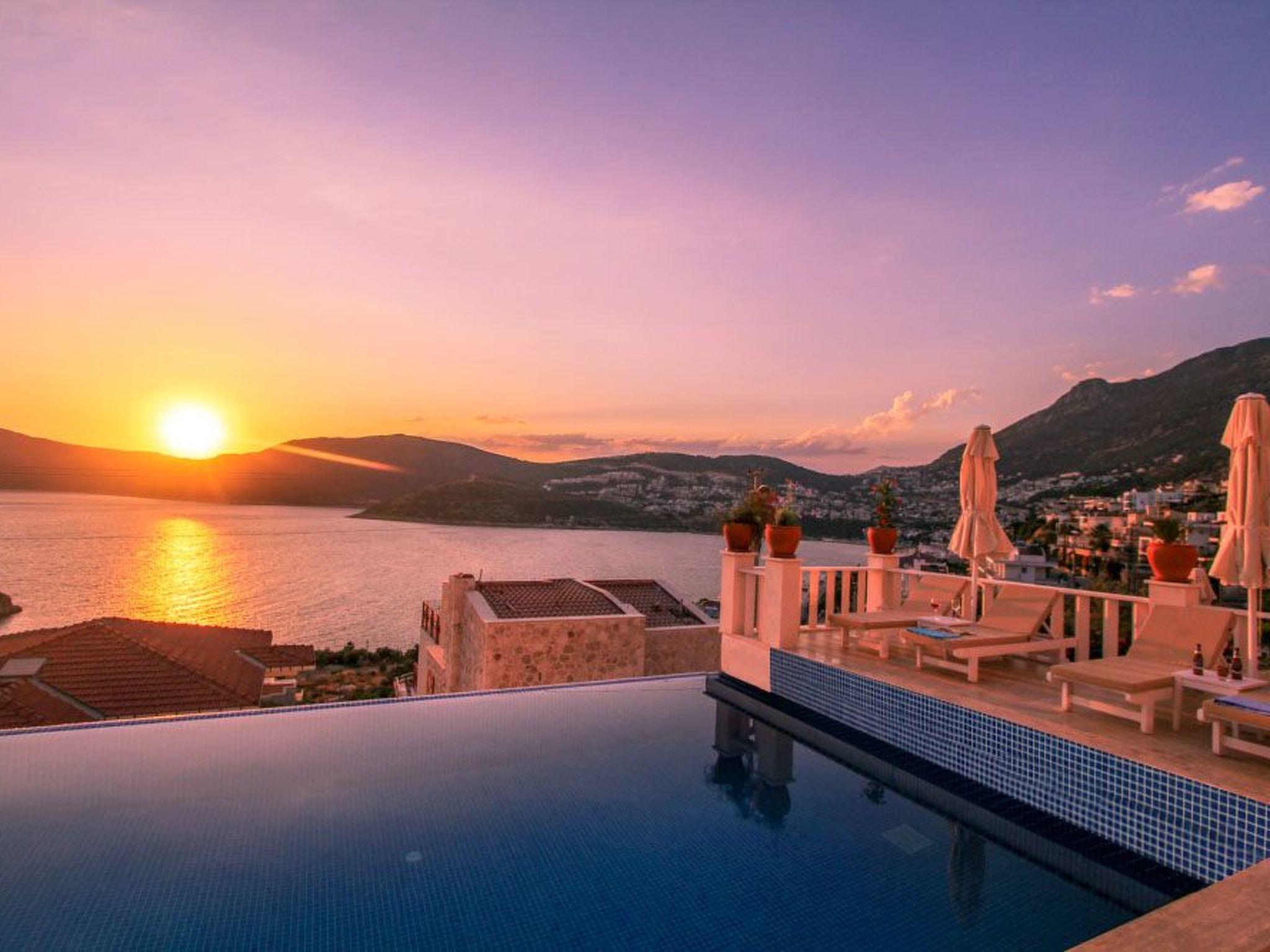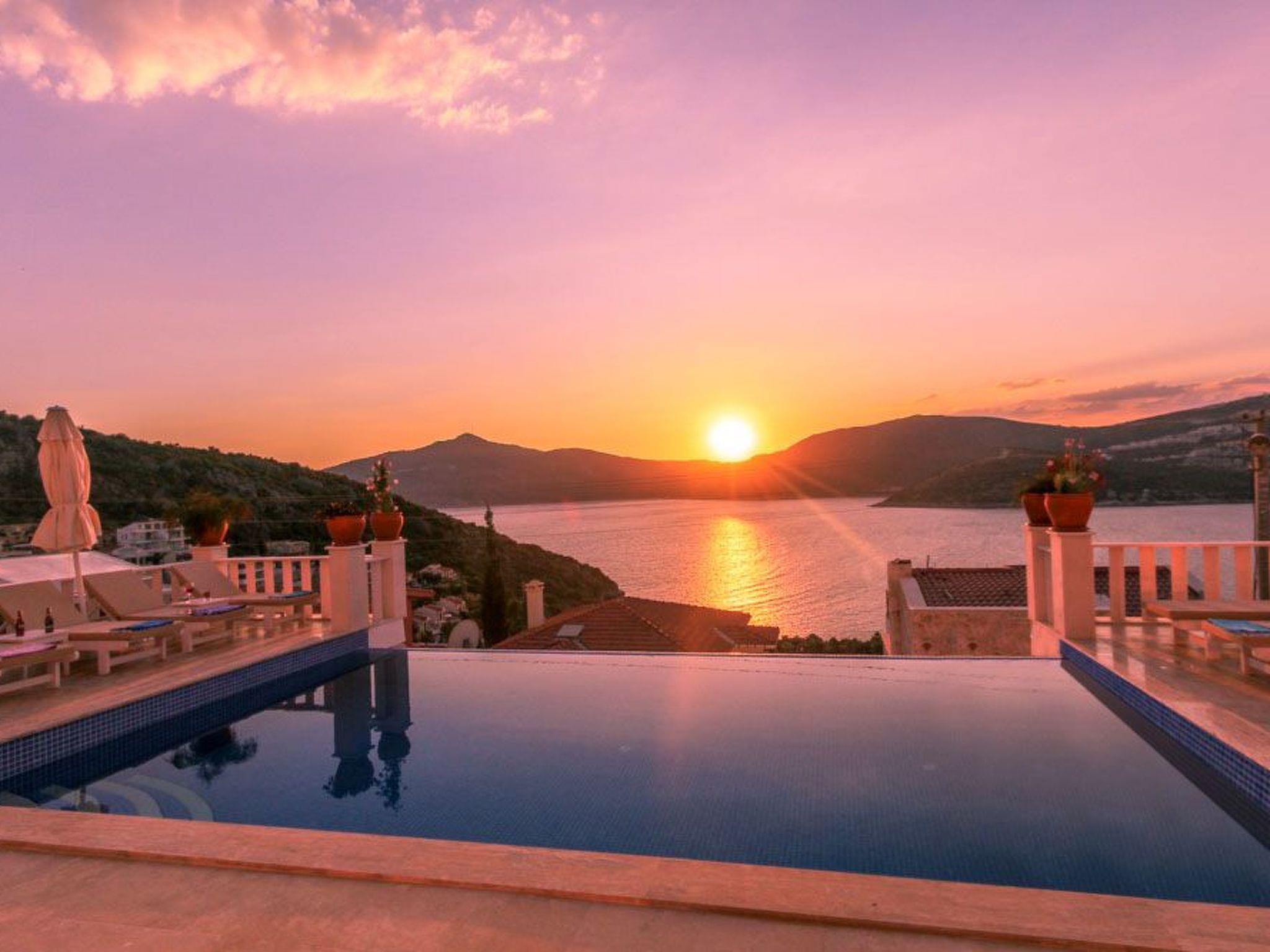 Outside, the spectacular infinity pool invites you to relax and swim. The terrace and roof terrace, which are for exclusive use, offer plenty of space for sunbathers and socialising in the evenings. The well-tended garden includes a further area for relaxation and games. A highlight is certainly the large gas barbecue on the terrace - perfect for communal barbecues under the starry skies of Kalkan.
