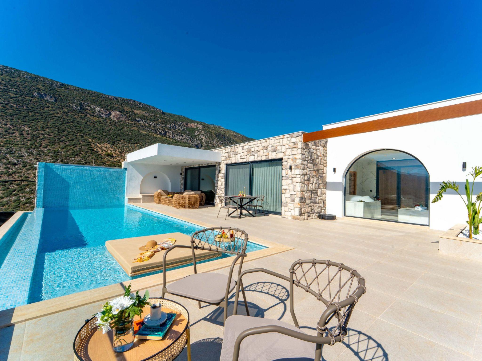 Our holiday home is located in the quiet Gökseki district of Kas and is a completely secluded honeymoon villa with a private pool and breathtaking sea views. The modern and comfortable villa has been furnished with great attention to detail to ensure you have a peaceful and romantic holiday.