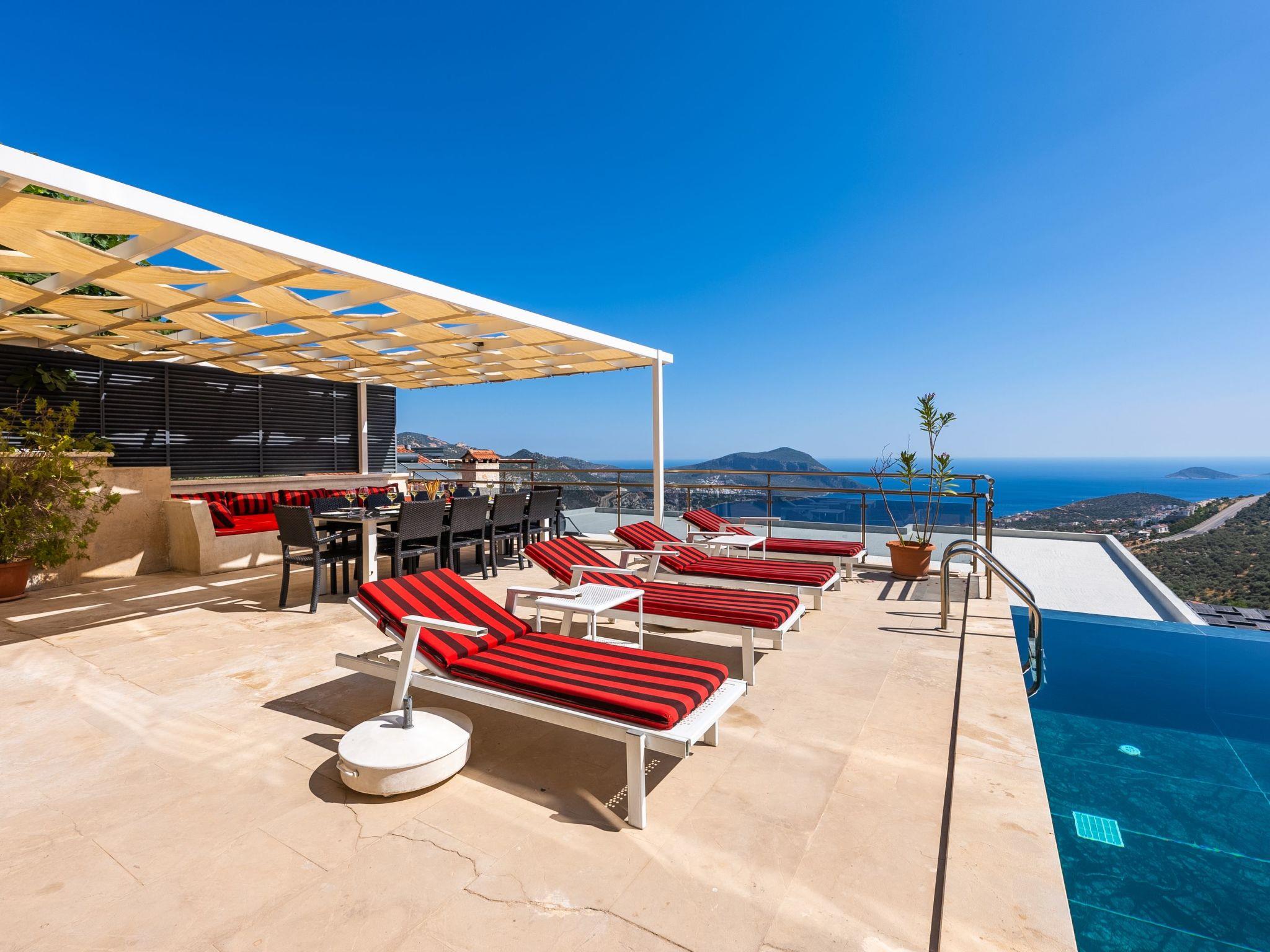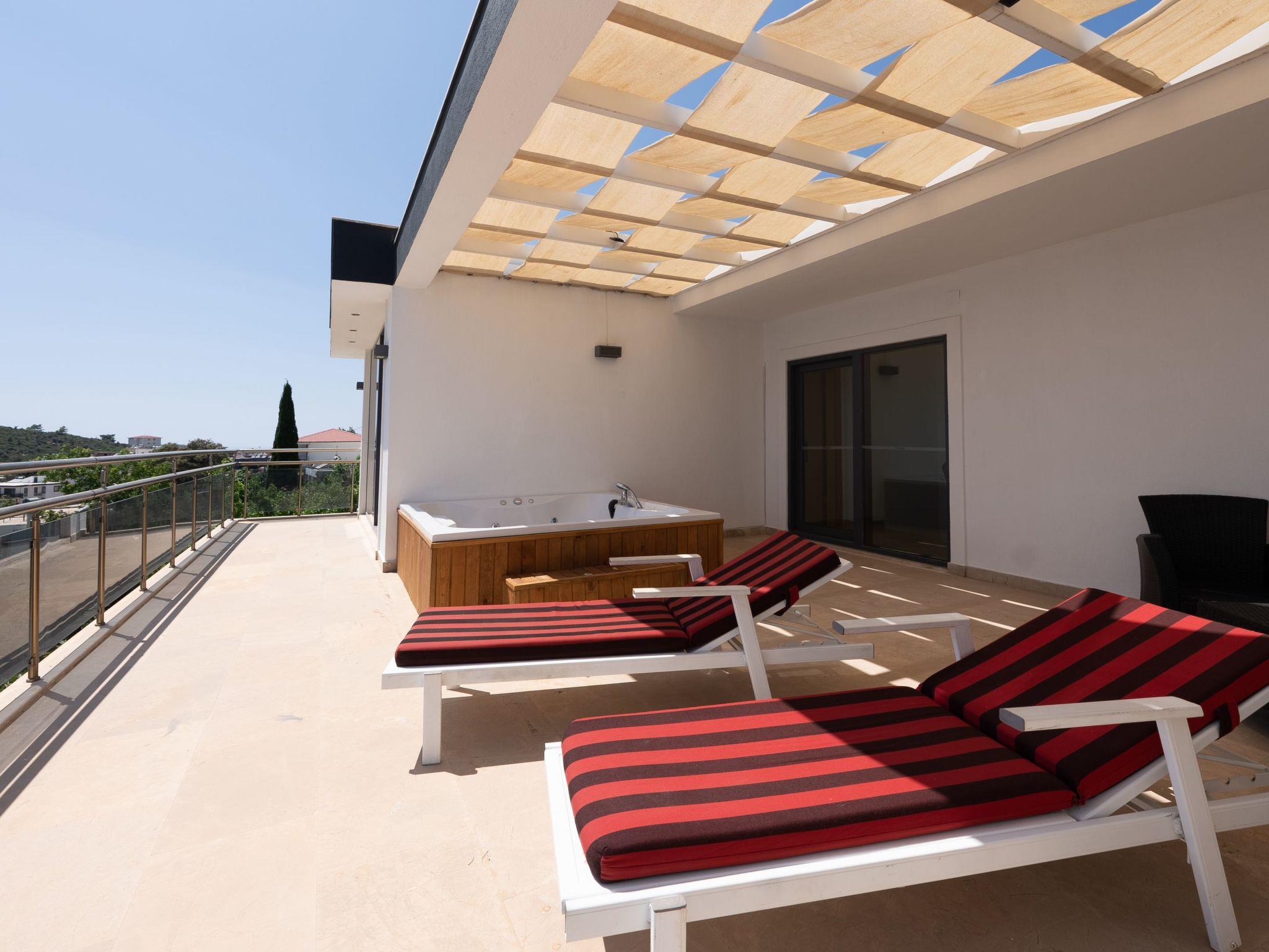Discover the perfect holiday home for your next holiday in Kalkan, Anatolia. With enough space for up to 12 people, this detached holiday home is the ideal place for large families or groups of friends. Enjoy not only the comfort and privacy of this accommodation, but also the breathtaking views of the sea directly from the rooms.