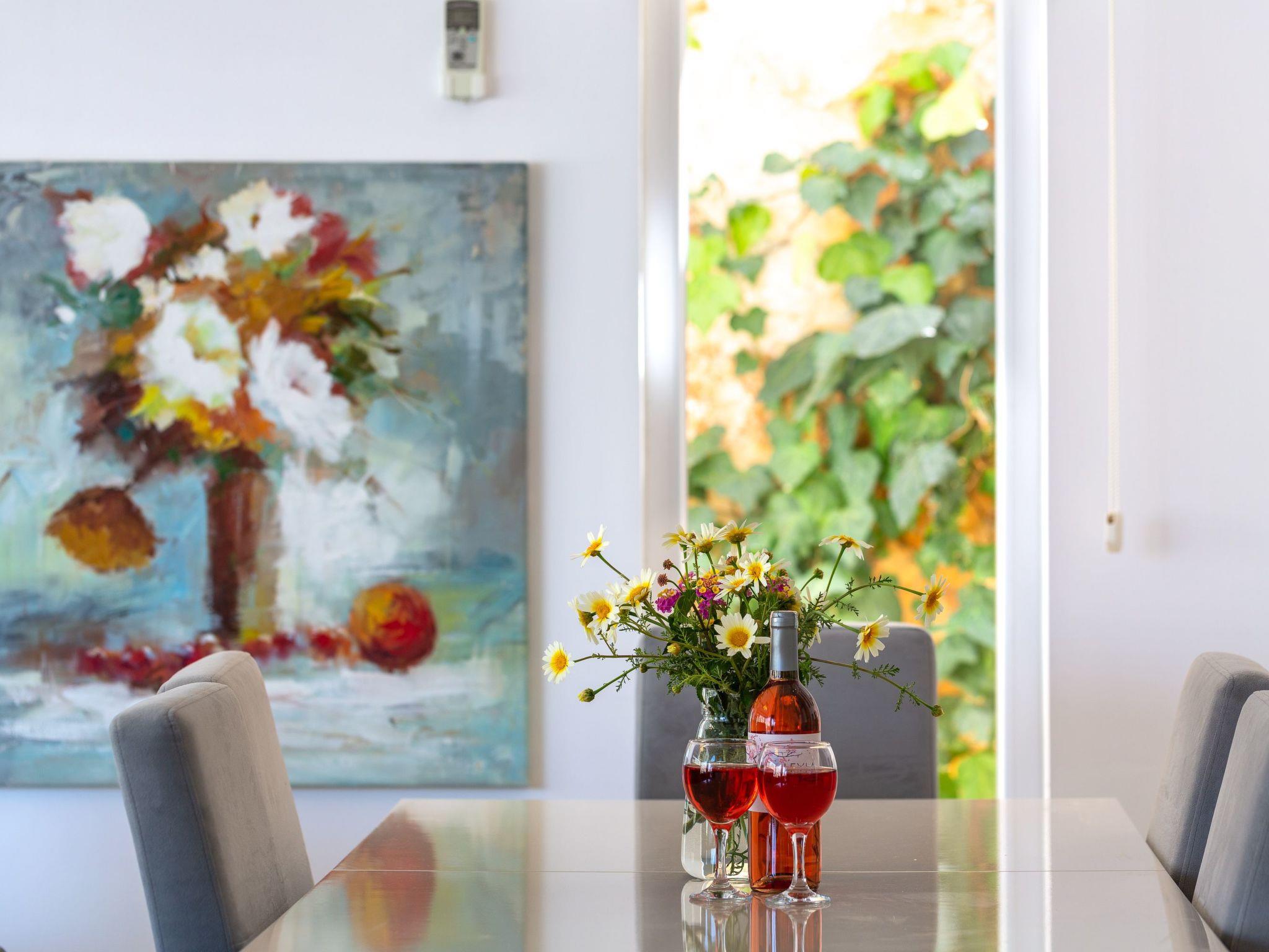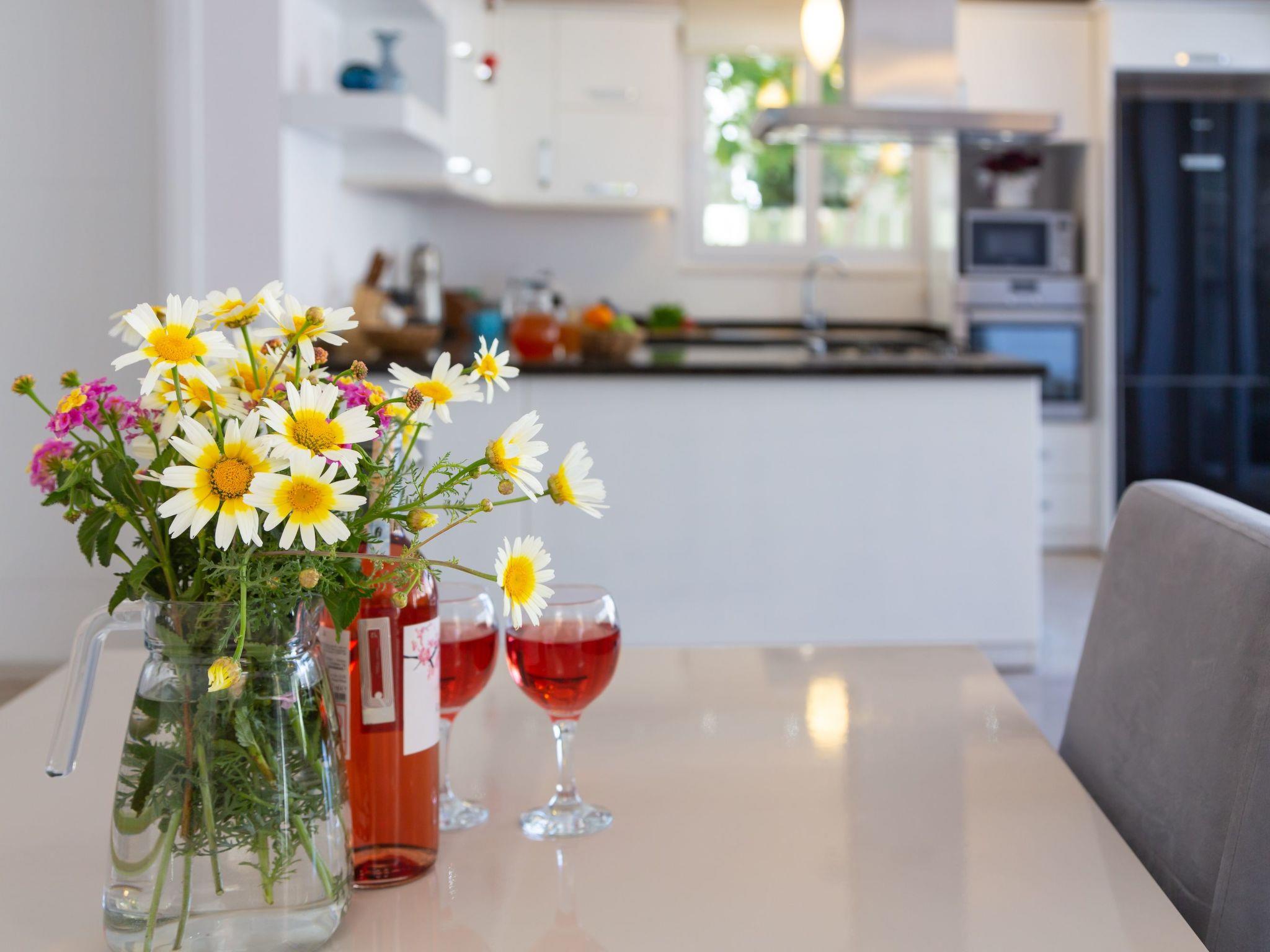 Inside the house you will find a high level of comfort with practical furnishings that leave nothing to be desired. All bedrooms can be darkened, guaranteeing an undisturbed night's sleep. The 5 bathrooms, equipped with shower and bathtub, ensure a hassle-free morning ritual, even if you are travelling with a larger group. Other features include air conditioning, which ensures pleasant temperatures in all rooms, a washing machine and dishwasher for everyday convenience and solar energy, which supplies the house with environmentally friendly energy.