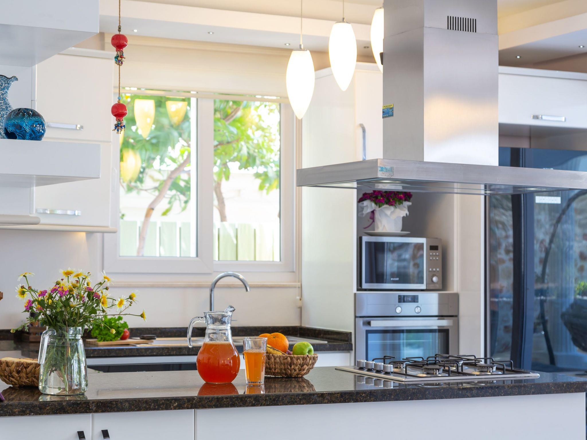 The location of the villa in Kalkan-Kisla is excellent. With the beach and the sea just 300 metres away, you can enjoy sunny days by the water without having to walk long distances. The nearest town centre is 2000 metres away, so you can easily explore the lively town life of Kalkan with its shopping facilities and restaurants. There is also a grocery store just 1000 metres from your holiday home, making self-catering easy.