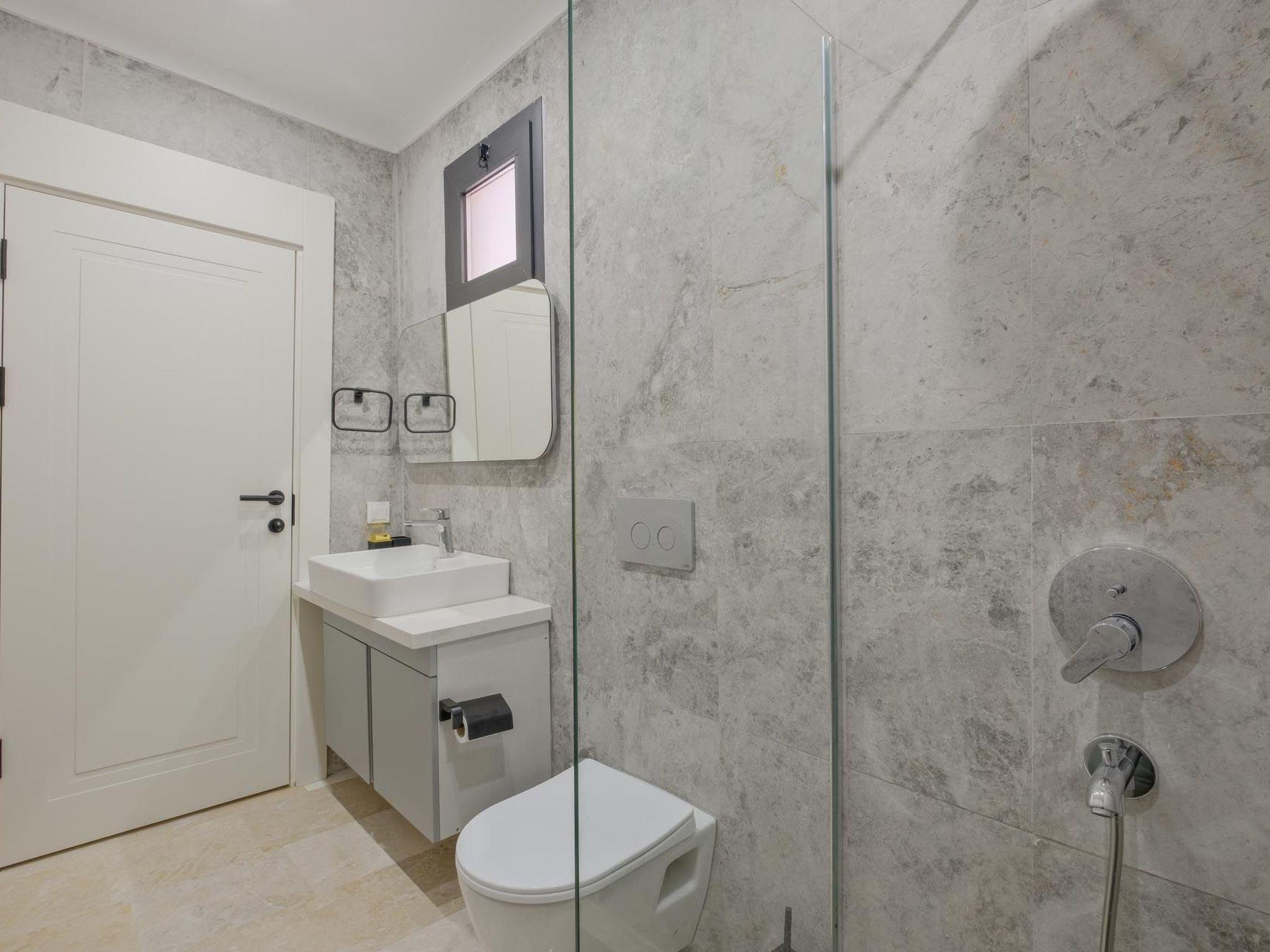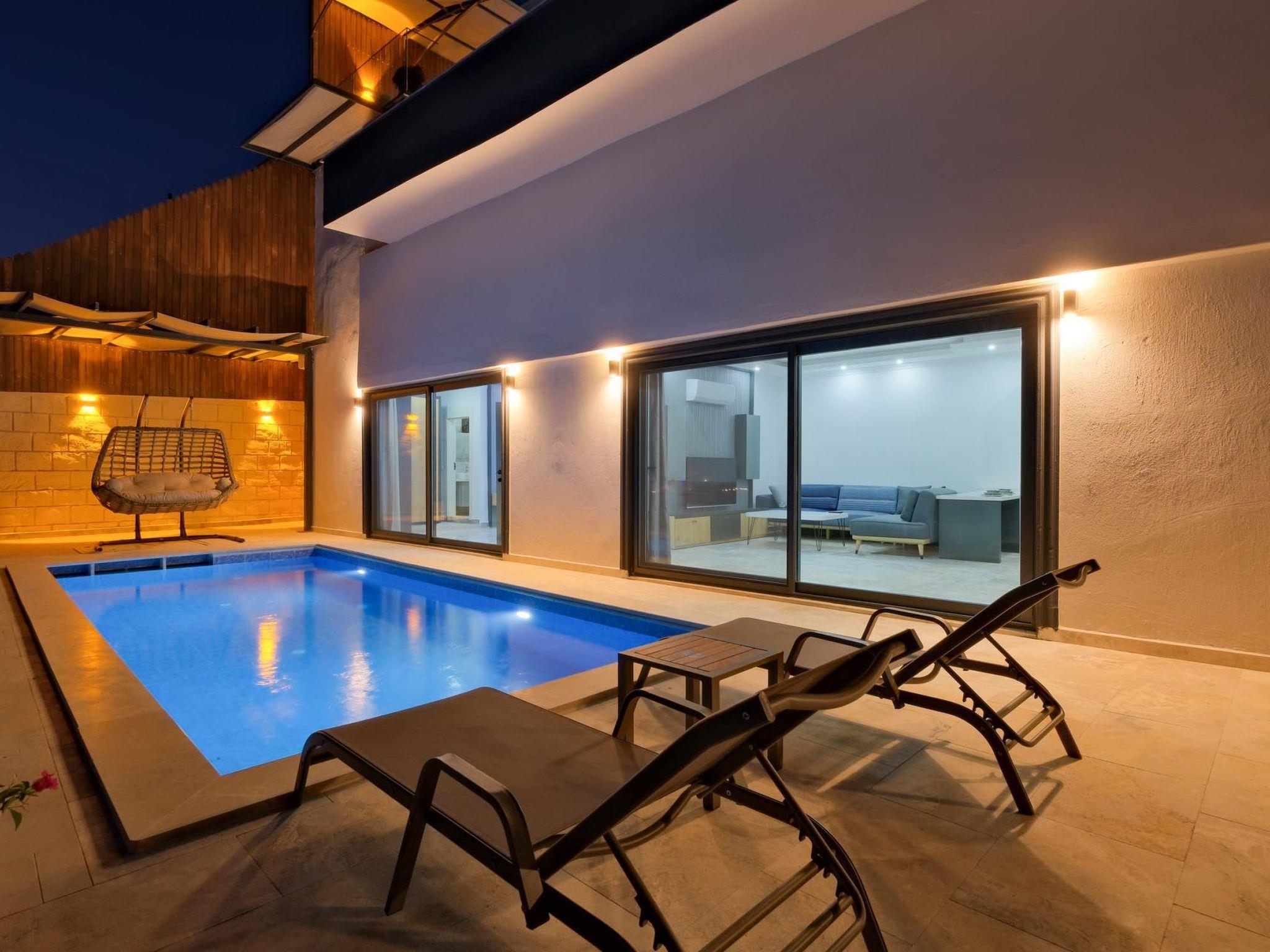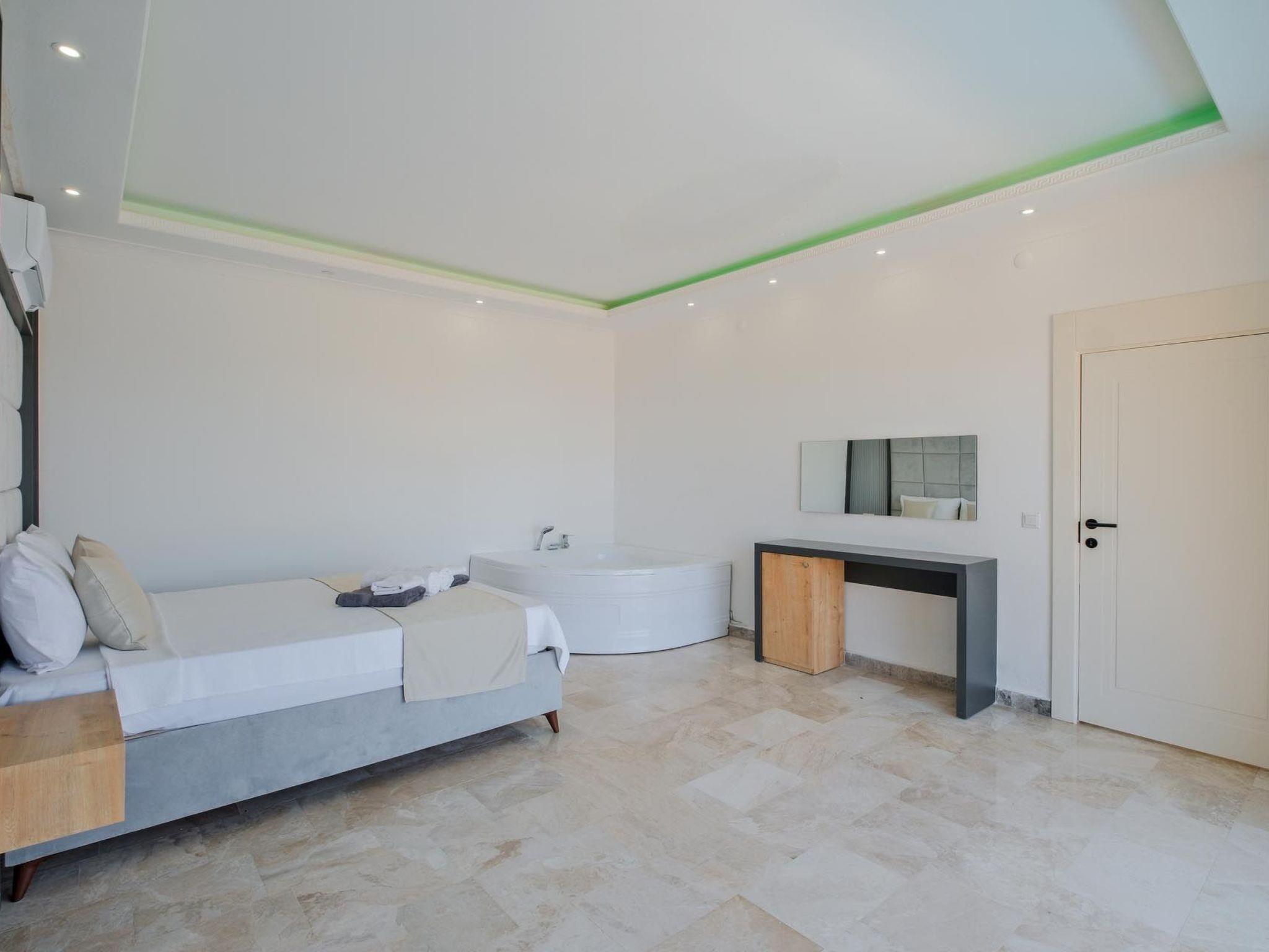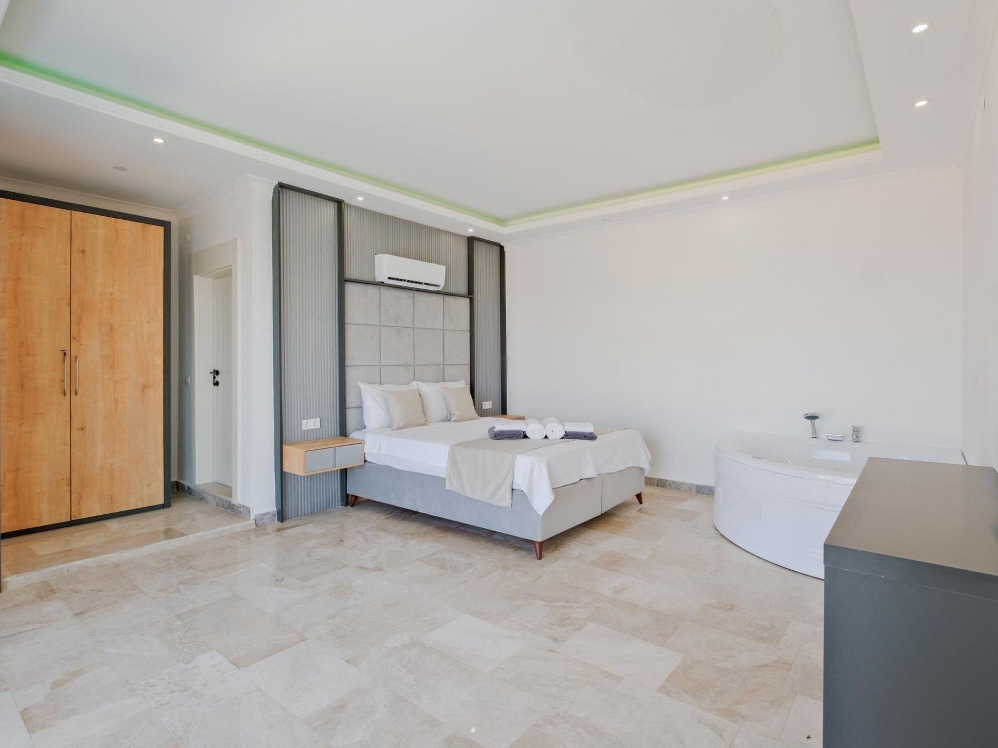 The romantic ambience of the villa is perfectly tailored to the needs of newly married couples. Elegant furnishings, cosy retreats and romantic lighting create an inviting and intimate atmosphere. A special highlight is the private hot tub, where you can relax and enjoy the impressive view. The luxurious bedroom has a king-size bed with high-quality bed linen, while the spacious bathroom is equipped with a free-standing bathtub and rain shower. The fully equipped kitchen invites you to embark on culinary adventures and the open-plan living area with panoramic windows offers magnificent views. The private terrace with comfortable sun loungers, free WiFi and air conditioning round off the luxurious offer.