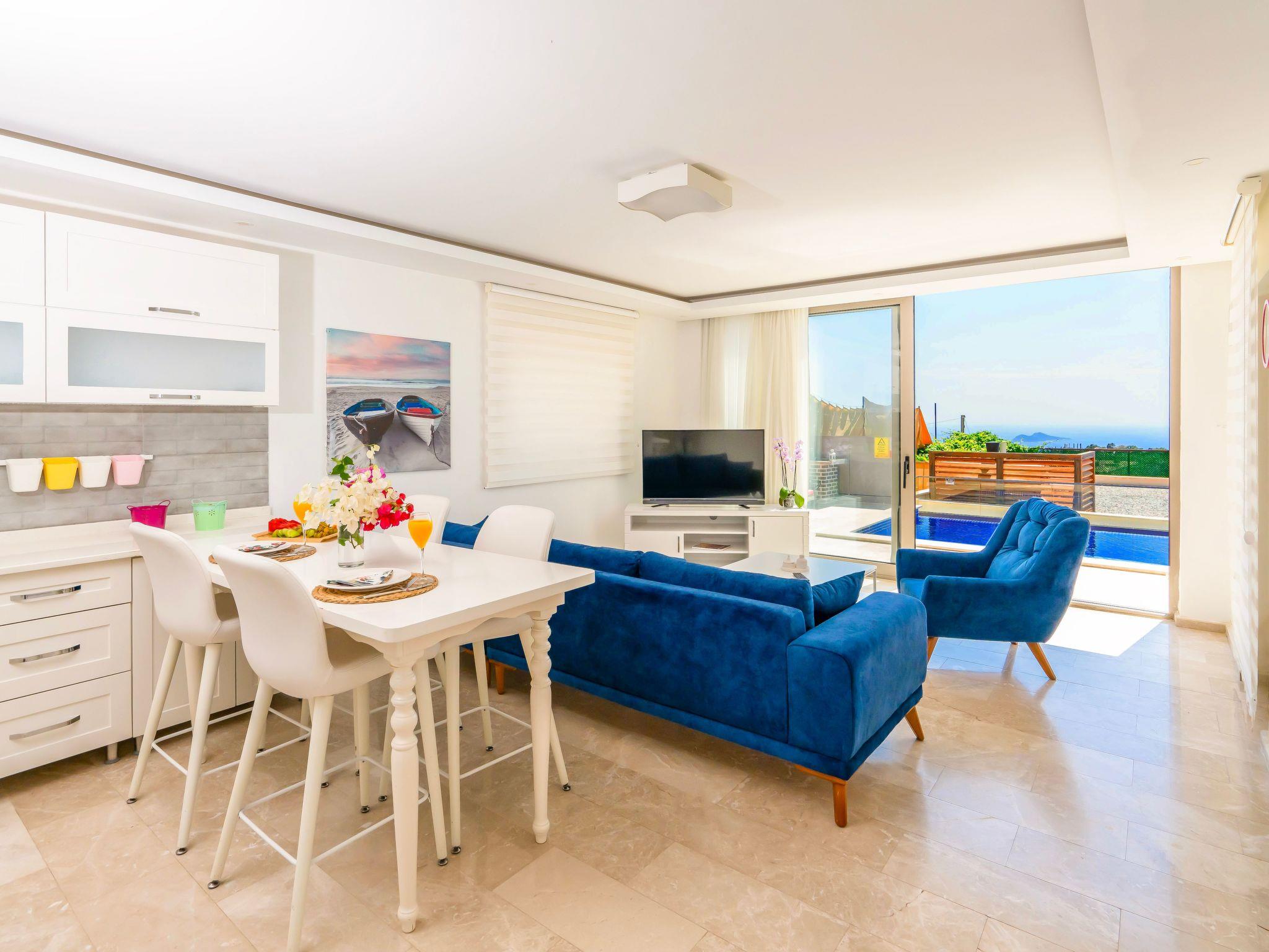 The villa, which is located in the Kördere area of Kalkan, is a wedding villa with a breathtaking view of the sea and the islands. It has 1 bedroom and can accommodate 2 people. With its stylish and simple architecture, the villa is one of the perfect addresses for your dream honeymoon.