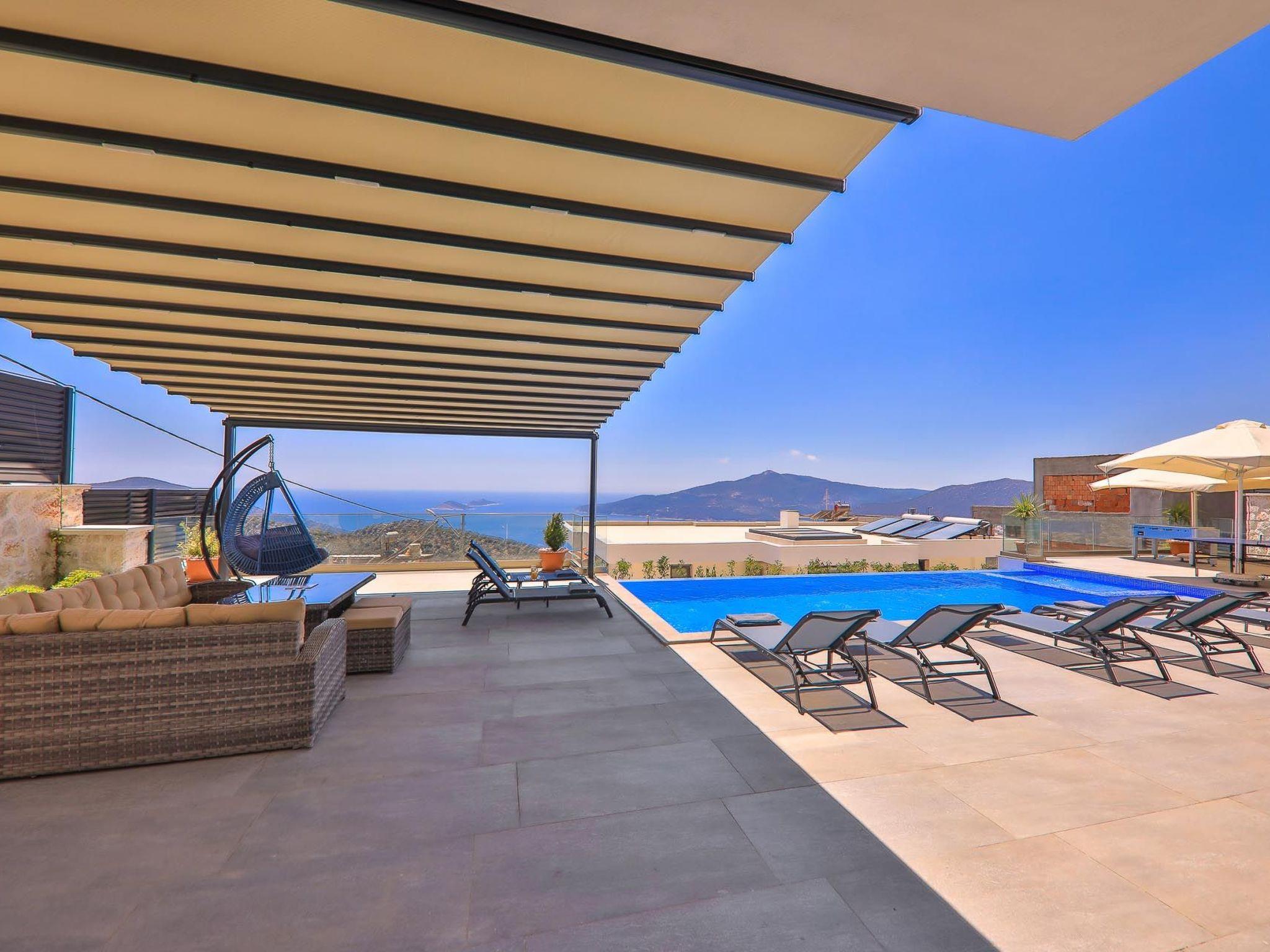Discover the perfect holiday home for your next holiday in Kalkan, Anatolia - Villa Fiona, a detached holiday home carefully designed to accommodate up to 6 guests in absolute comfort. This idyllic retreat not only offers breathtaking views of the deep blue sea, but also a peaceful environment that promises tranquillity and relaxation. With its unique location and high-quality facilities, Villa Fiona is the ideal place for travellers looking for an unforgettable getaway.
