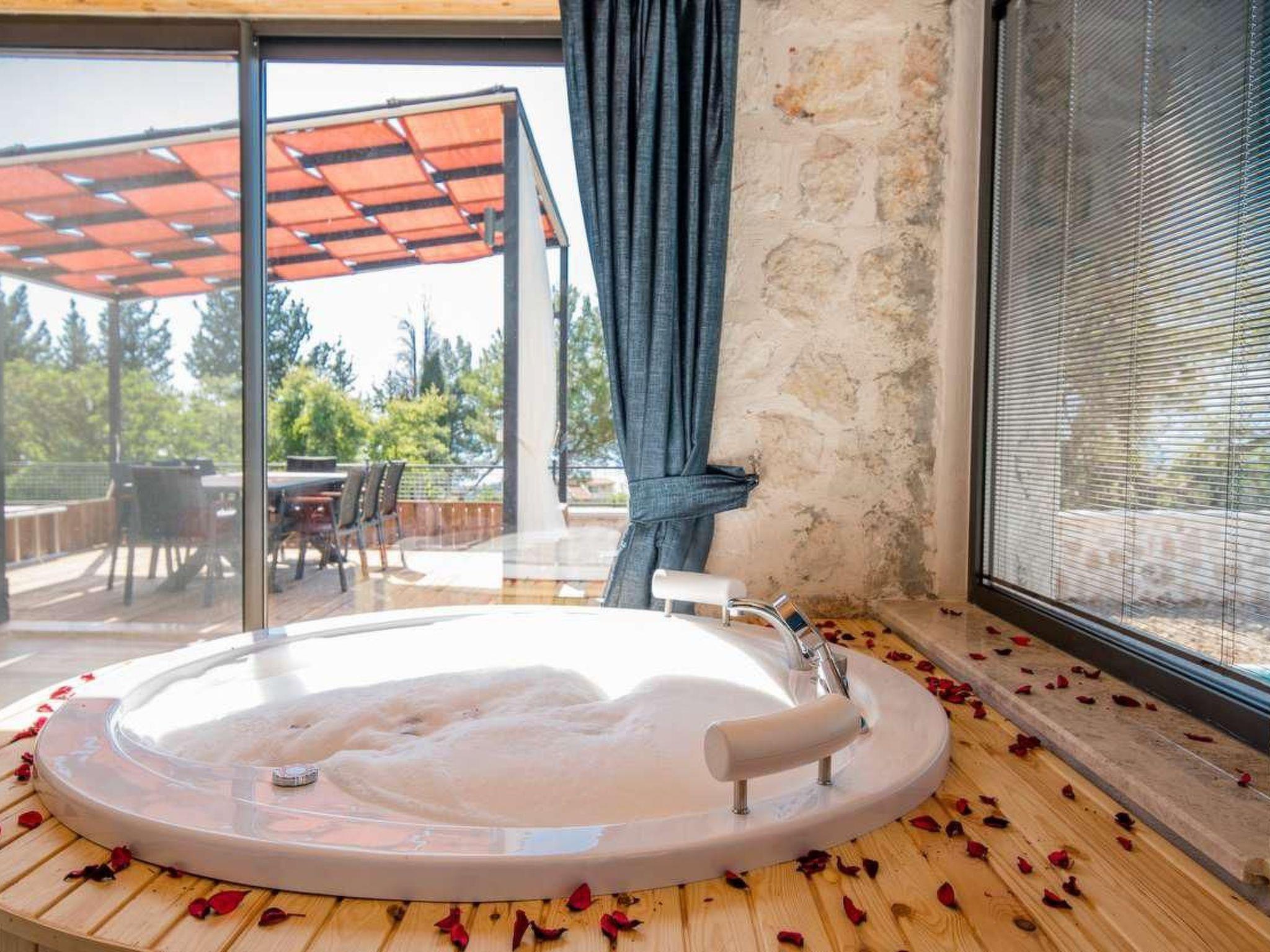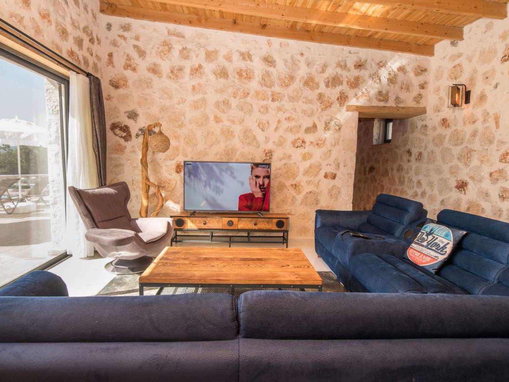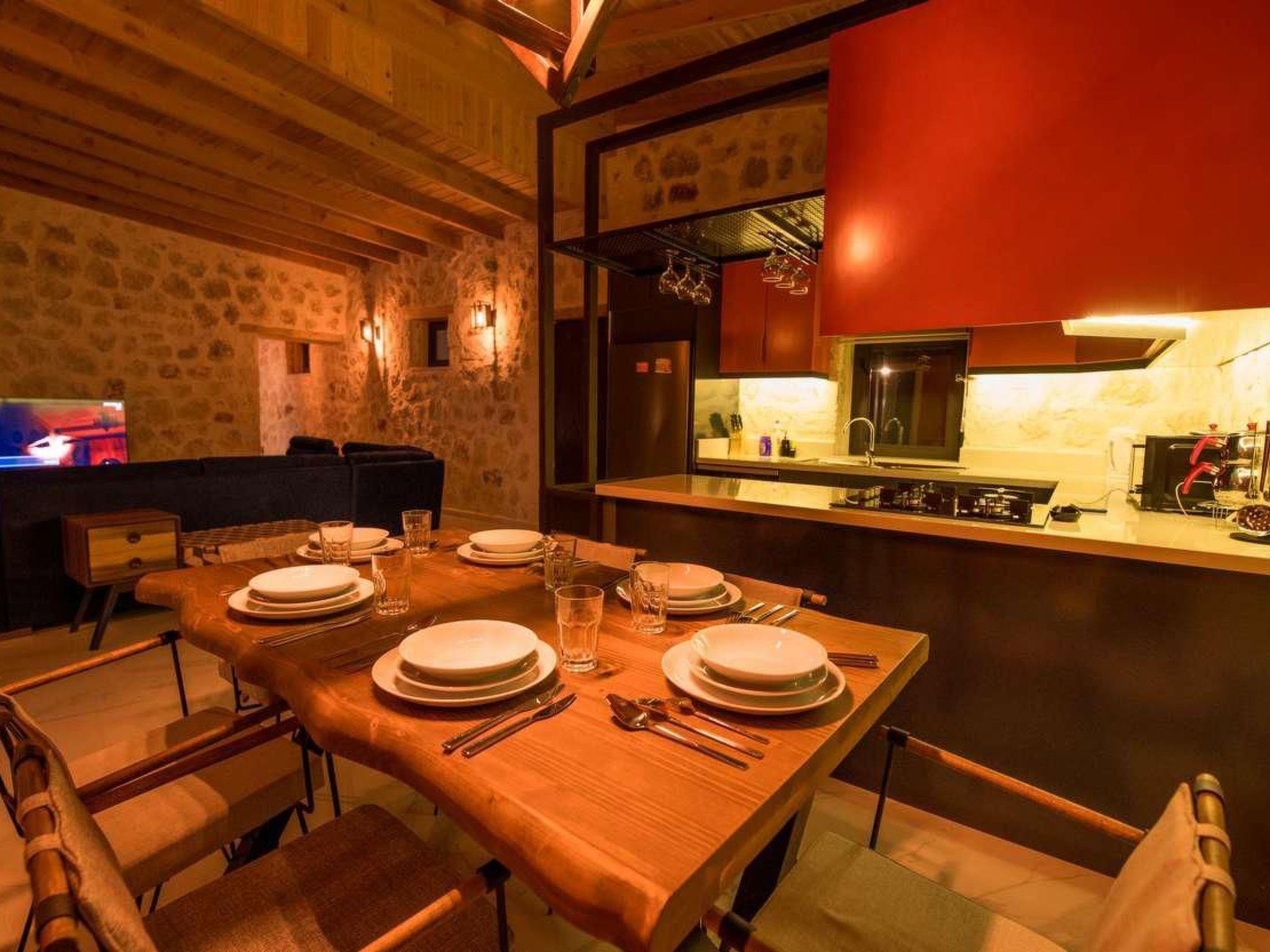 The villa is a masterpiece of traditional architecture, built with natural stones that blend perfectly with the surrounding landscape. The interior is elegant and stylish, with rustic elements such as wooden beams and handcrafted furniture creating a cosy and welcoming atmosphere.