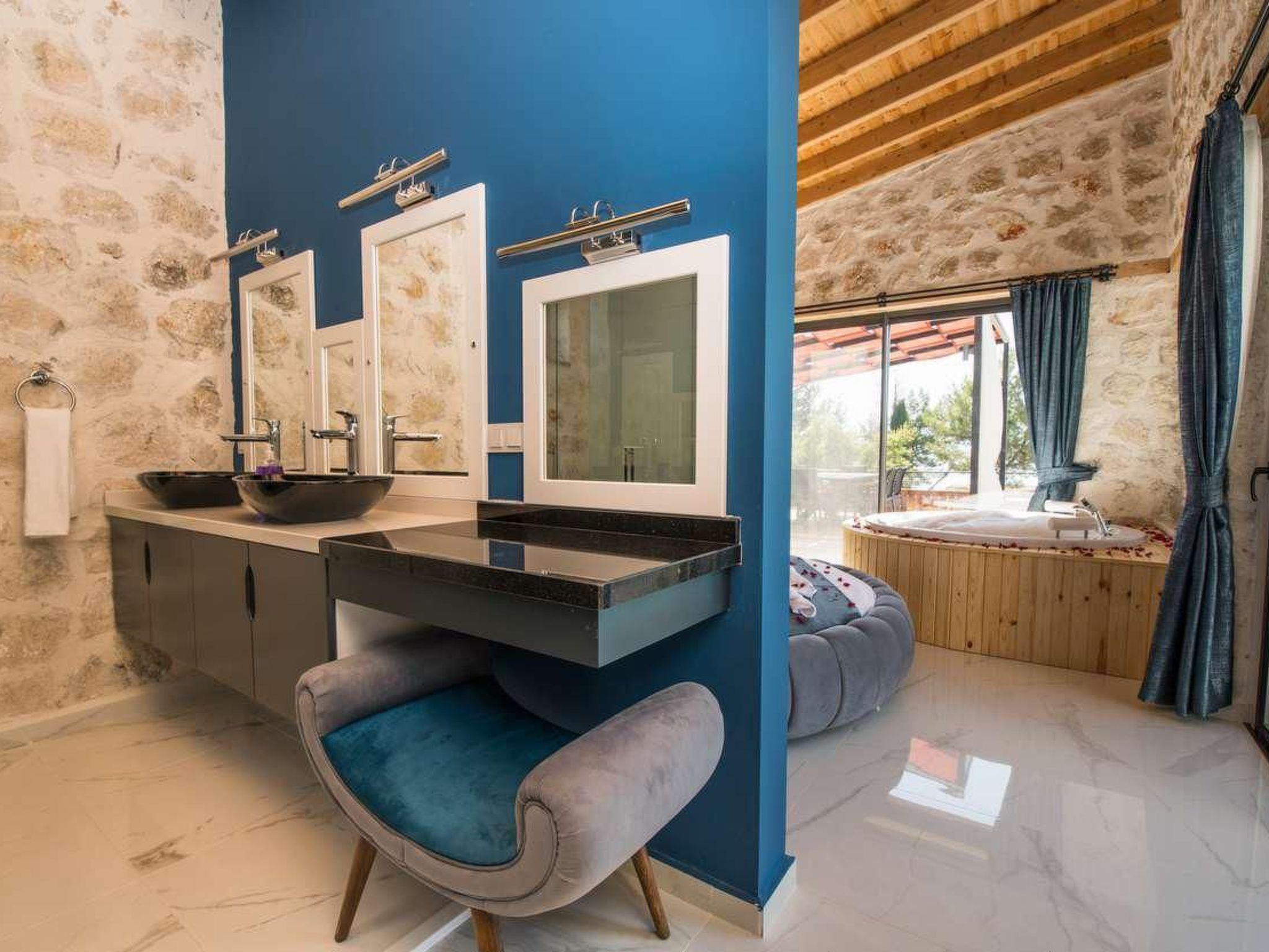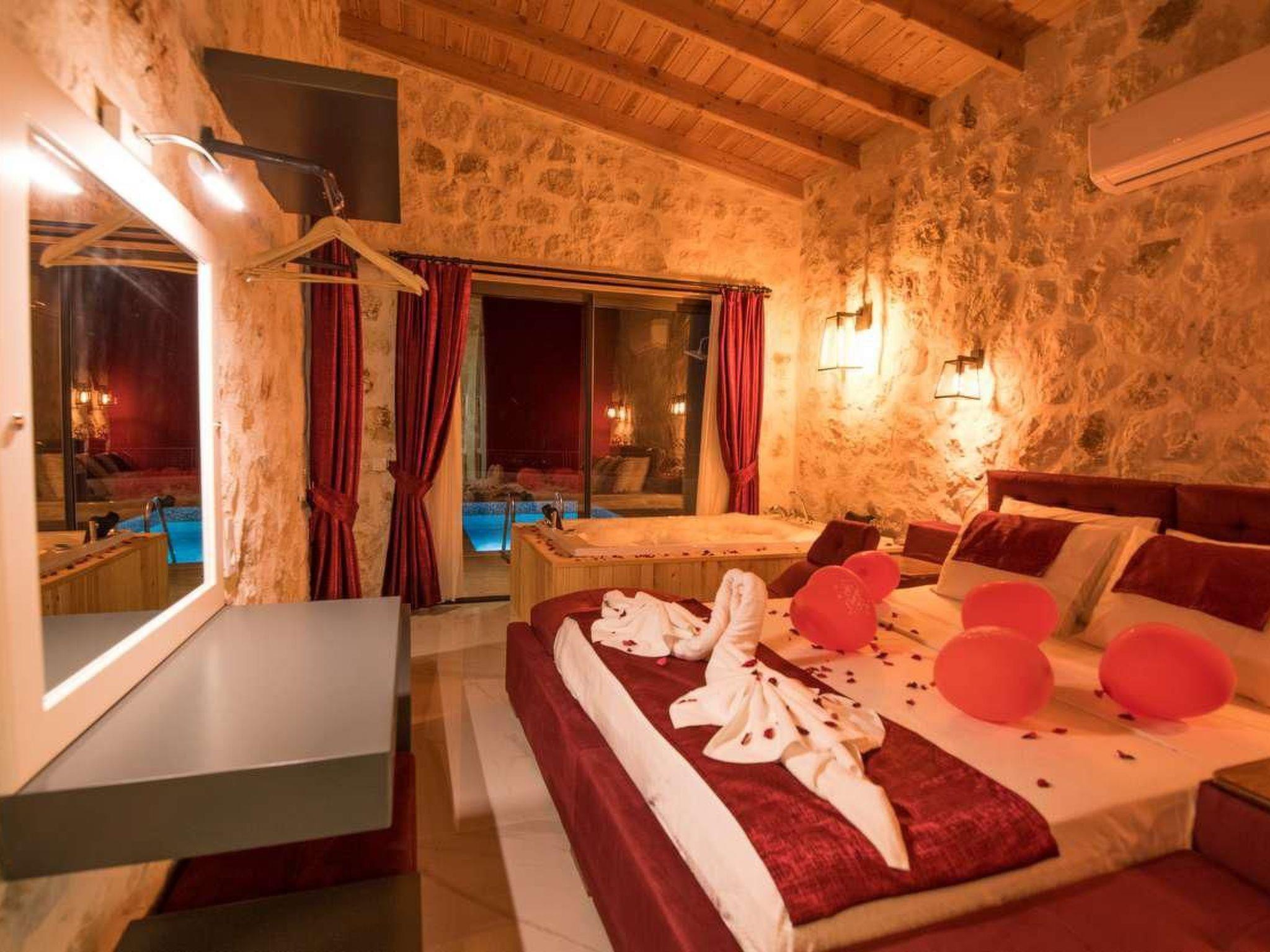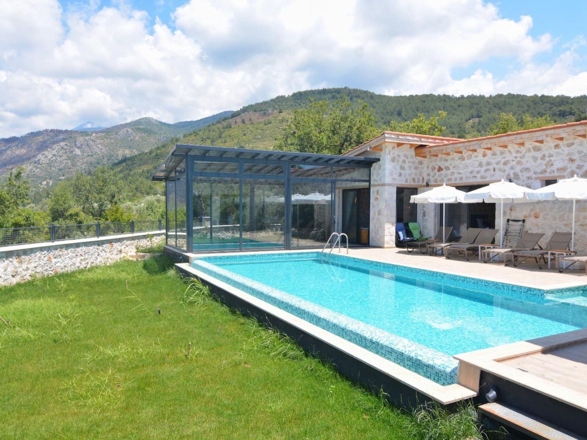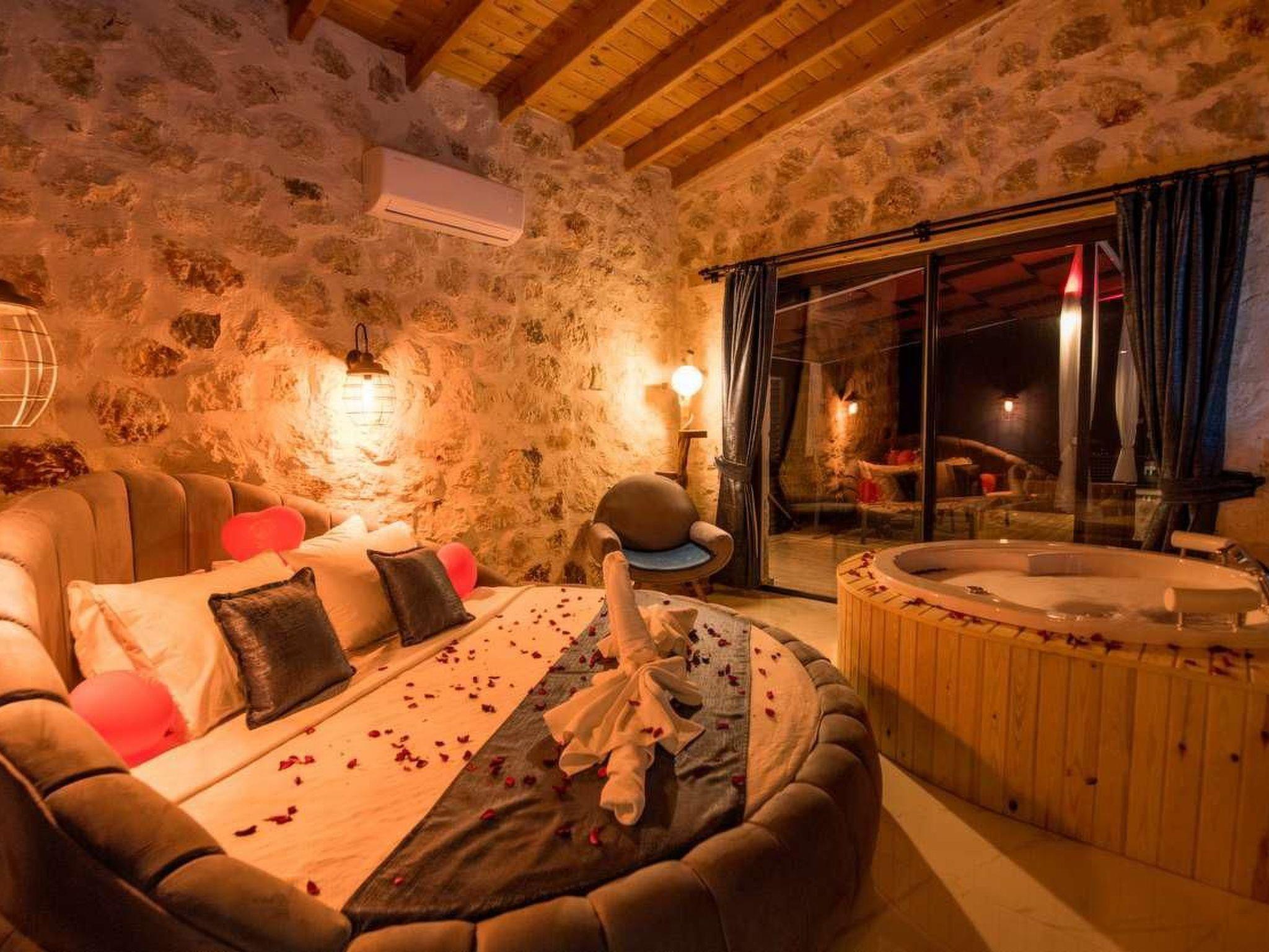 Discover the beauty and tranquillity of the Turkish countryside with a stay in this enchanting natural stone villa in Kalkan Üzümlü. Just 9 km from the centre, this unique accommodation sleeps up to 6 people and boasts an indoor pool and stunning views of the surrounding mountains.