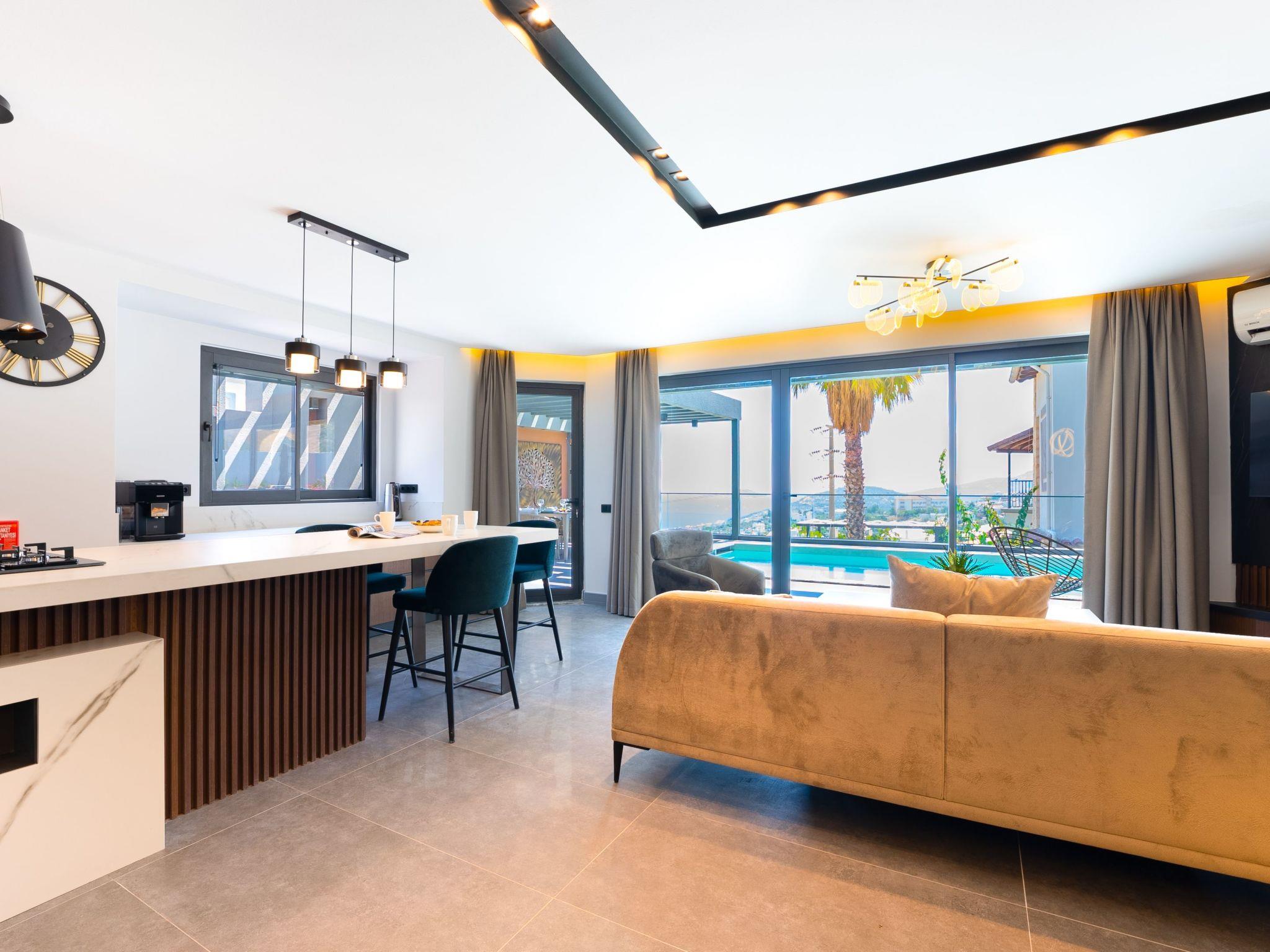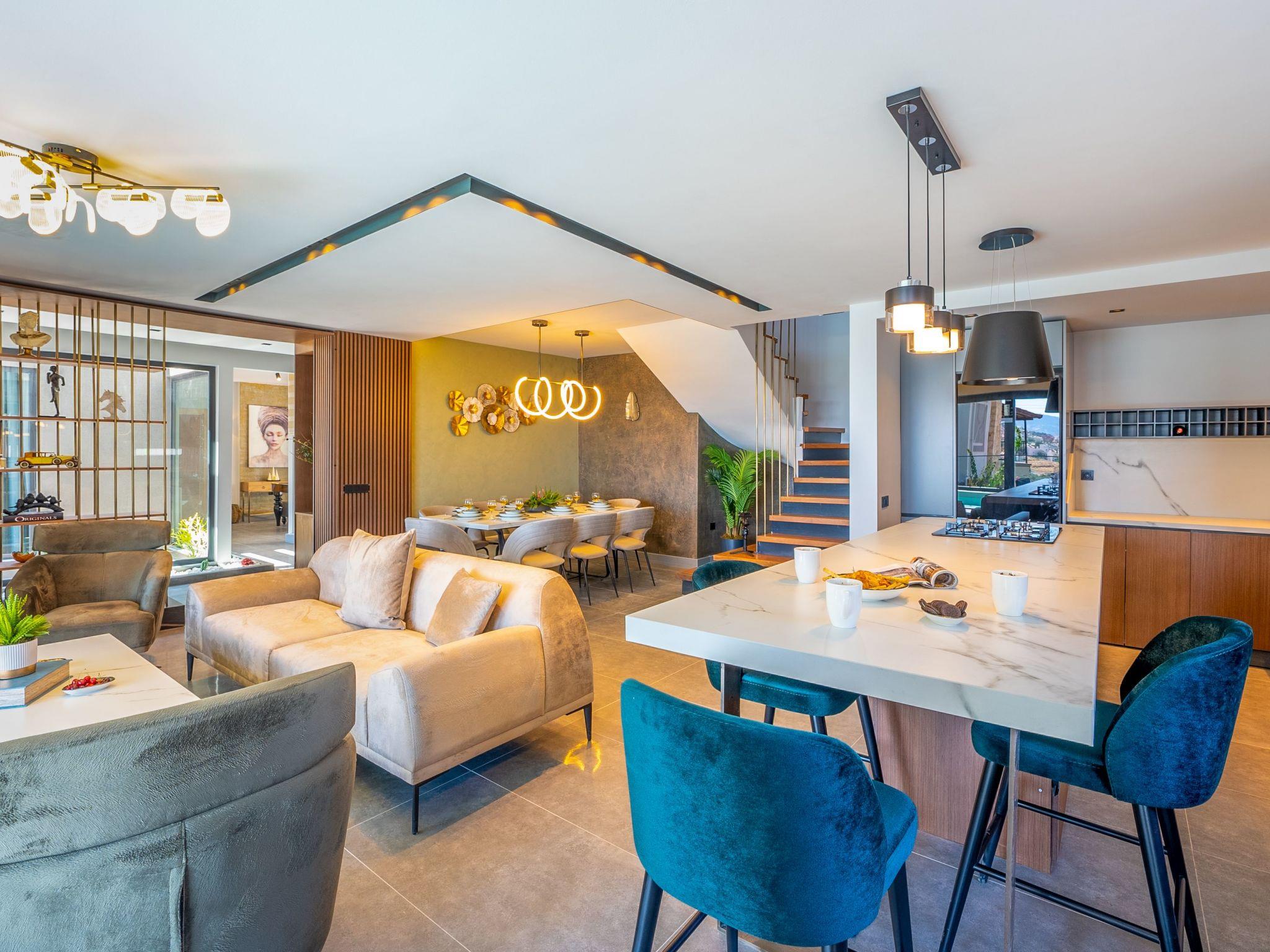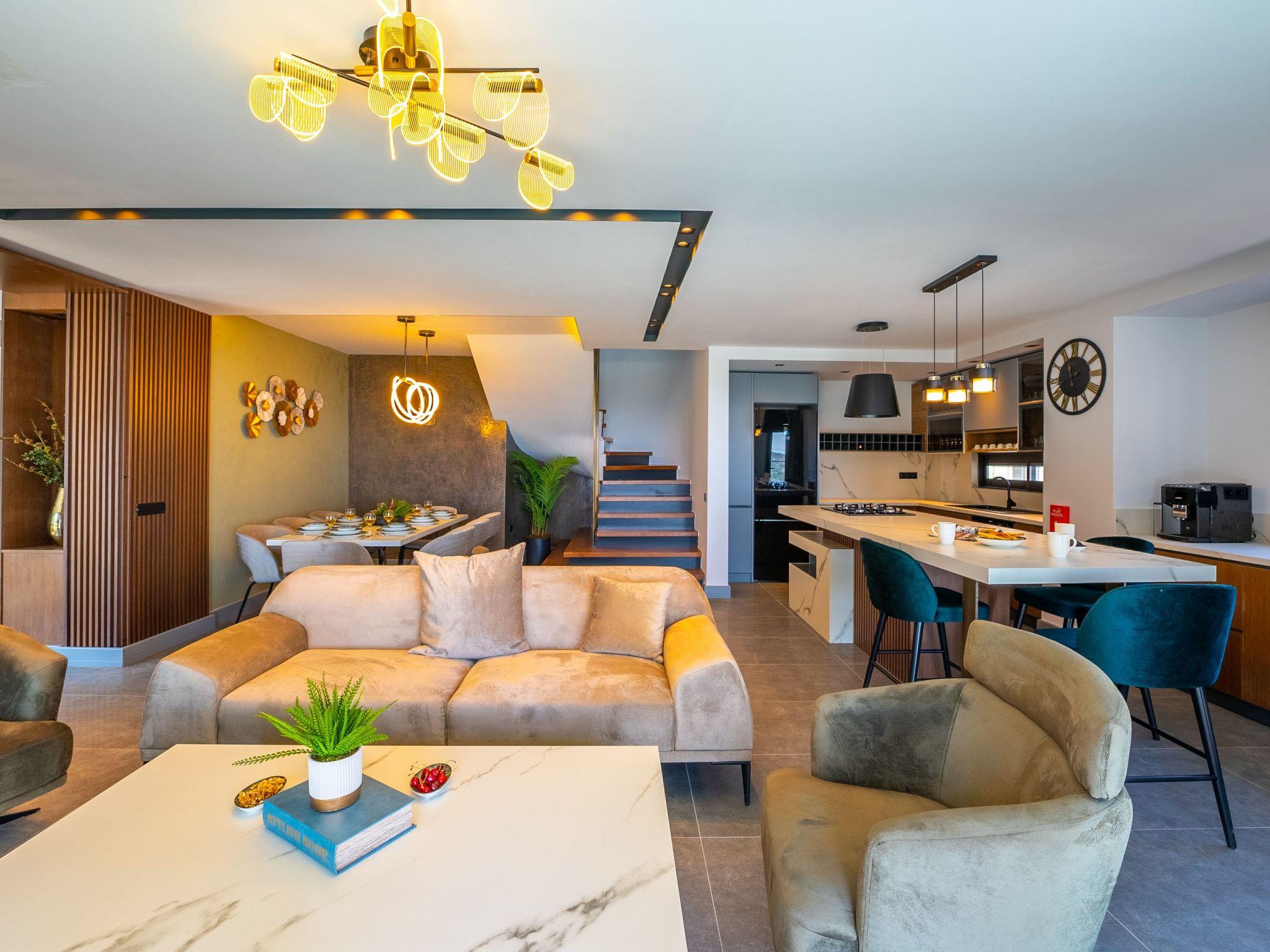 The location of the villa in Kalkan is equally impressive. Only 1000 metres separate you from the beach, sea and a variety of water sports, promising easy access to days full of sun and water. The town centre with its charming shops and restaurants is a short 700m walk away, while the nearest grocery store is just 500m away. Its location provides the perfect starting point to discover the rich culture and breathtaking nature of Anatolia.